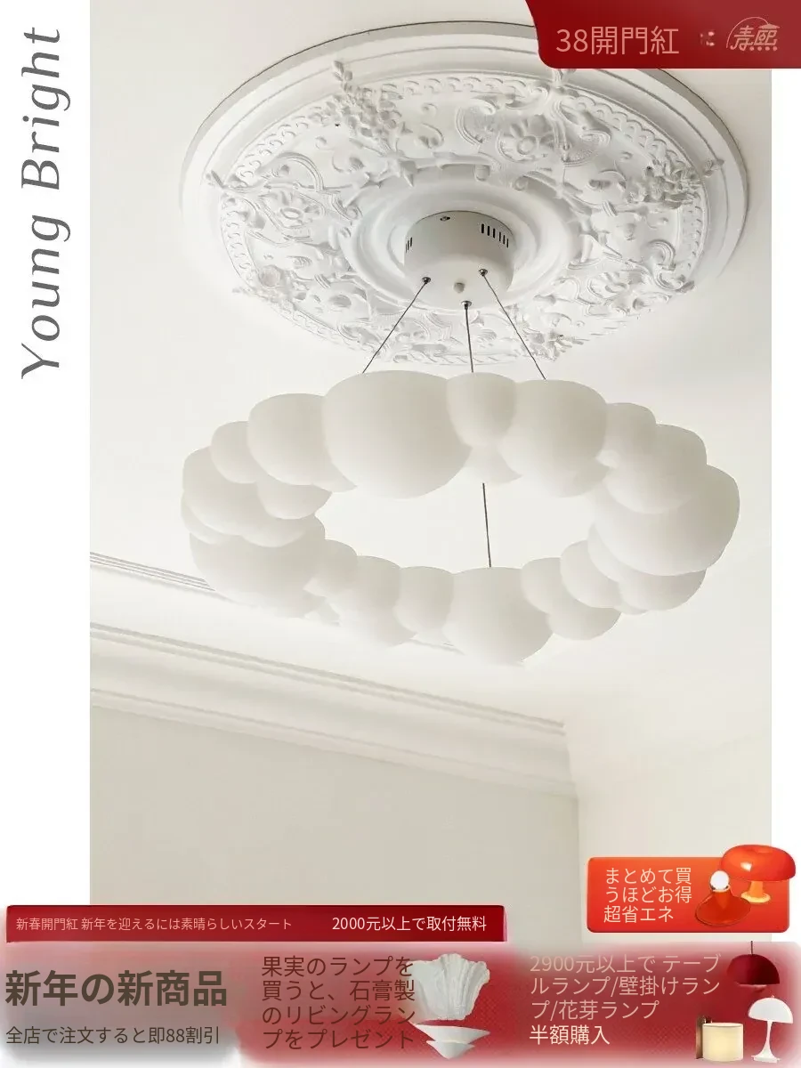 北欧デザインのクリエイティブな雲型ランプ - 子供部屋・主寝室・ダイニングに最適なシンプルでモダンなクリーム色の吊り下げ照明
