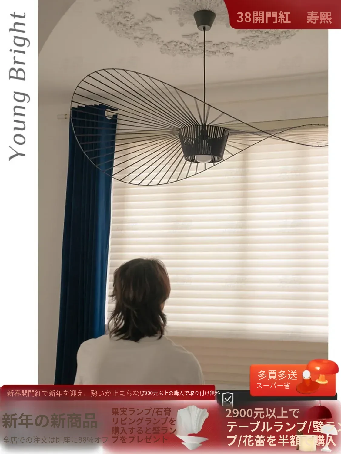 北欧風ライトなフレンチスタイルの草帽吊り灯!現代的でミニマルなデザイン、デザイナーによるアート照明で、リビング、ダイニング、寝室を華やかに演出。クリーム色の優しい光が心地よい空間を作ります。