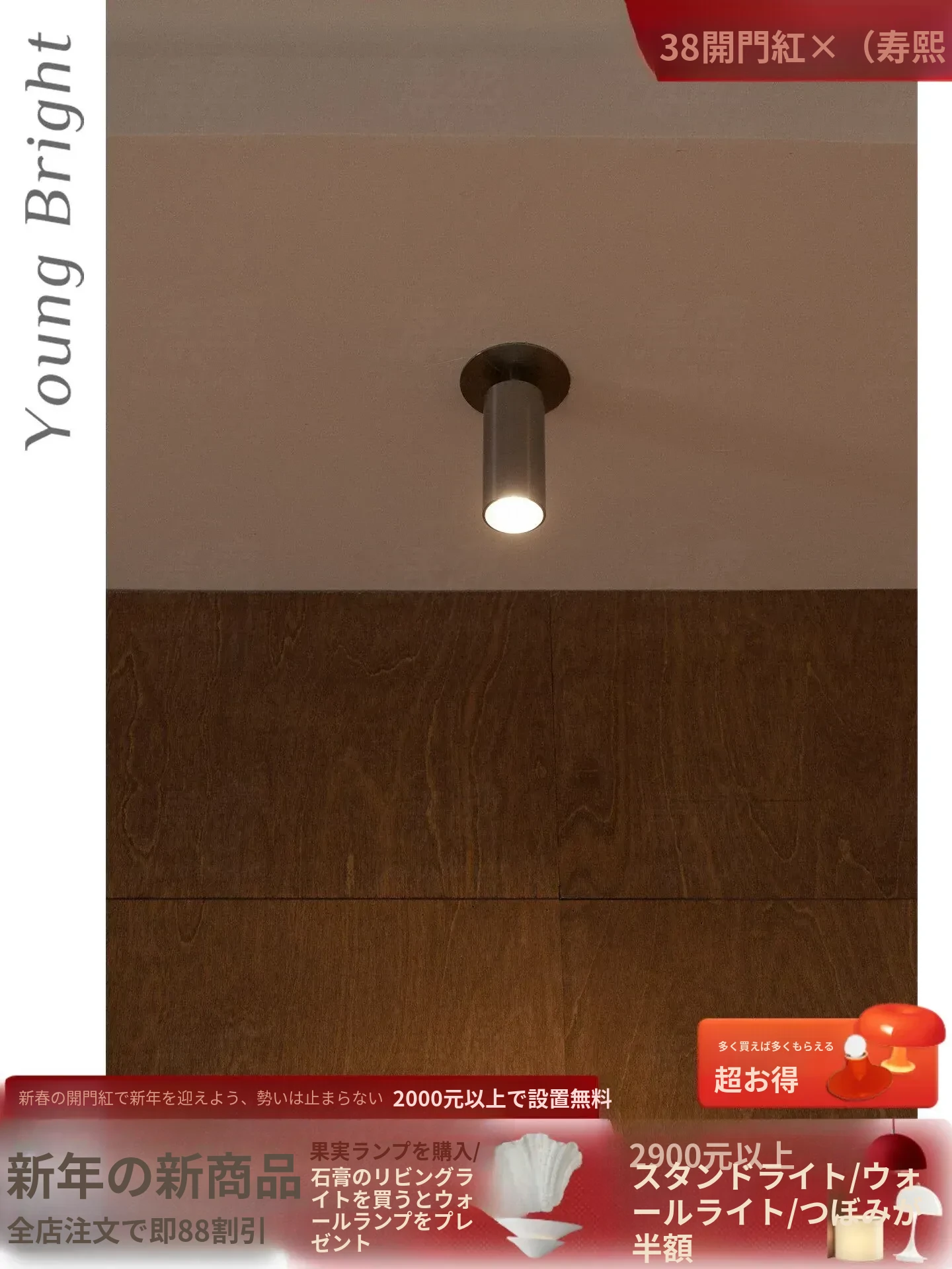 北欧風デザインの木目調ダラ天井ライト - モダンな寝室、書斎、玄関、廊下にぴったりのシンプルで洗練された照明。おしゃれで機能的な空間を演出します!