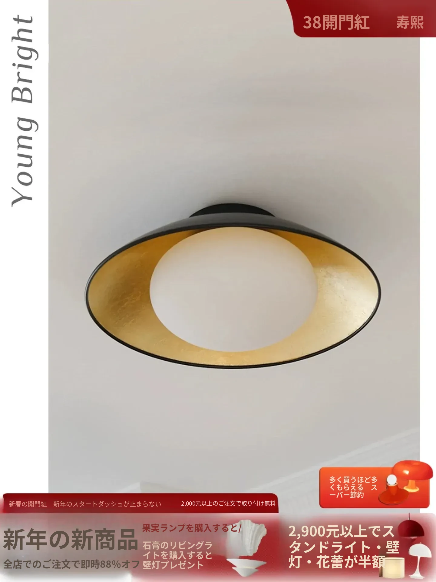 イタリアのSmith LederamCデザイナーによるシンプルな天井照明、後現代的な金箔仕上げのリビングルーム用装飾灯。洗練されたデザインで、あなたの寝室を魅力的に演出します。