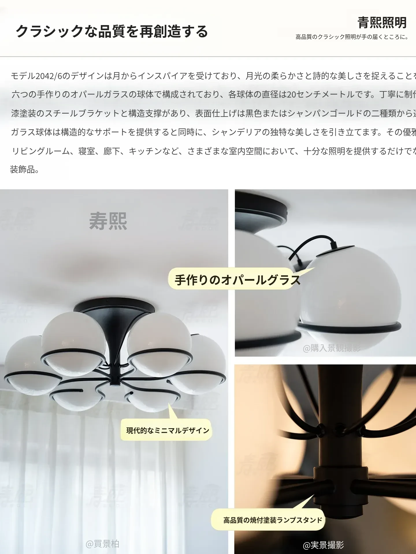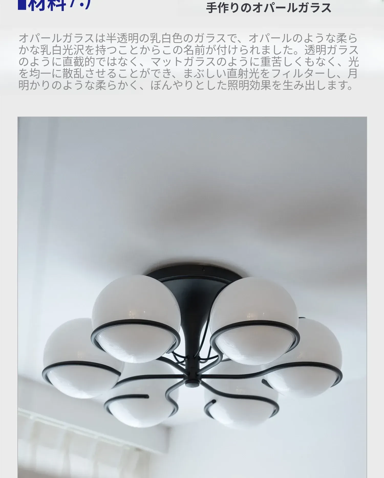 マットブラック 6灯 【高透過白ガラス】