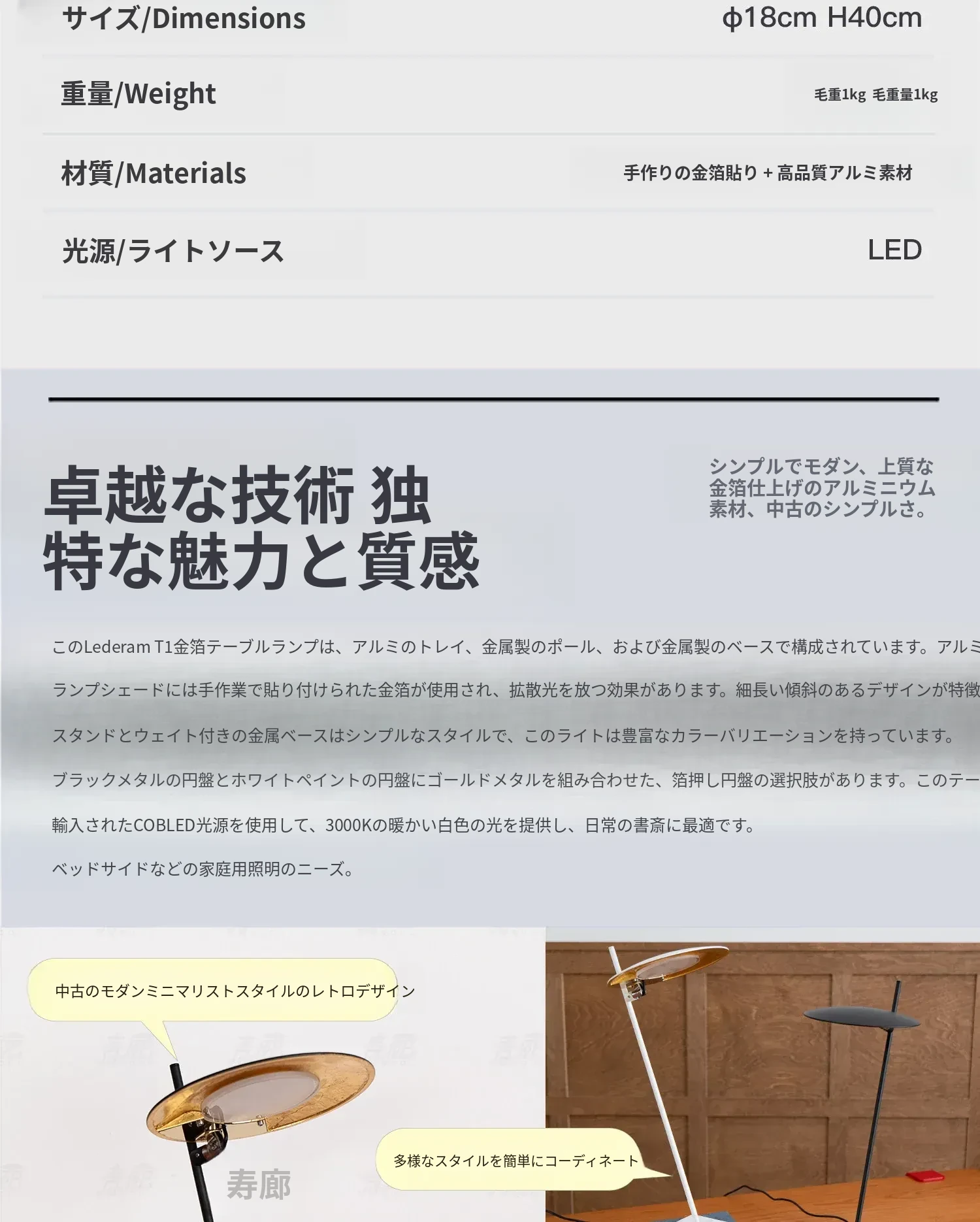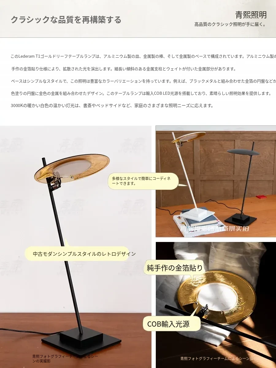 イタリア・カテラーニ&スミス Lederam T1 テーブルランプ 中古 金箔仕上げ 寝室・書斎・ベッドサイドに最適なスタイリッシュな照明!