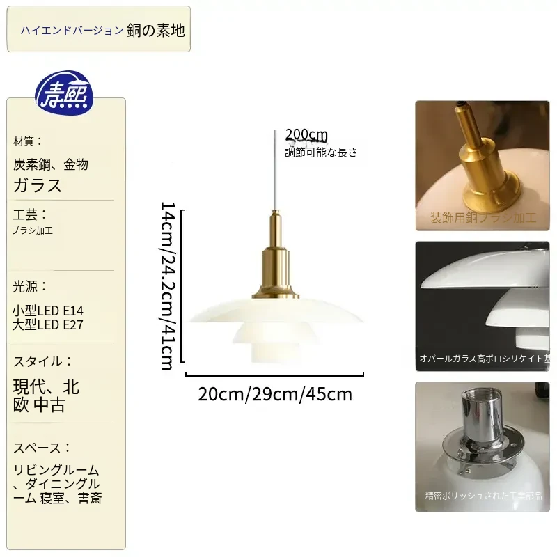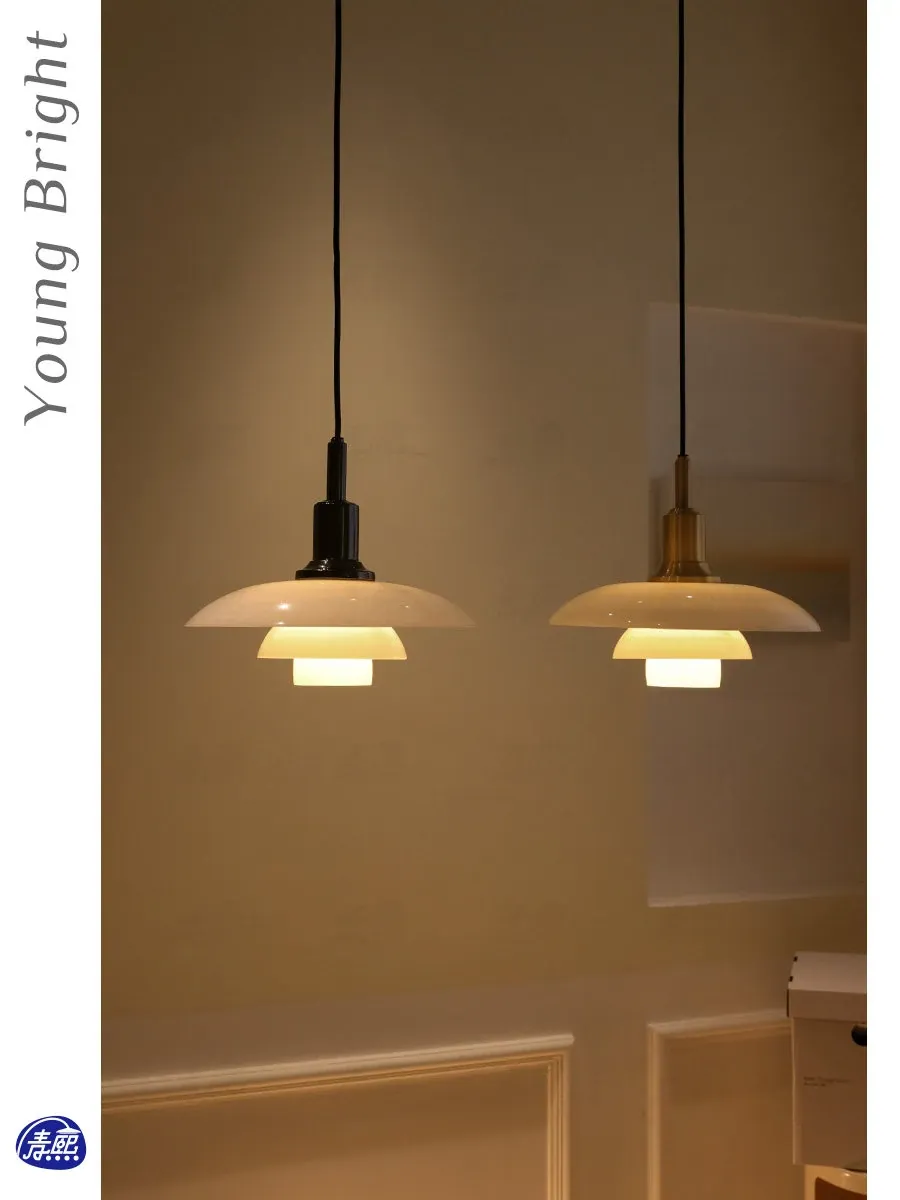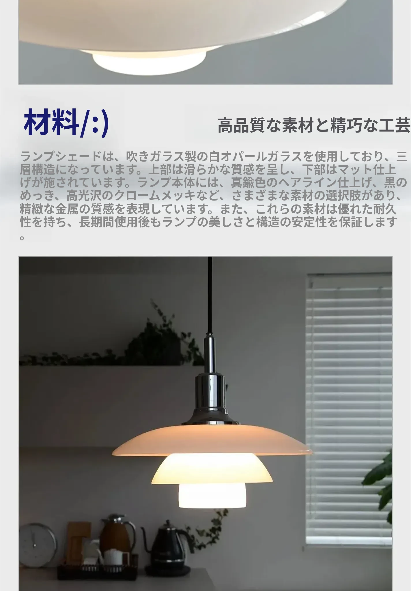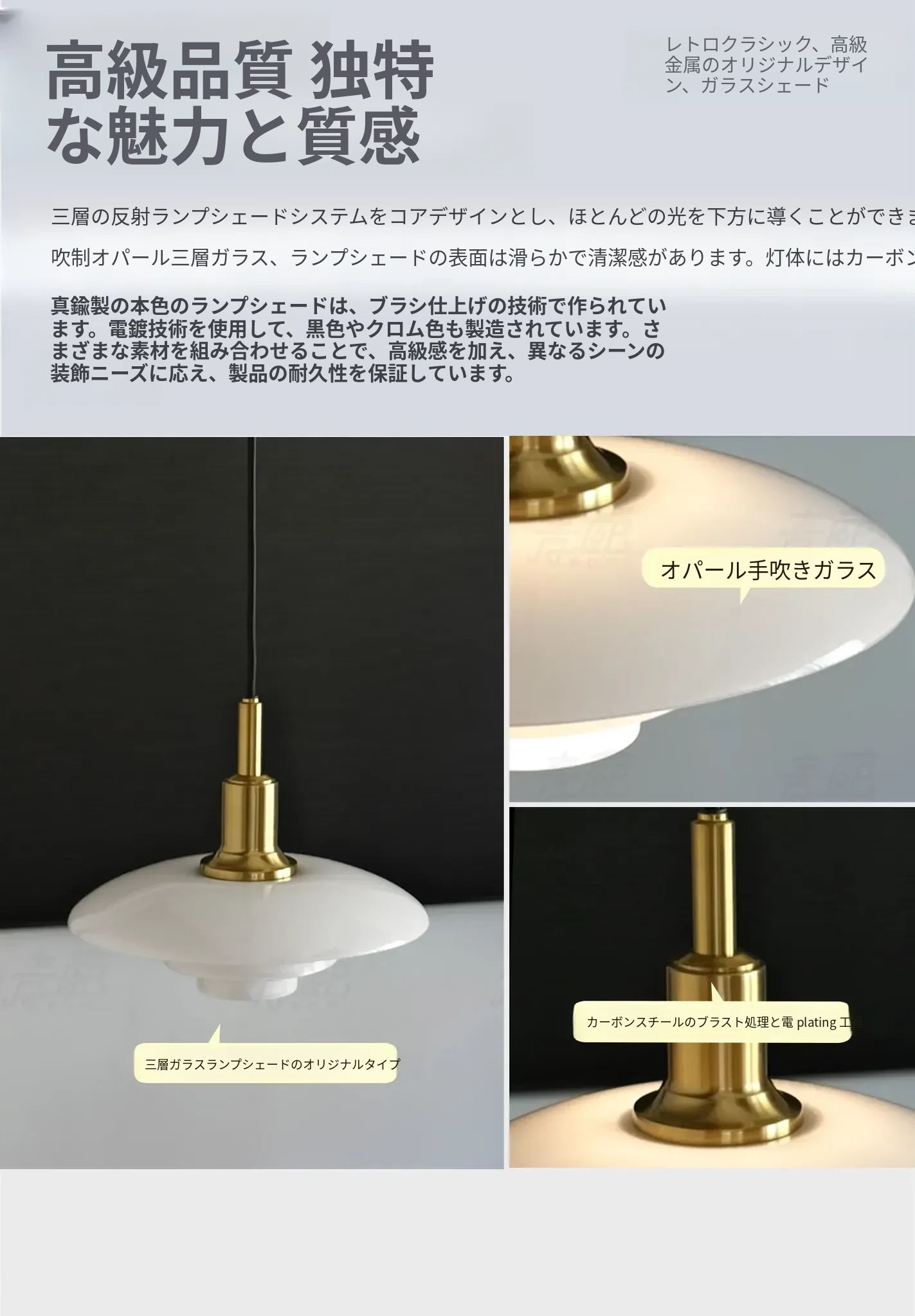デンマーク北欧PH3デザイナーダイニングUFOペンダントライト - ガラス製、書斎や寝室に最適!フレンチスタイルのバーカウンターやベッドサイドにもぴったりな純銅製ランプ。おしゃれな空間を演出します!