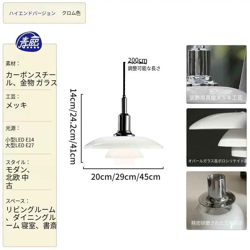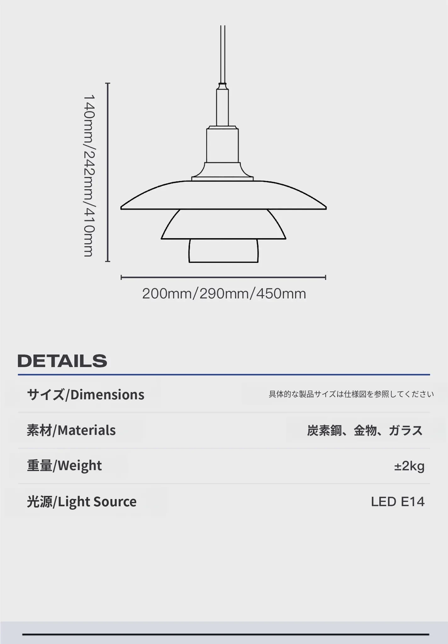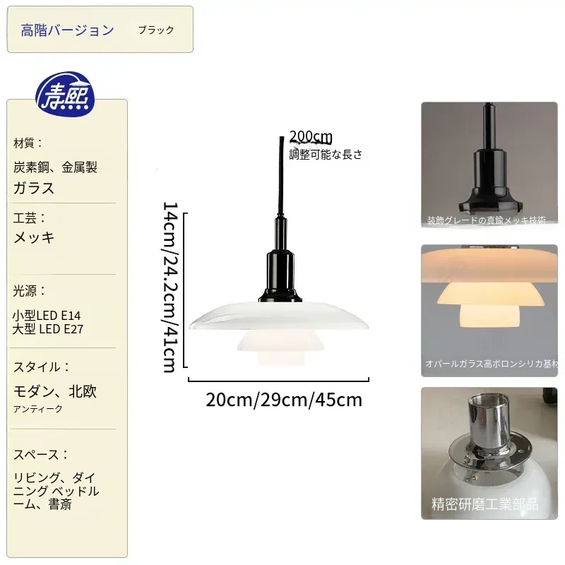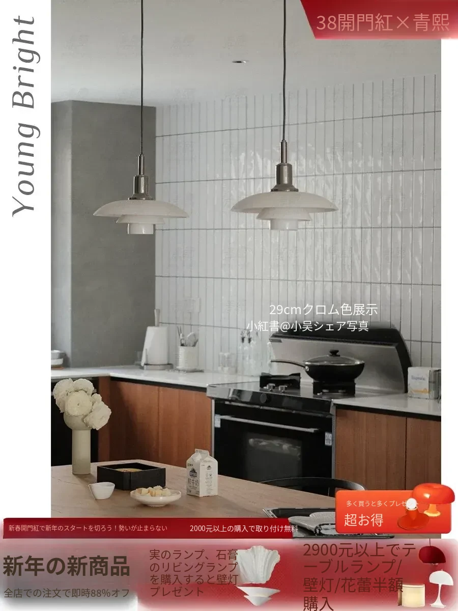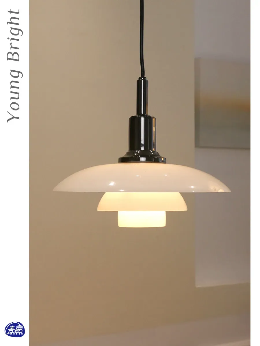 デンマーク北欧PH3デザイナーダイニングUFOペンダントライト - ガラス製、書斎や寝室に最適!フレンチスタイルのバーカウンターやベッドサイドにもぴったりな純銅製ランプ。おしゃれな空間を演出します!