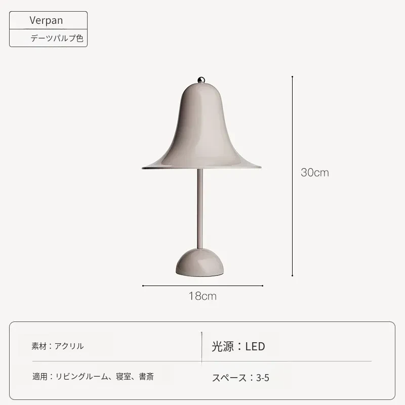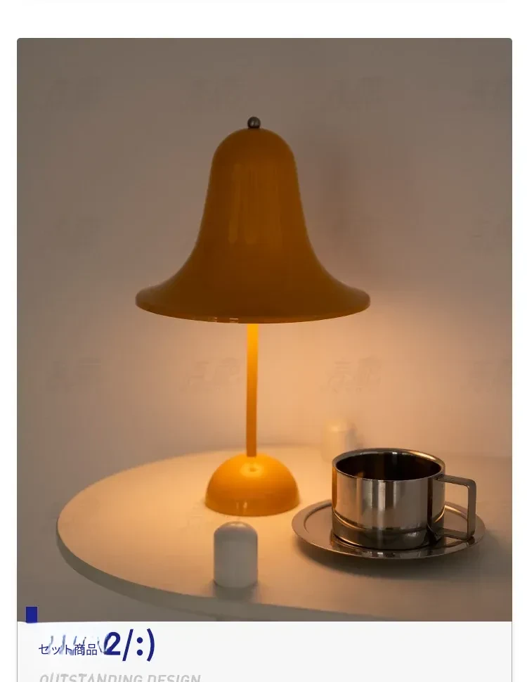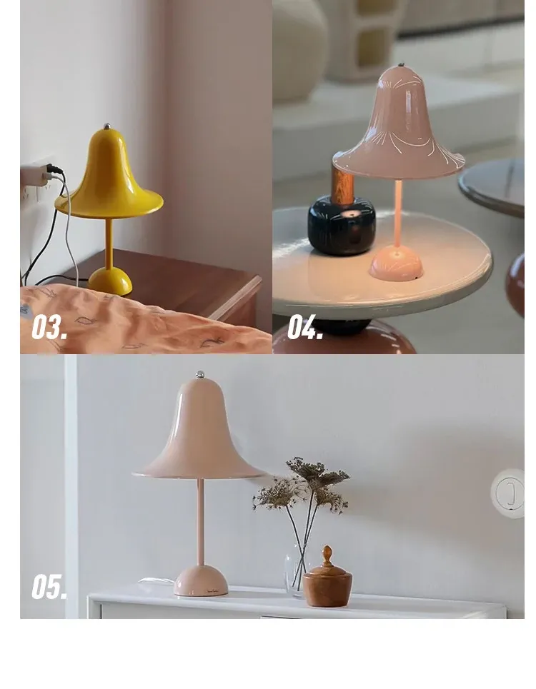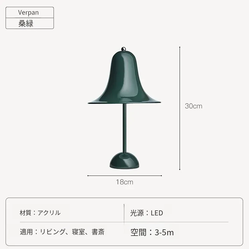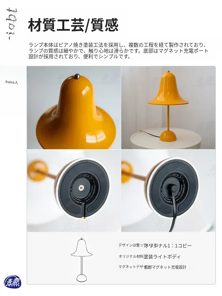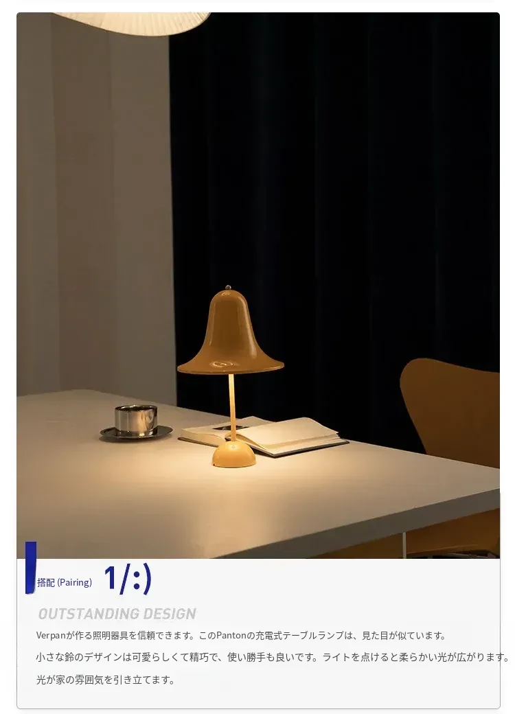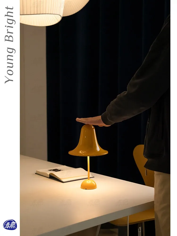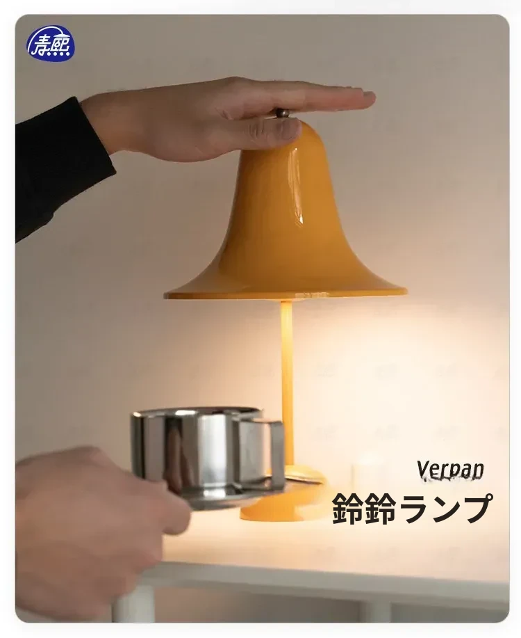 デンマーク・パンソンカラーのベル型テーブルランプ|北欧スタイルの心地よい雰囲気を演出|ワイヤレス・ポータブル・タッチ充電式|寝室やベッドサイドに最適!