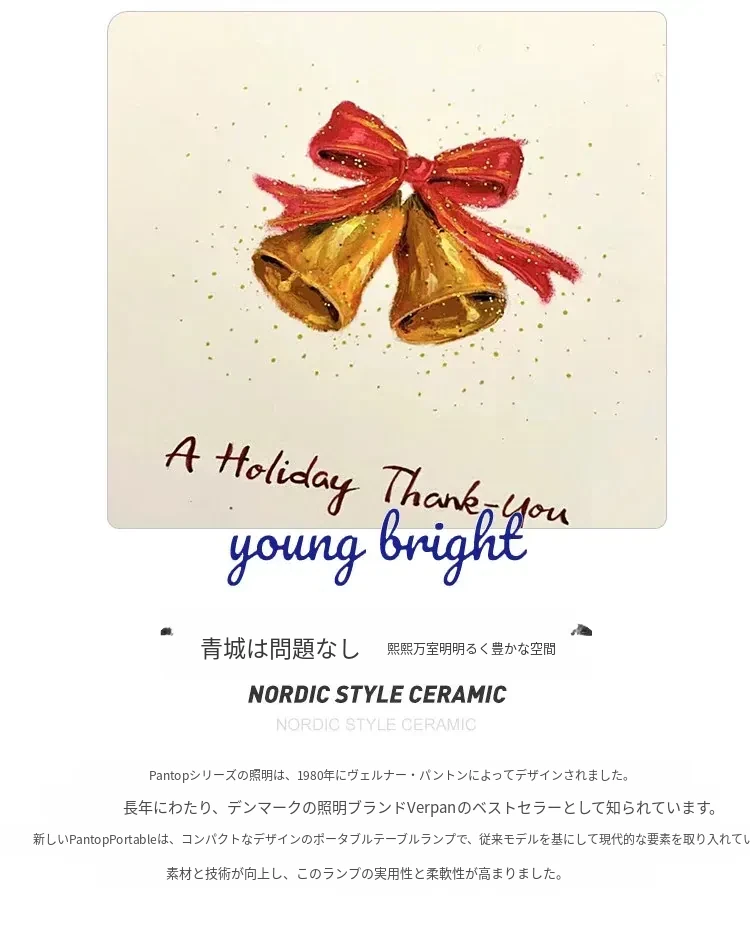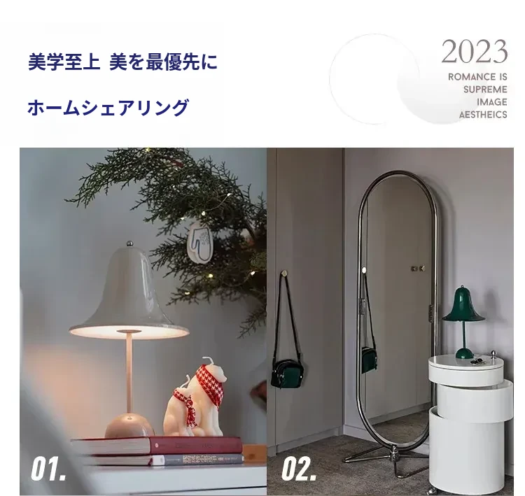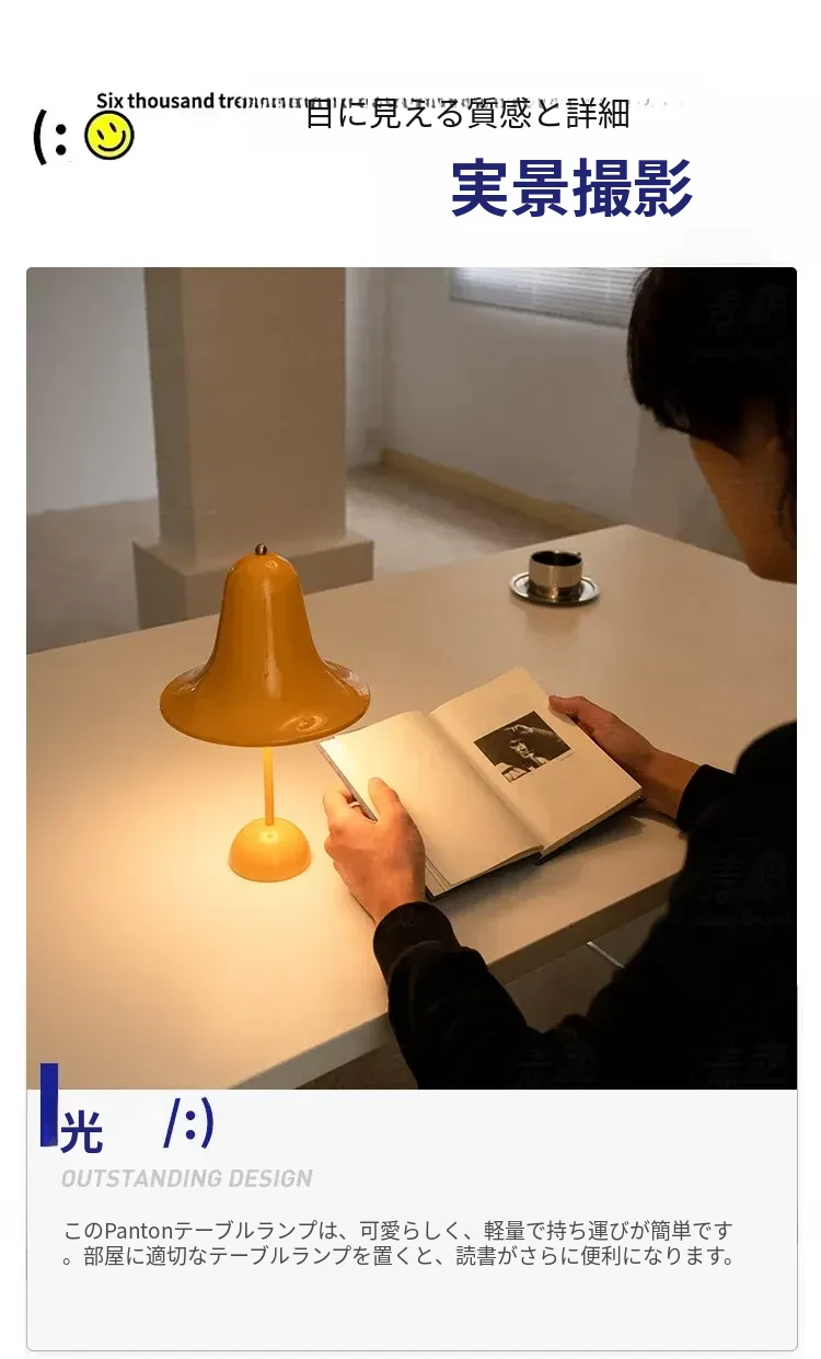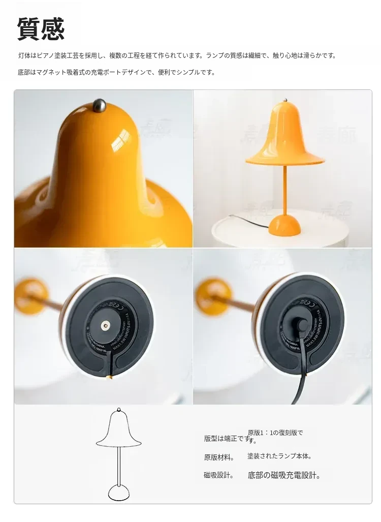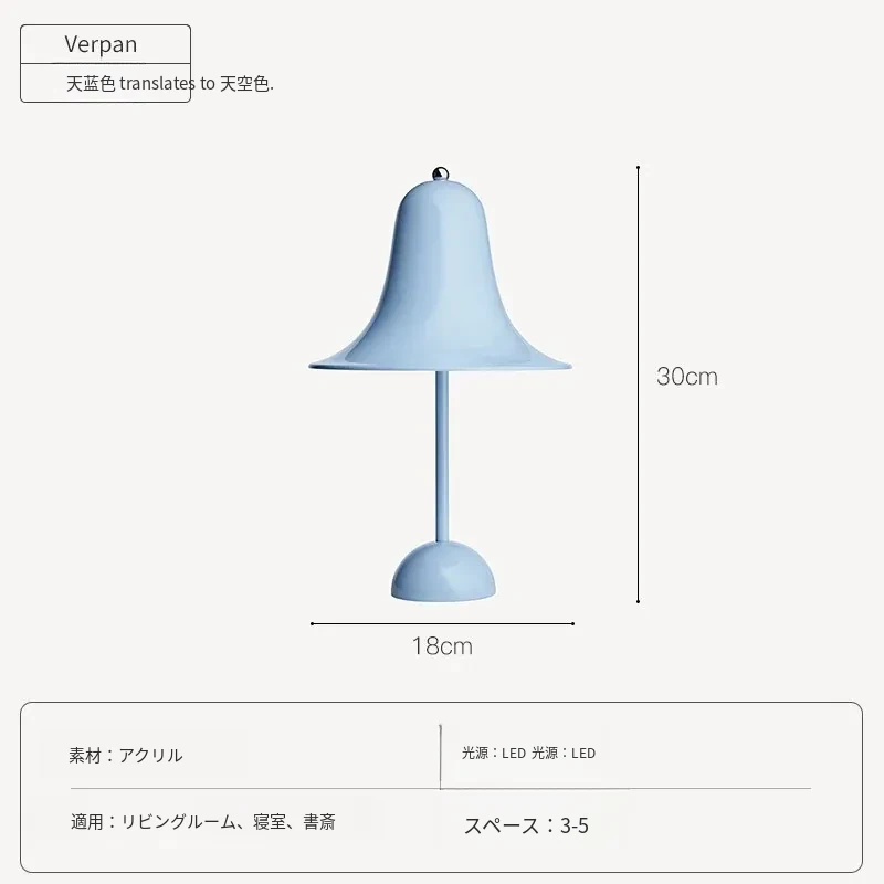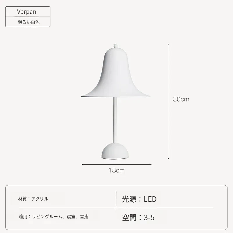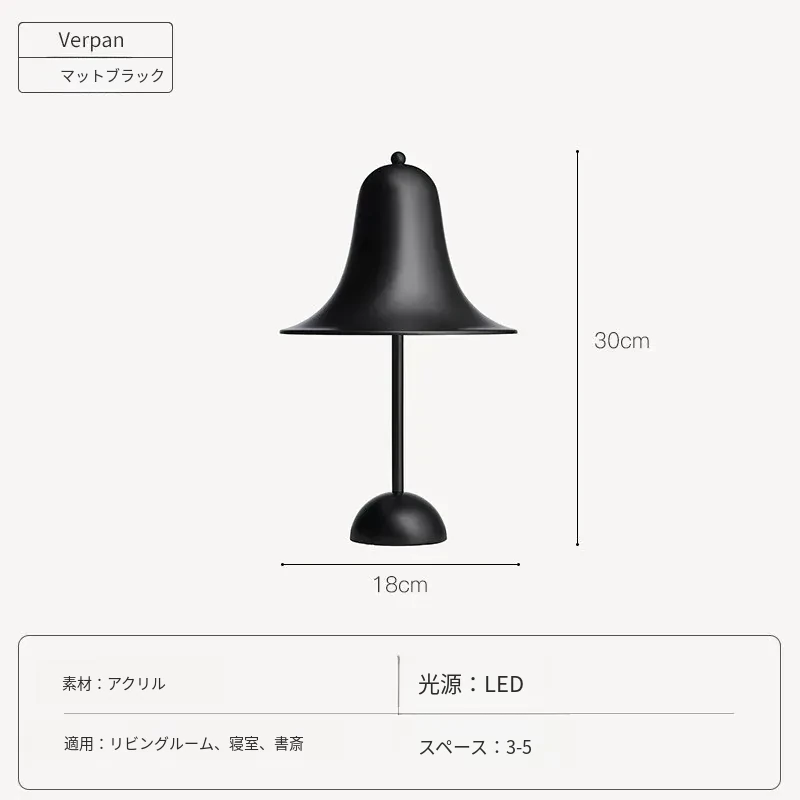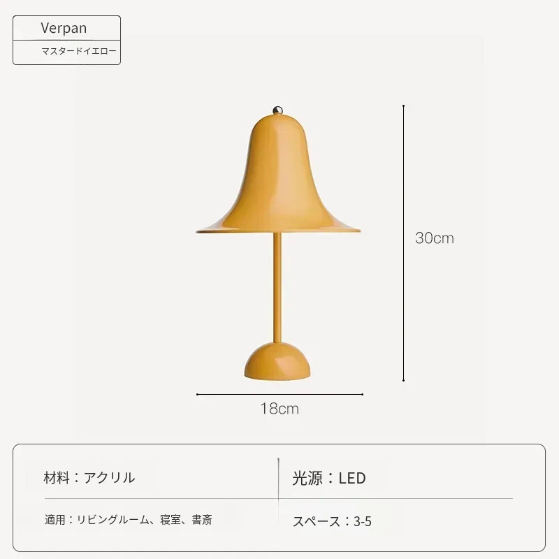 デンマーク・パンソンカラーのベル型テーブルランプ|北欧スタイルの心地よい雰囲気を演出|ワイヤレス・ポータブル・タッチ充電式|寝室やベッドサイドに最適!