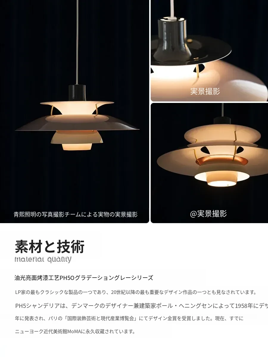 デンマークPH5光沢仕上げデザイナー北欧ミニマルレストラン UFO型ペンダントライト モダンダイニングルーム 書斎 バー用照明 - シンプルでエレガントな空間を演出!