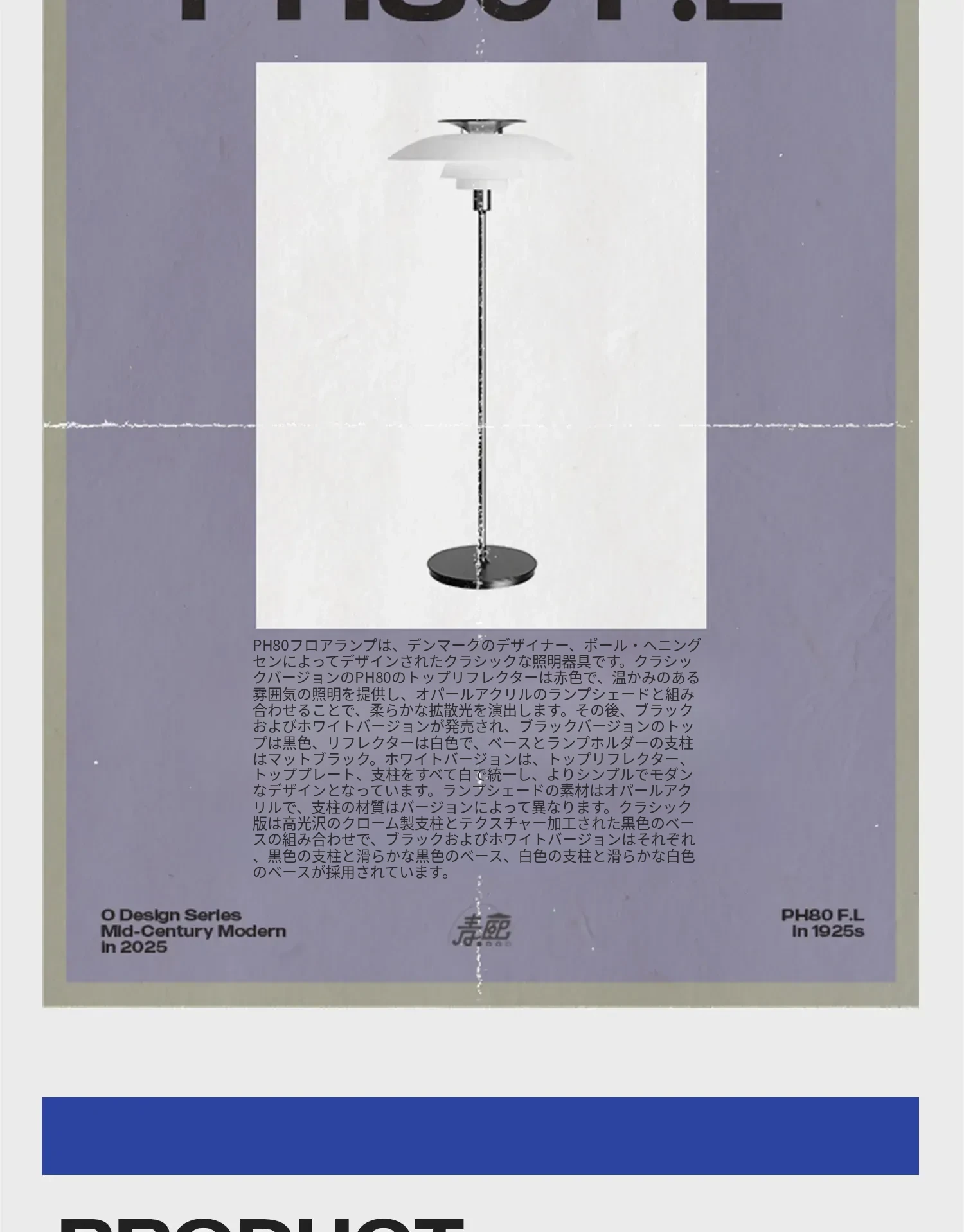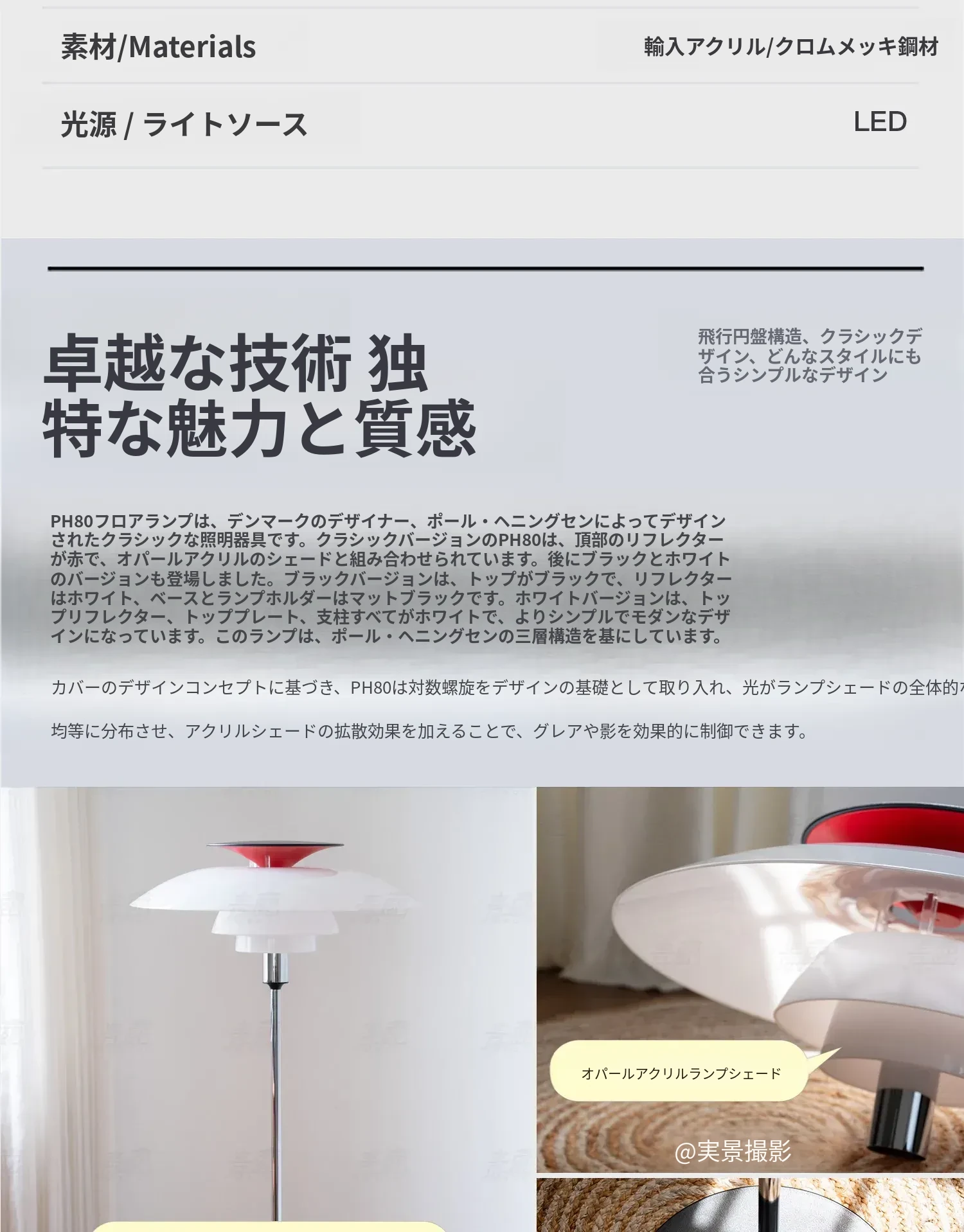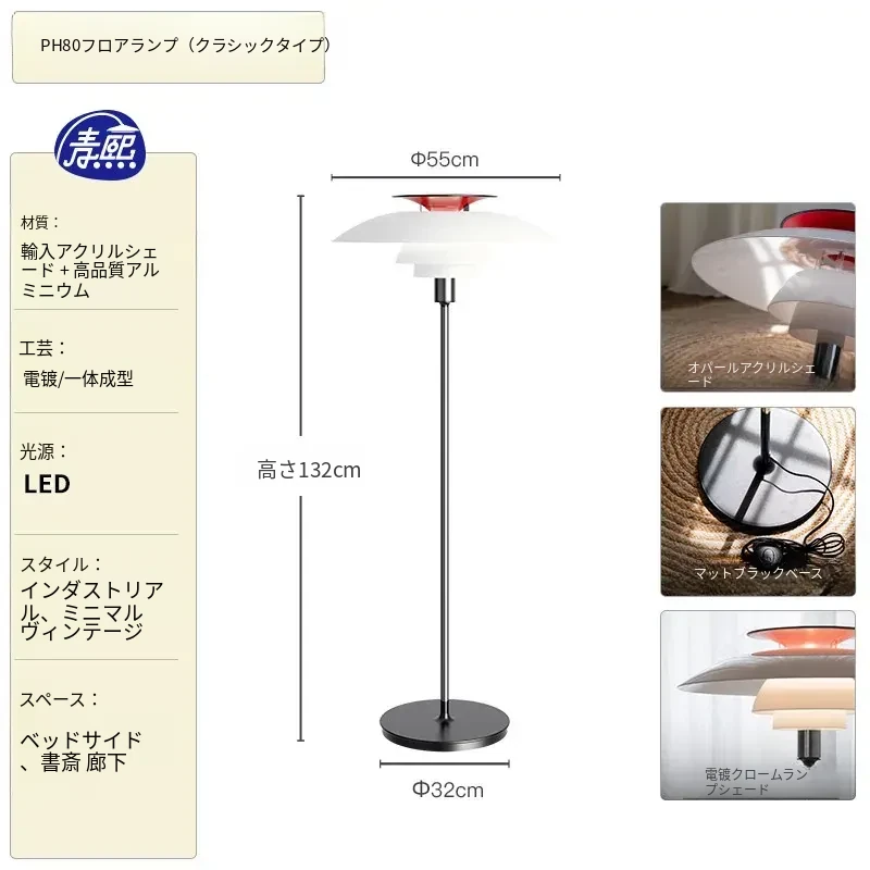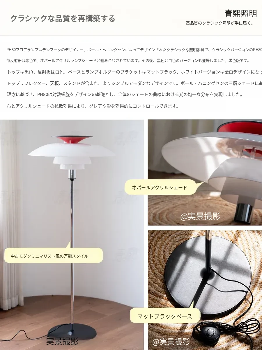 デンマークPH80フロアランプ|北欧ミッドセンチュリーデザイン|個性的なクリエイティブスタイル|リビング、寝室、書斎にぴったりのソファサイドスタンドライト