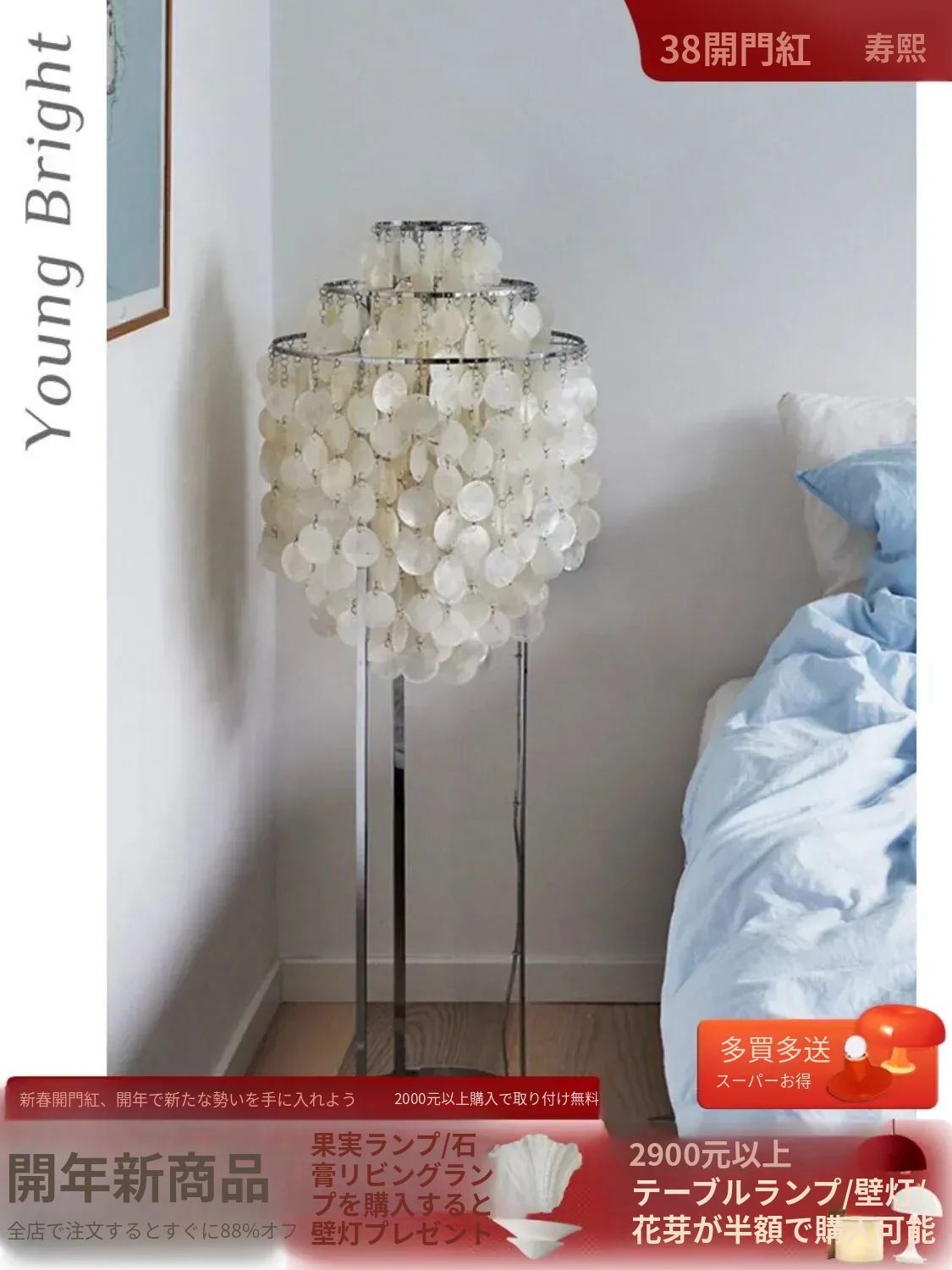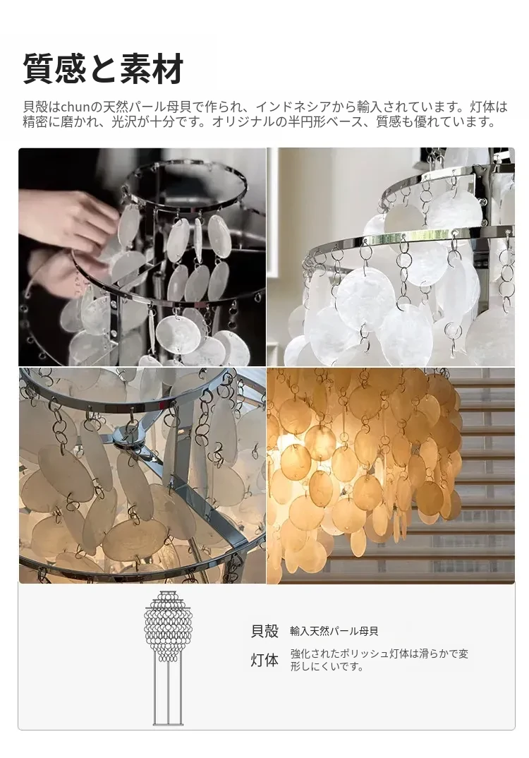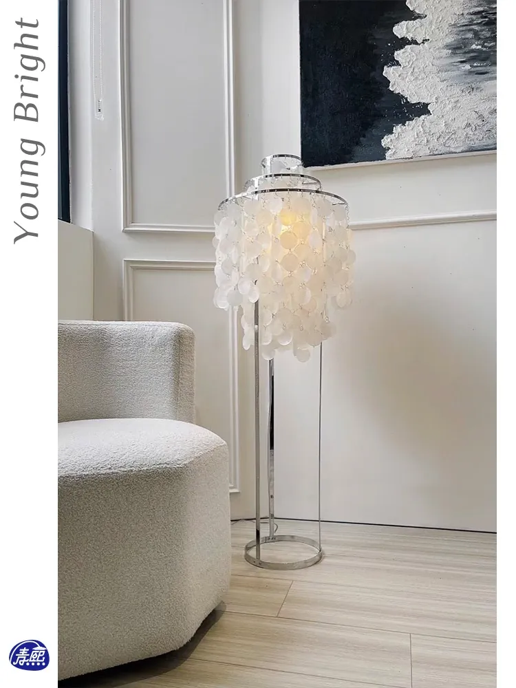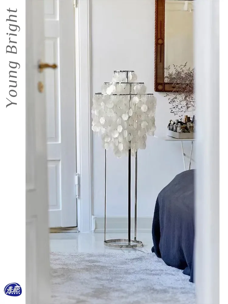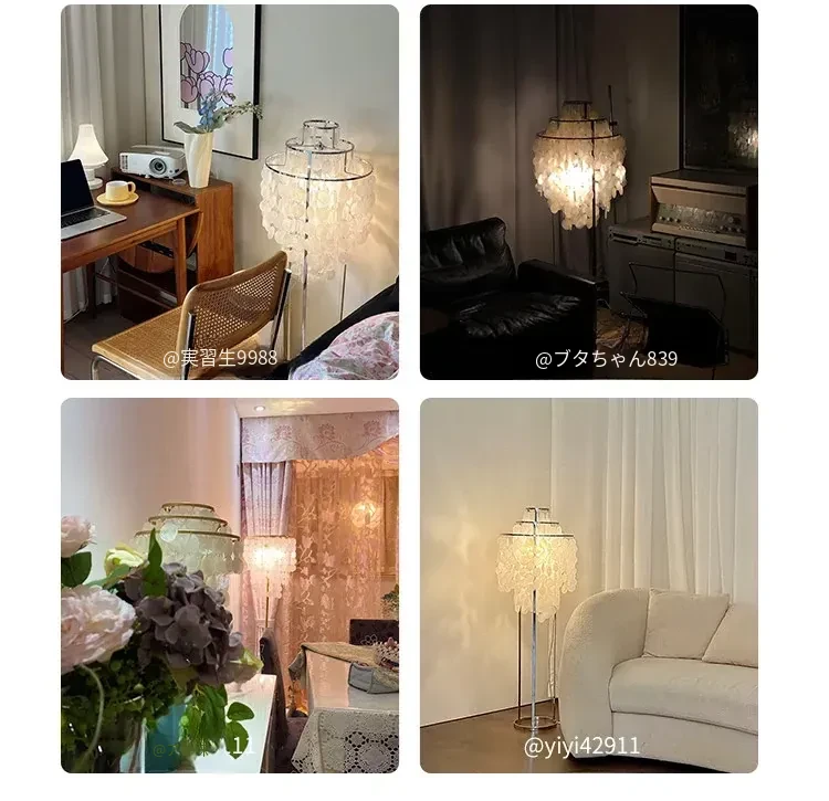 デンマークシェルフロアランプ フランス風パールシェルデザインのリビングルーム用ムードライト アメリカンスタイルの書斎や寝室のベッドサイドランプに最適!優雅な雰囲気を演出し、心地よい空間を作ります。
