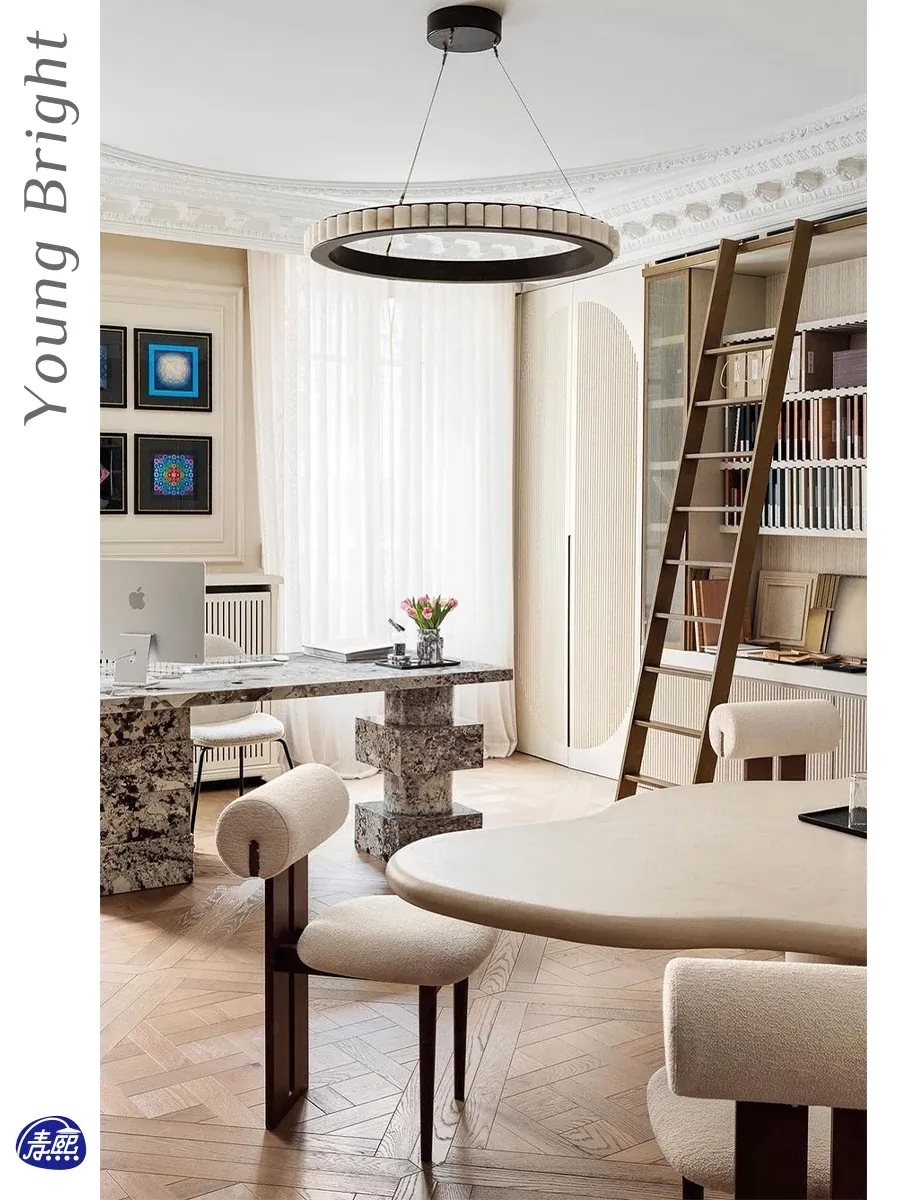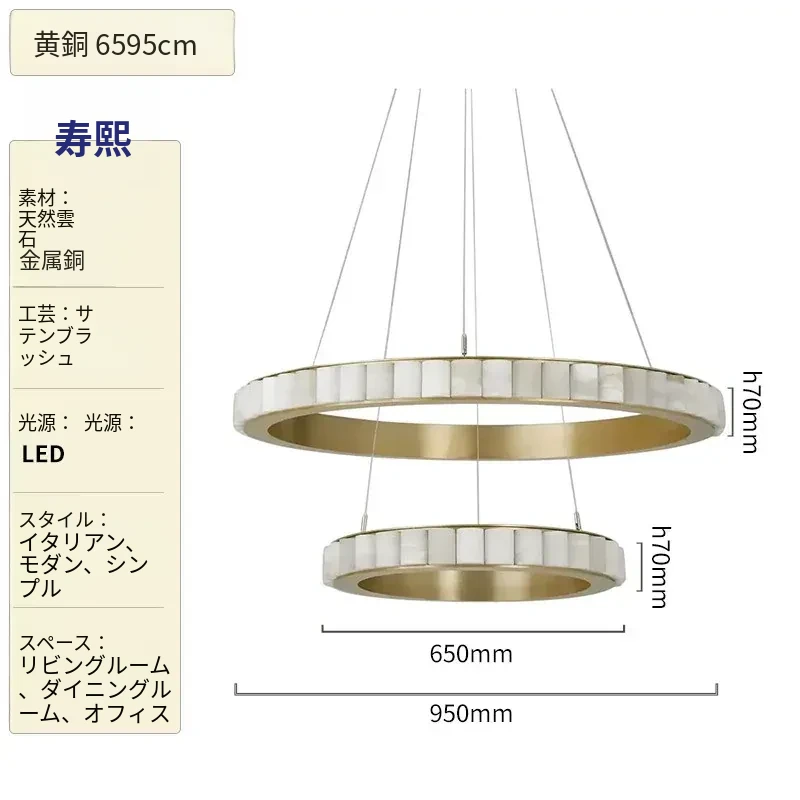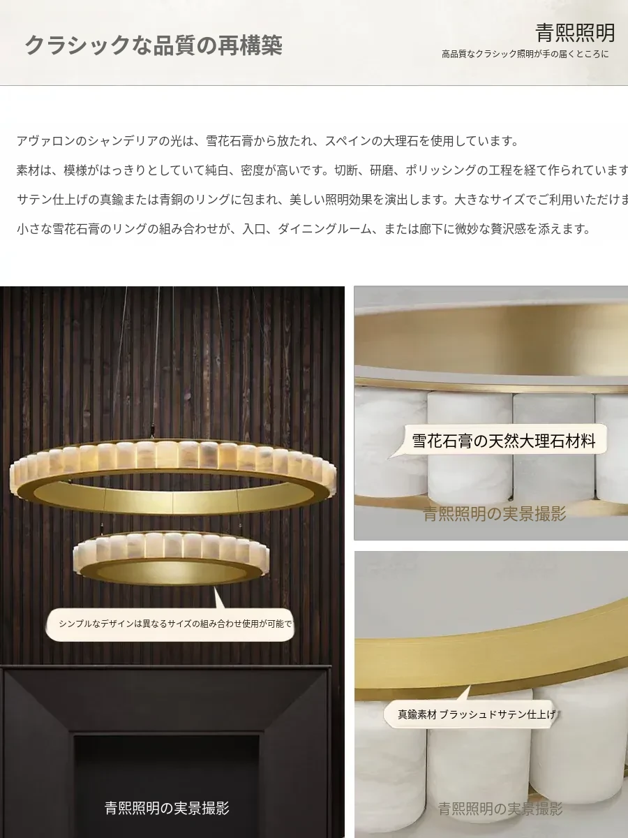フランス製CTOライティング アヴァロン ラグジュアリー大理石シャンデリア - リビング、ベッドルーム、ヴィラ、ダイニングに最適なサークルライトで優雅な雰囲気を演出!