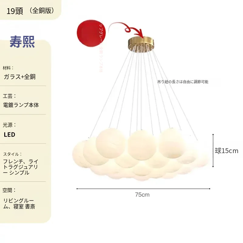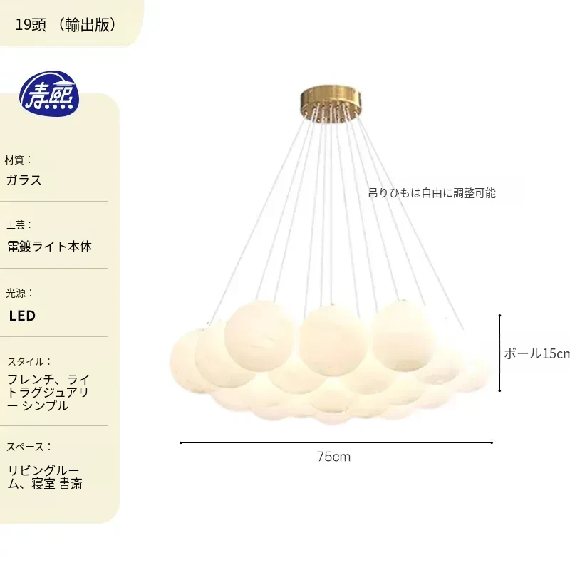 フランス式ラグジュアリー星型ランプ ボールライト 吊り下げ式ガラス クラウドマーブル ベッドルーム用照明 モアの雲 月球デザイン リビングルームの中心照明で、夢のような空間を演出します!