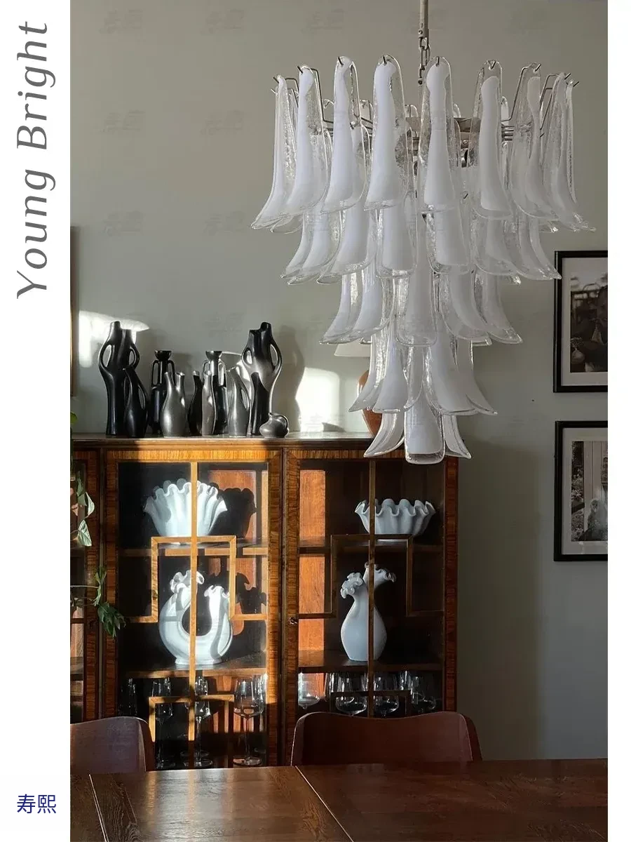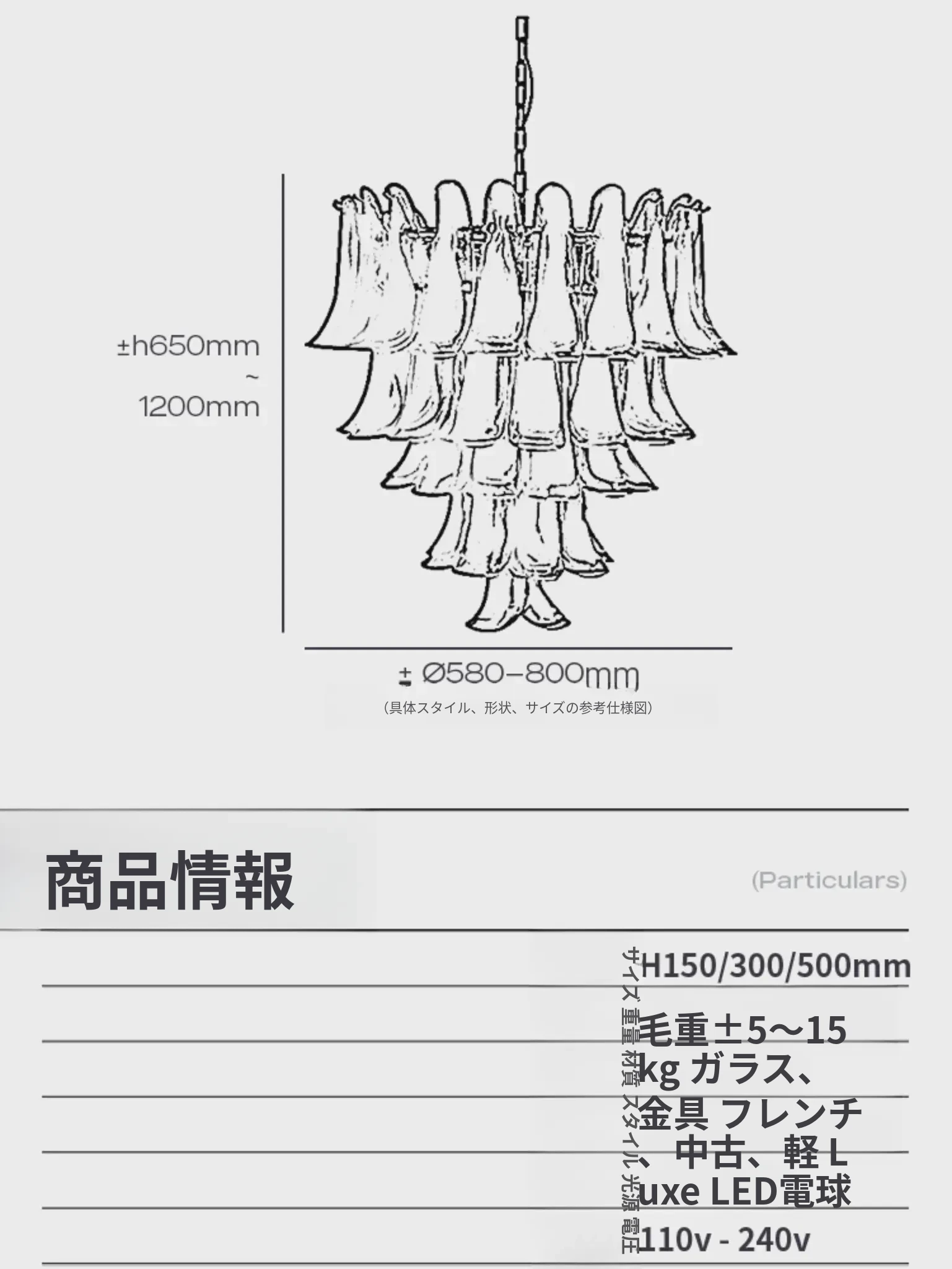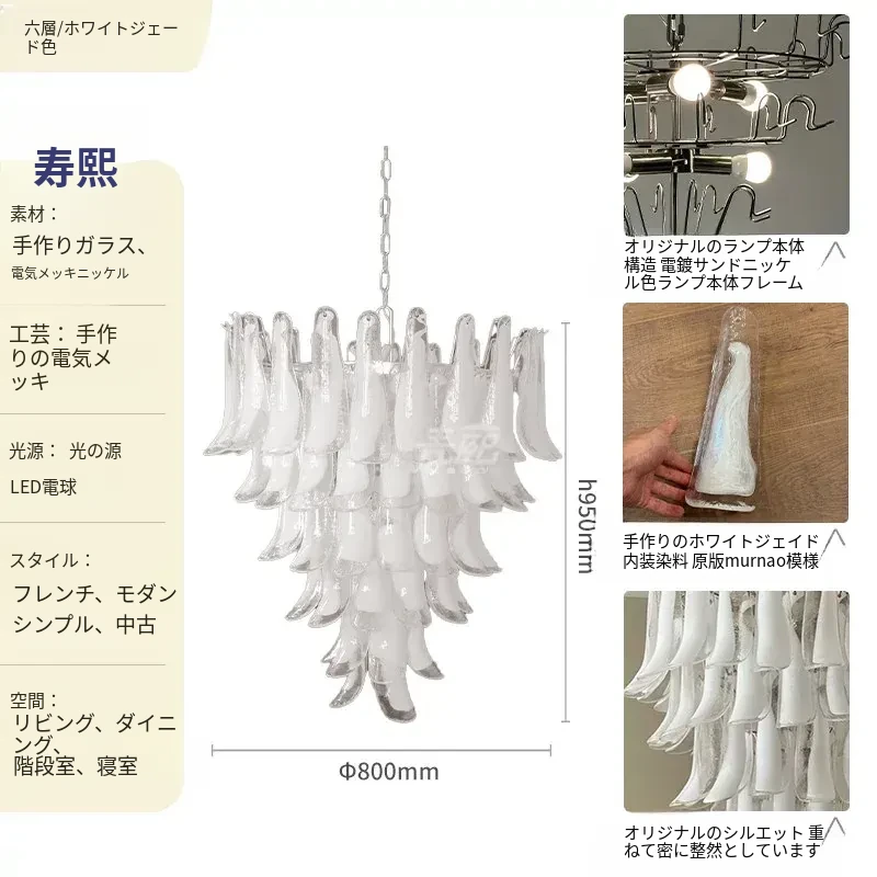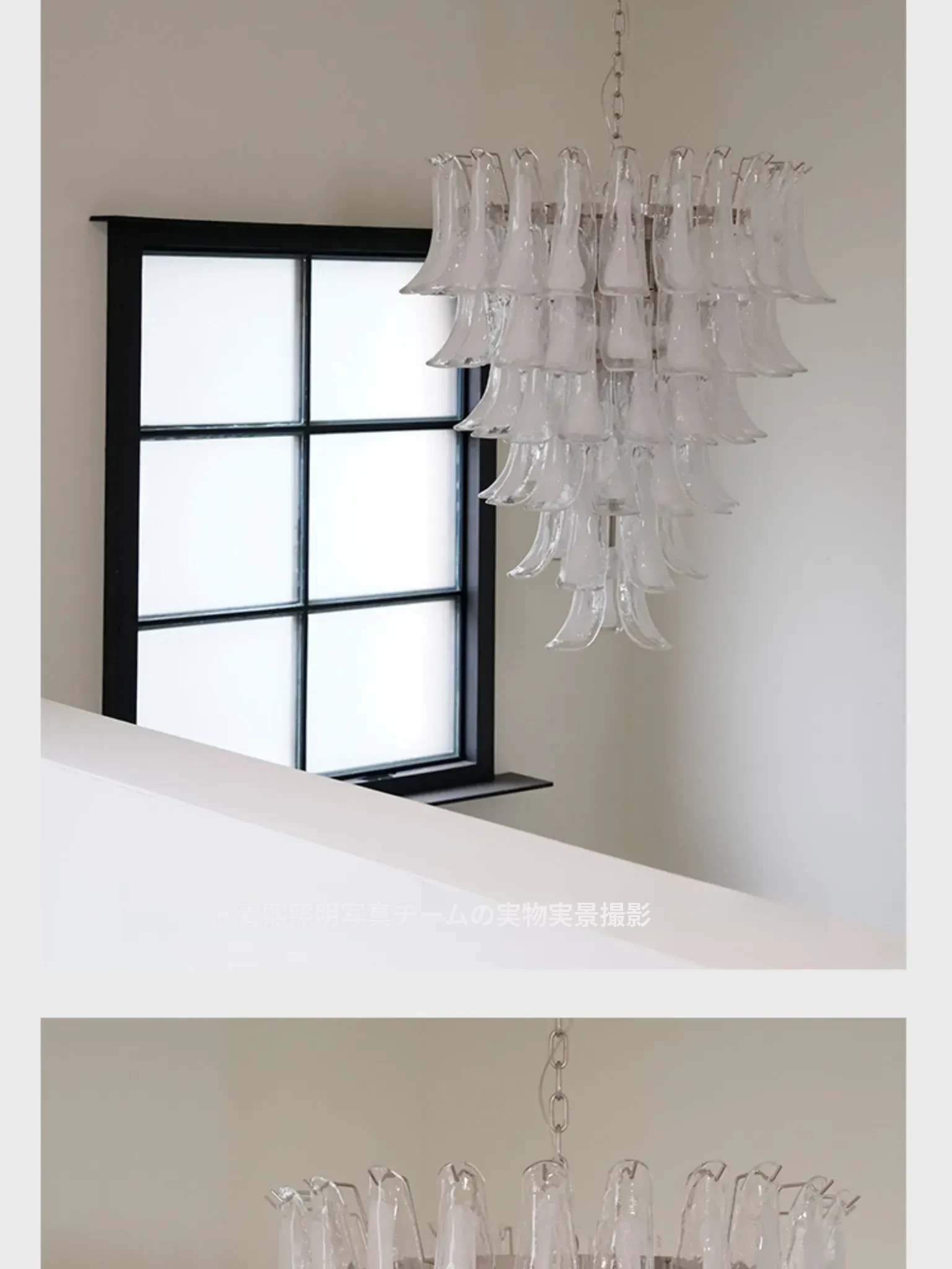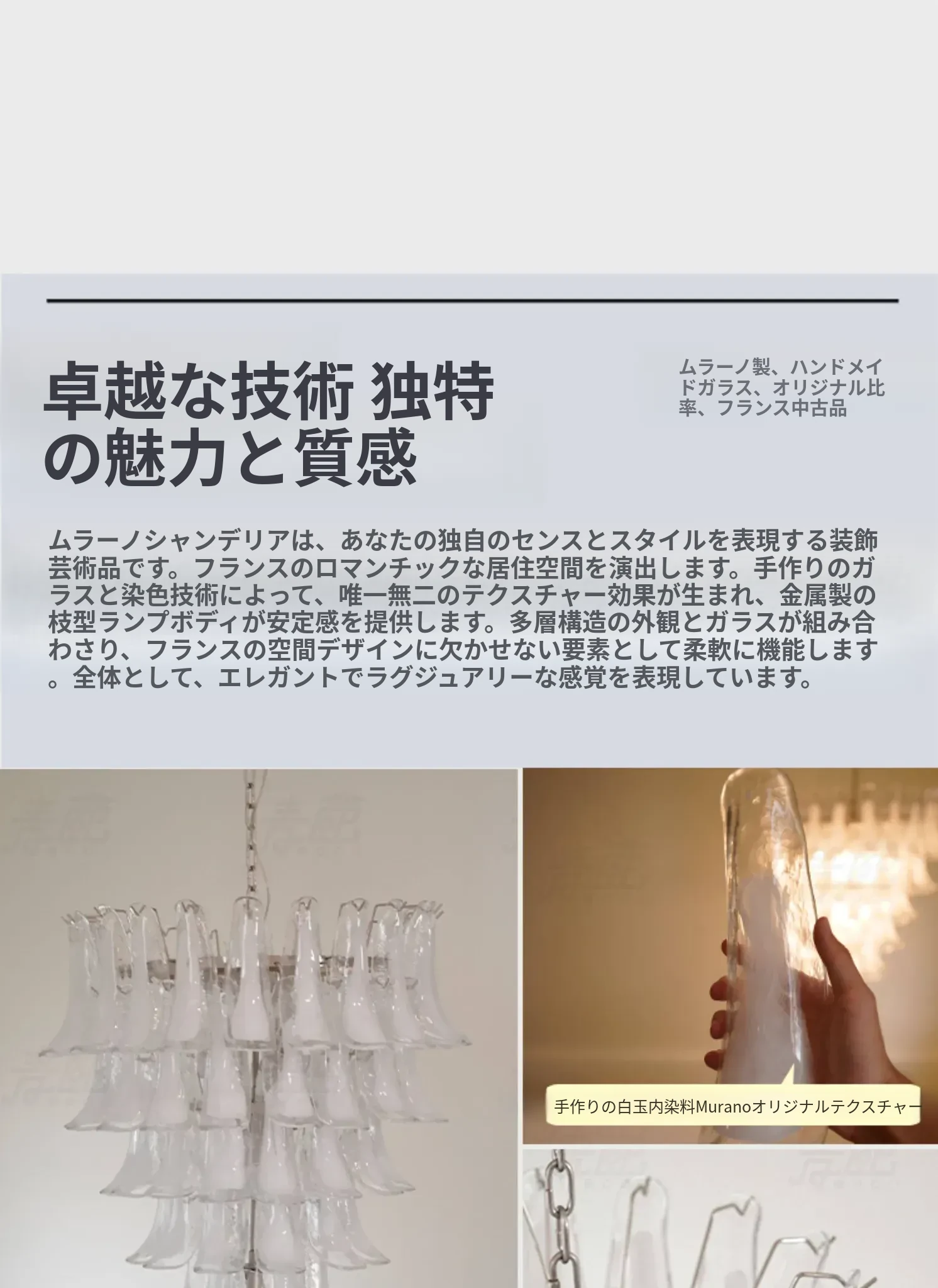 フランス風ムラノガラスシャンデリア - ヴィンテージスタイルの豪華なリビングルーム用、メゾネット階段やダイニングルームにも最適!美しいアメリカンデザインの主照明で、寝室を優雅に演出します。