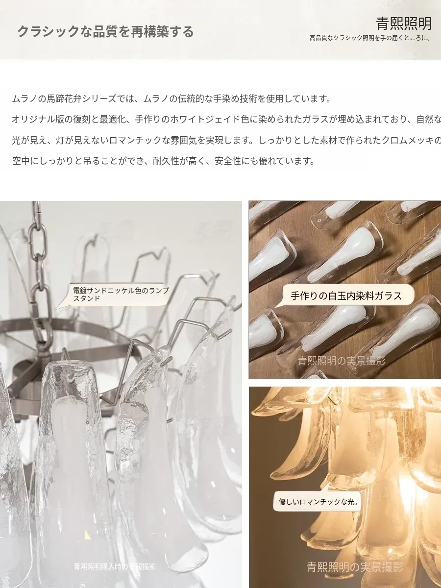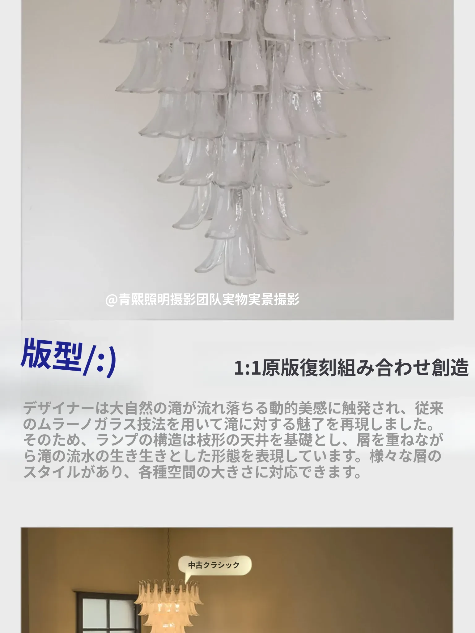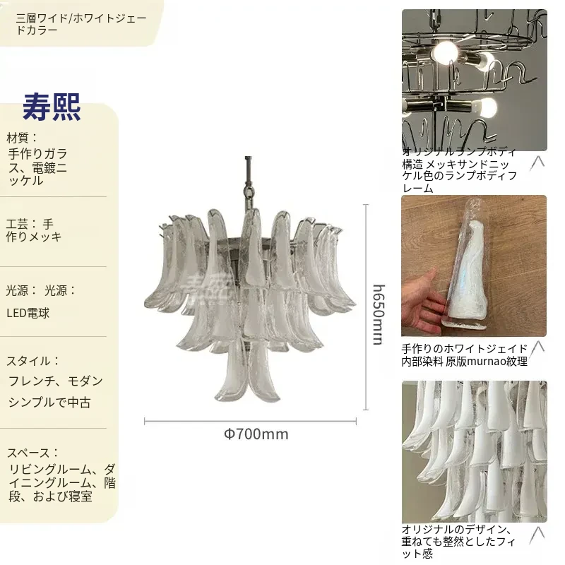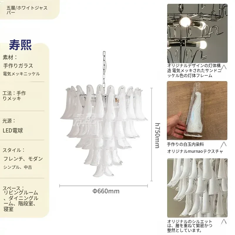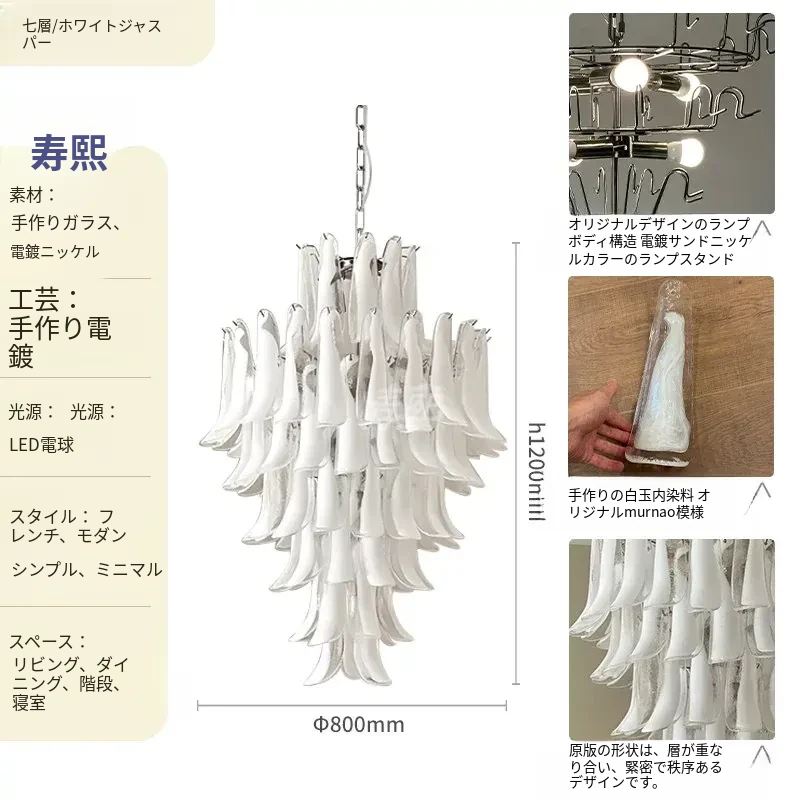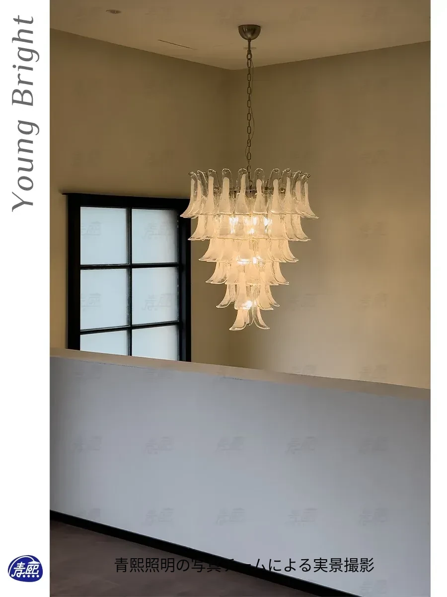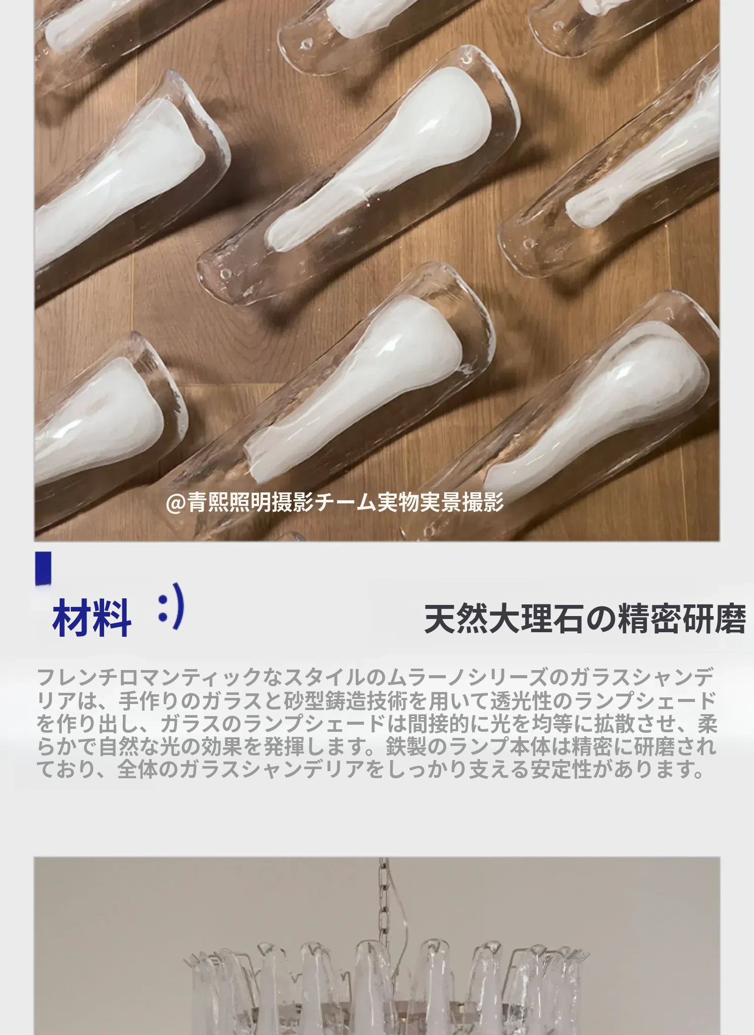 フランス風ムラノガラスシャンデリア - ヴィンテージスタイルの豪華なリビングルーム用、メゾネット階段やダイニングルームにも最適!美しいアメリカンデザインの主照明で、寝室を優雅に演出します。