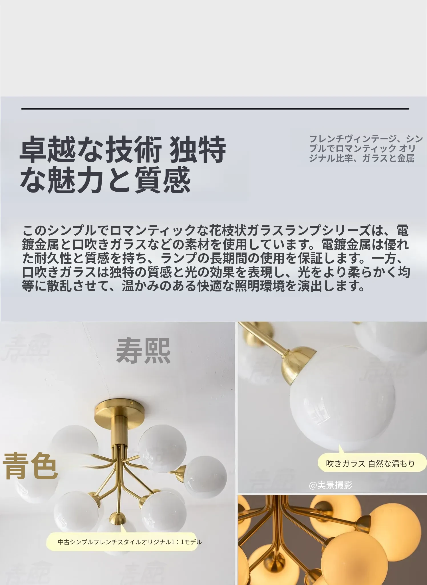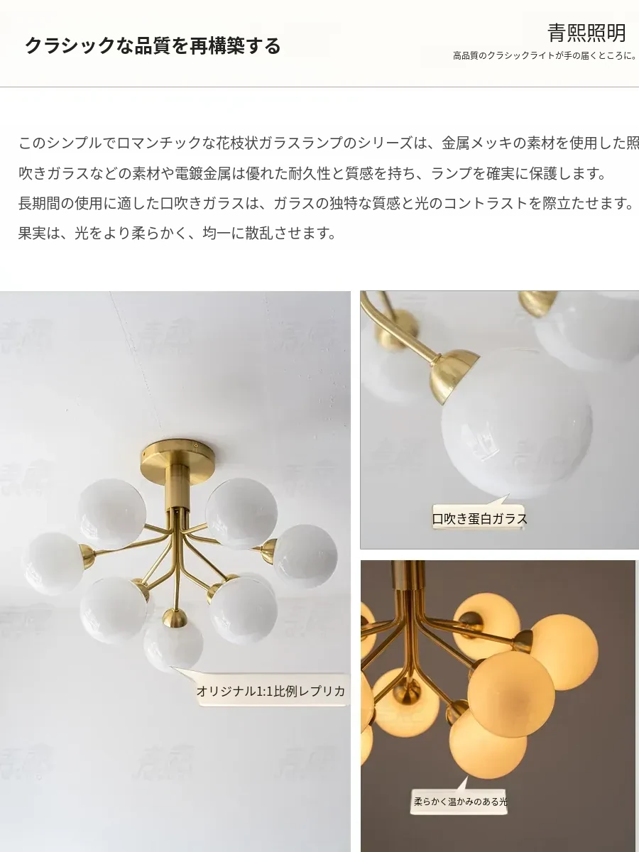 フランス風Nuuraマジックビーン全銅シーリングライト - 寝室、ダイニング、リビングルーム、別荘に最適!洗練されたデザインで、おしゃれな雰囲気を演出。美しいアメリカンスタイルの照明をお楽しみください!