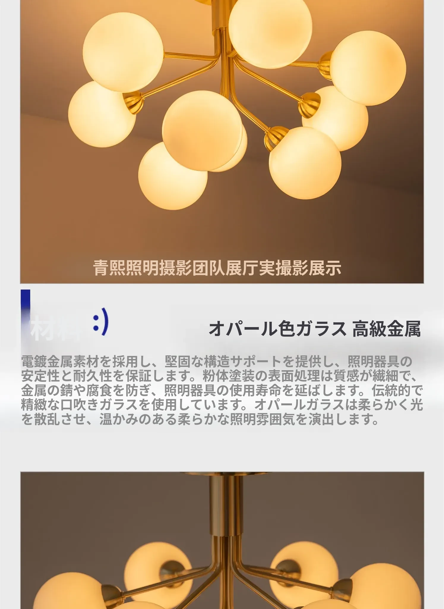 9灯シーリングタイプ ブラス色 オリジナル質感