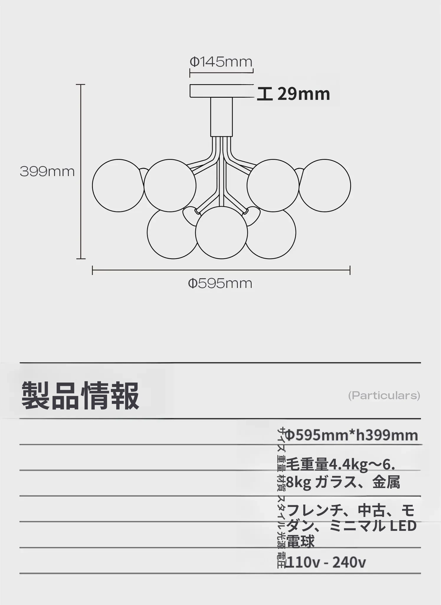 9灯ペンダントタイプ ガンメタル色 オリジナル質感