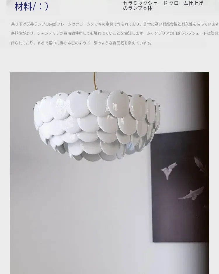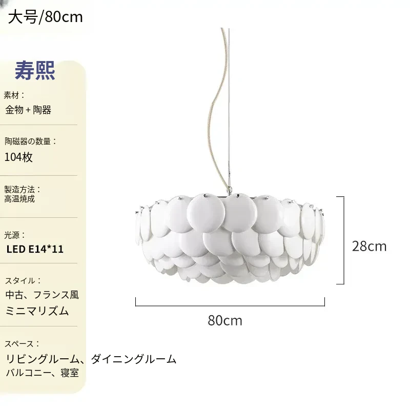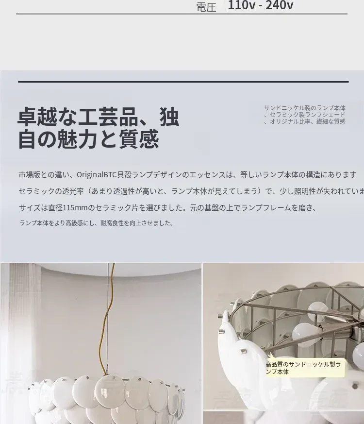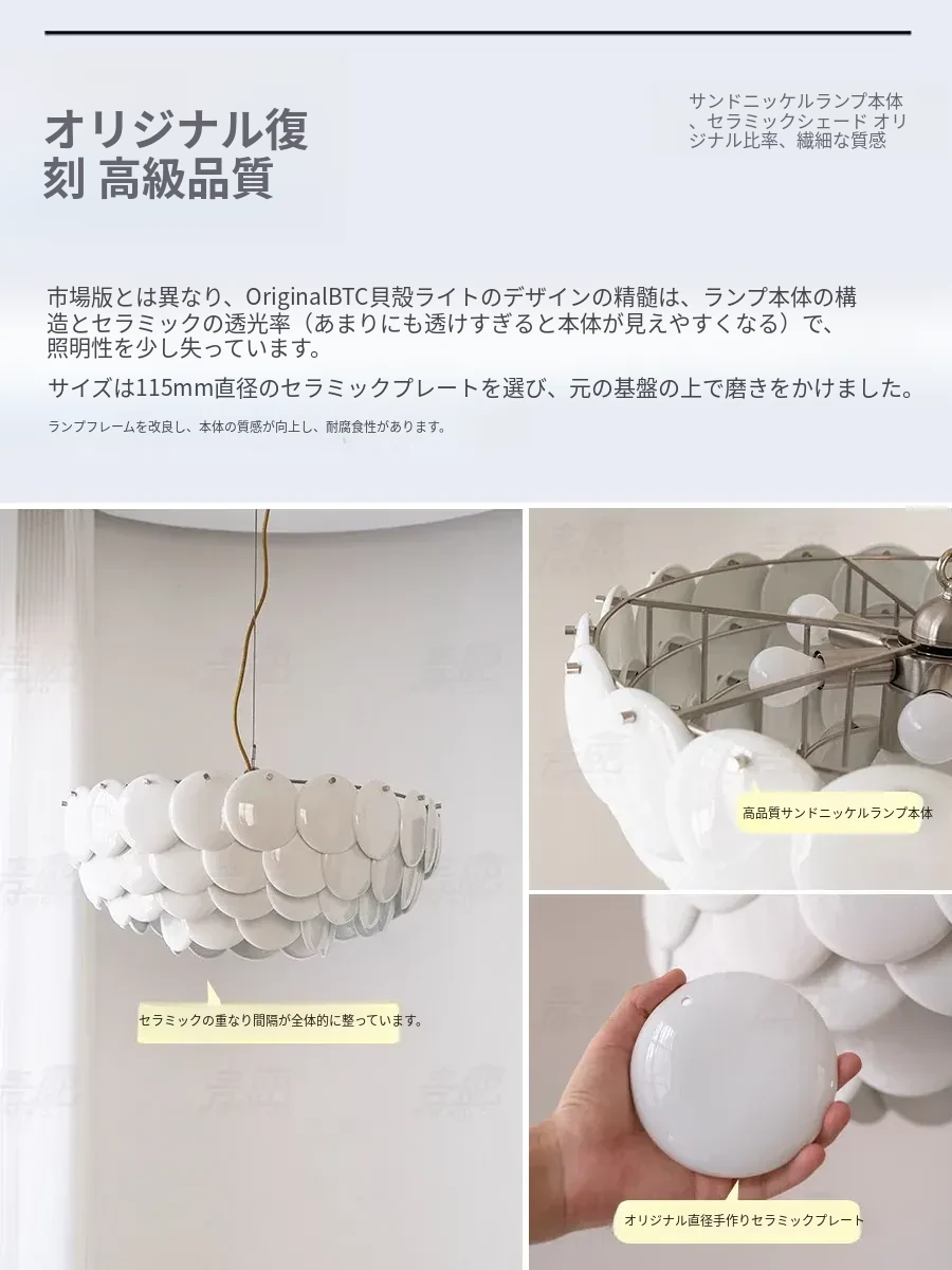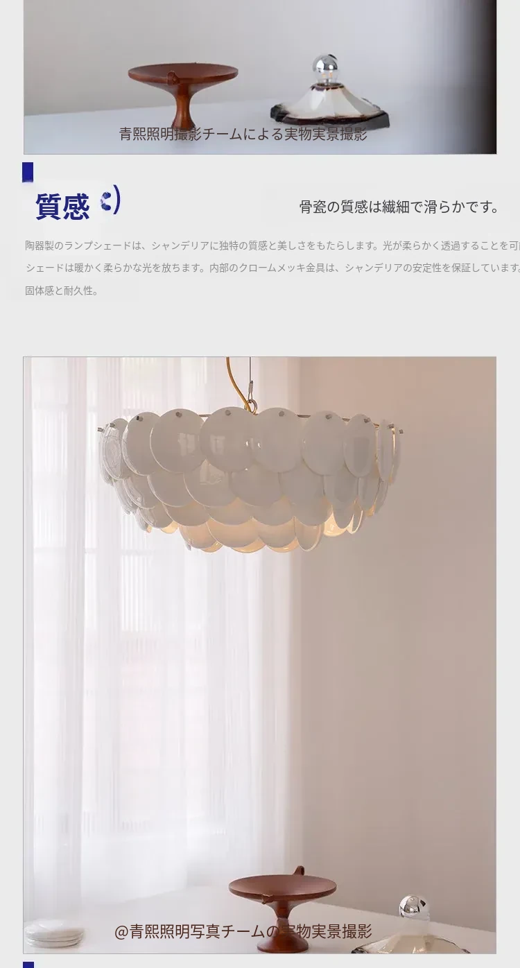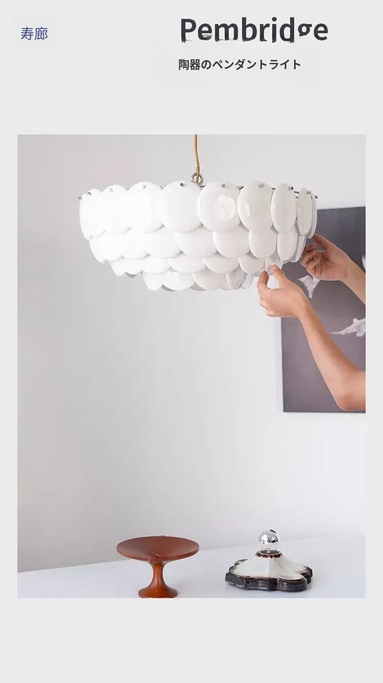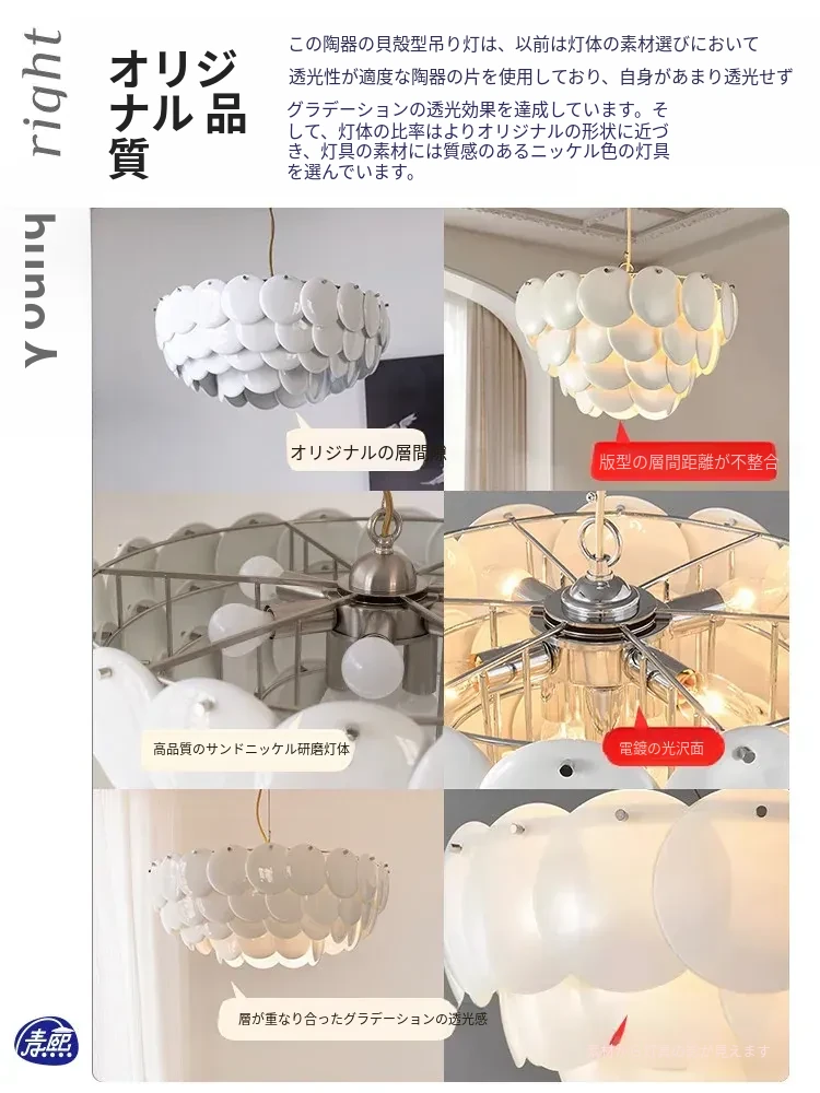 フレンチペンブリッジデザインのセラミックシャンデリア - シェルモチーフのモダンミニマリストリビングルーム用ライト、クリーミーな雰囲気で寝室を優雅に演出!