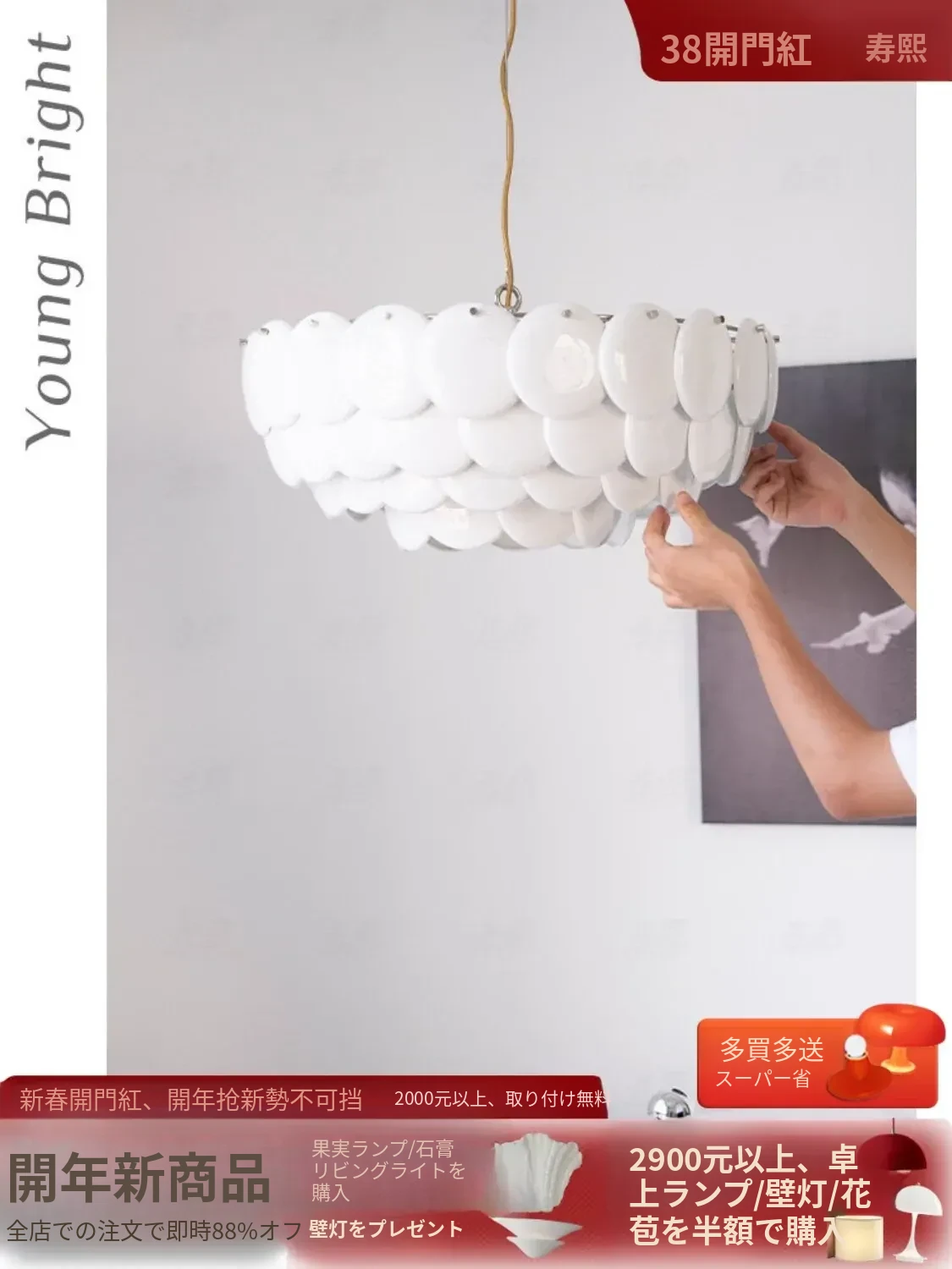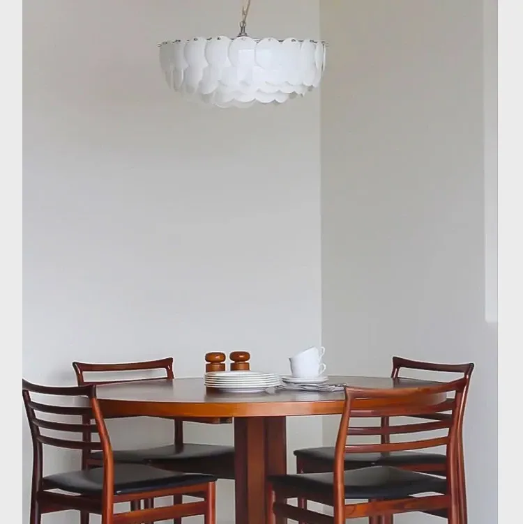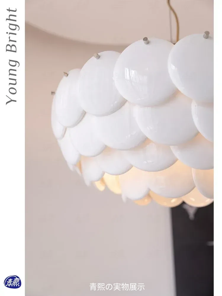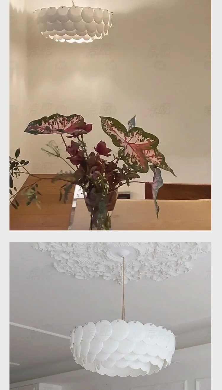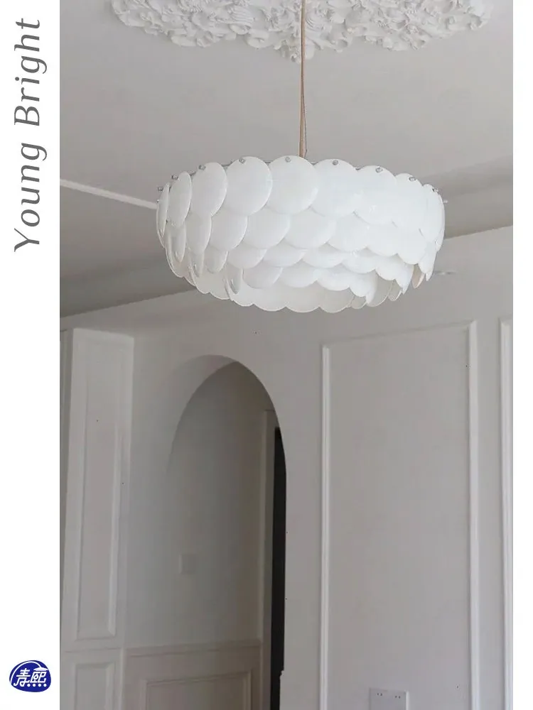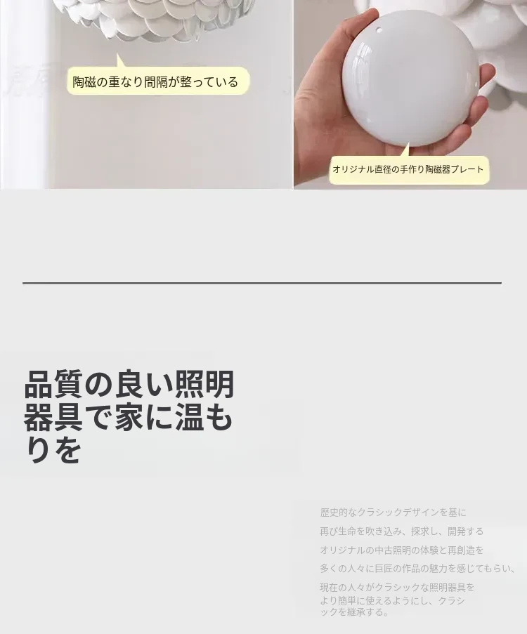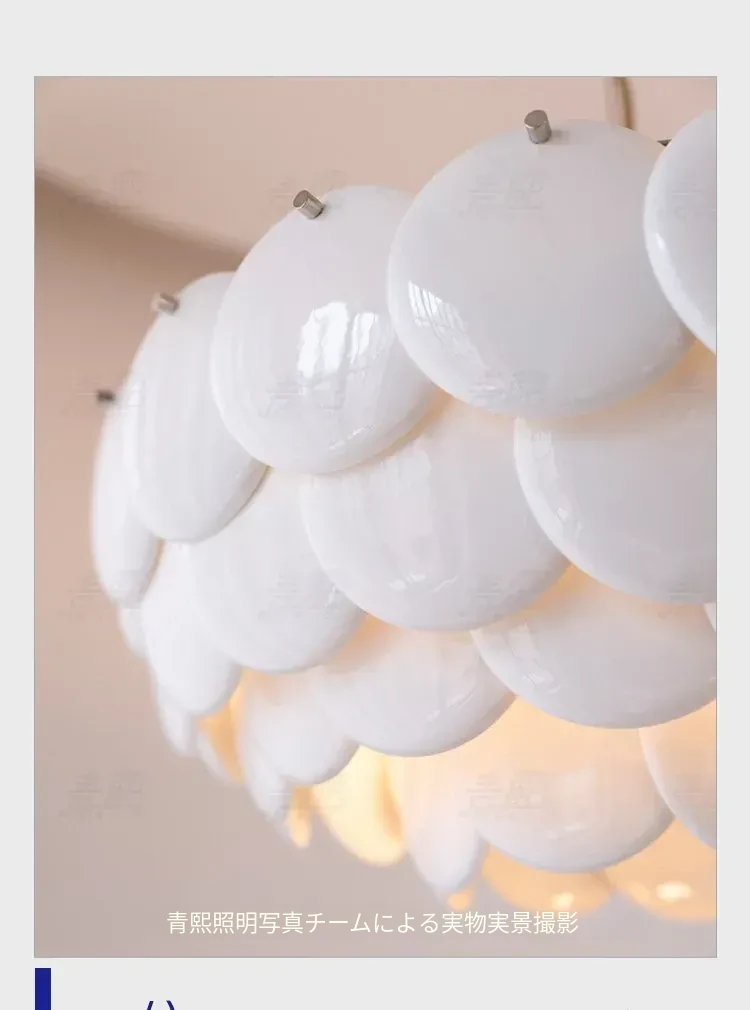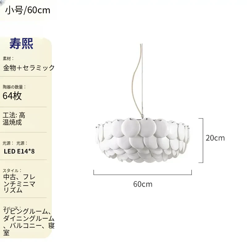 フレンチペンブリッジデザインのセラミックシャンデリア - シェルモチーフのモダンミニマリストリビングルーム用ライト、クリーミーな雰囲気で寝室を優雅に演出!