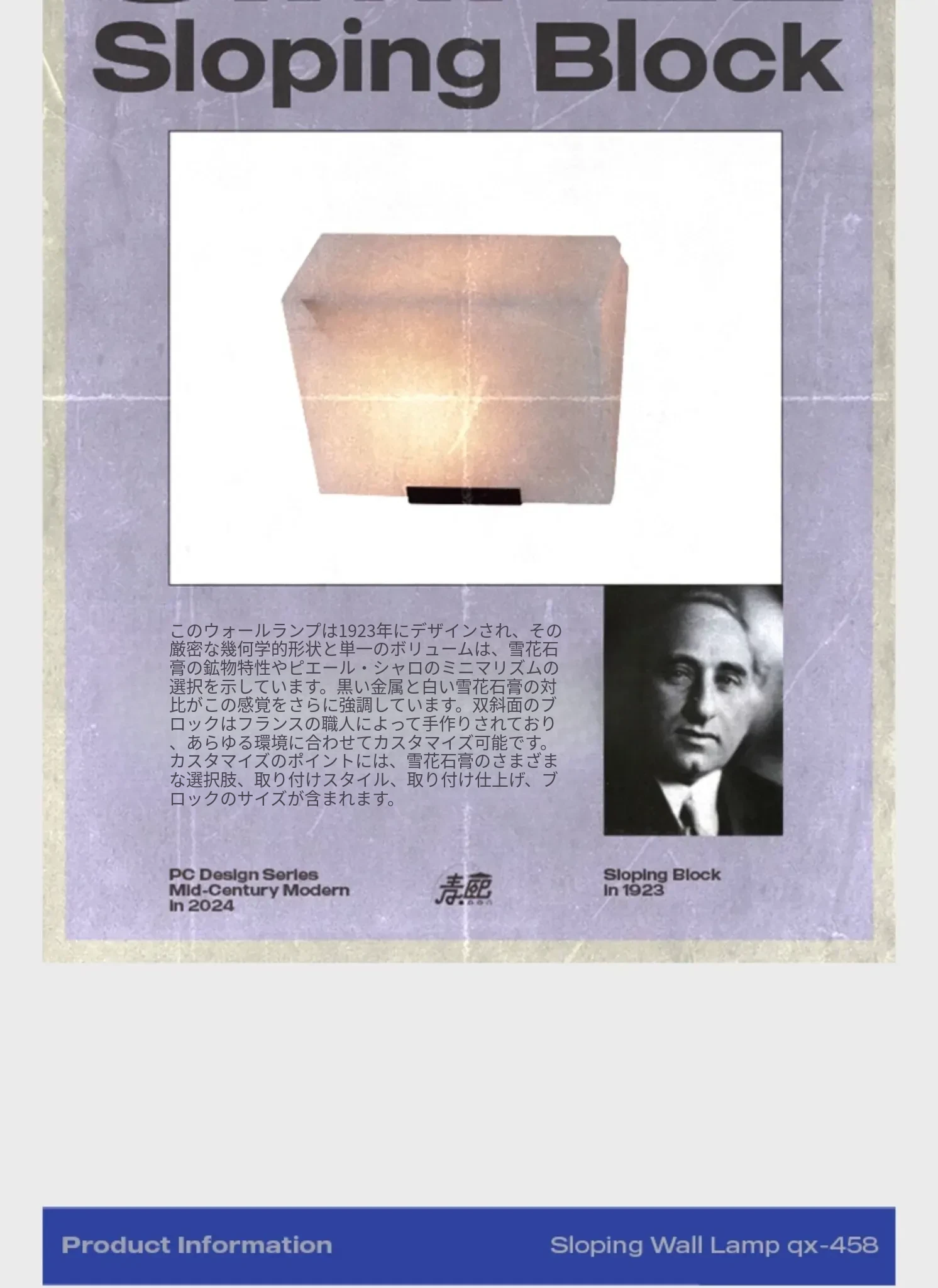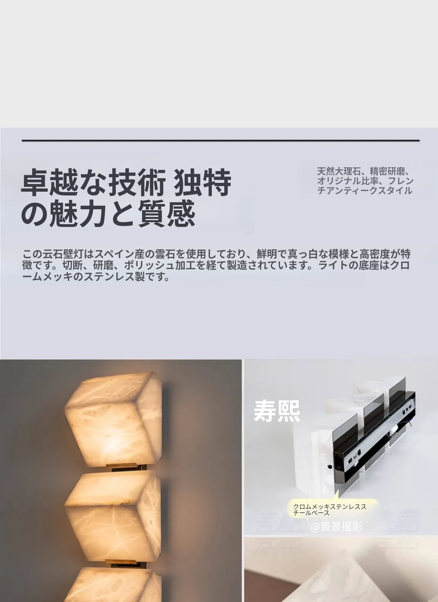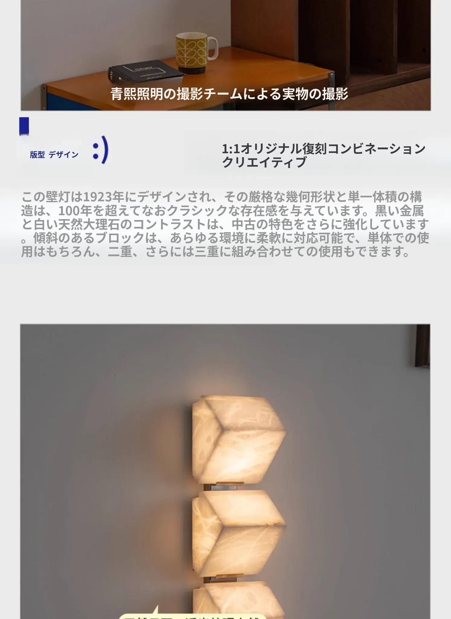 フランスのデザイナーPierre Chareauによる天然大理石のウォールランプ - 背景壁に最適、寝室やベッドサイド、鏡の前、玄関をおしゃれに演出します!