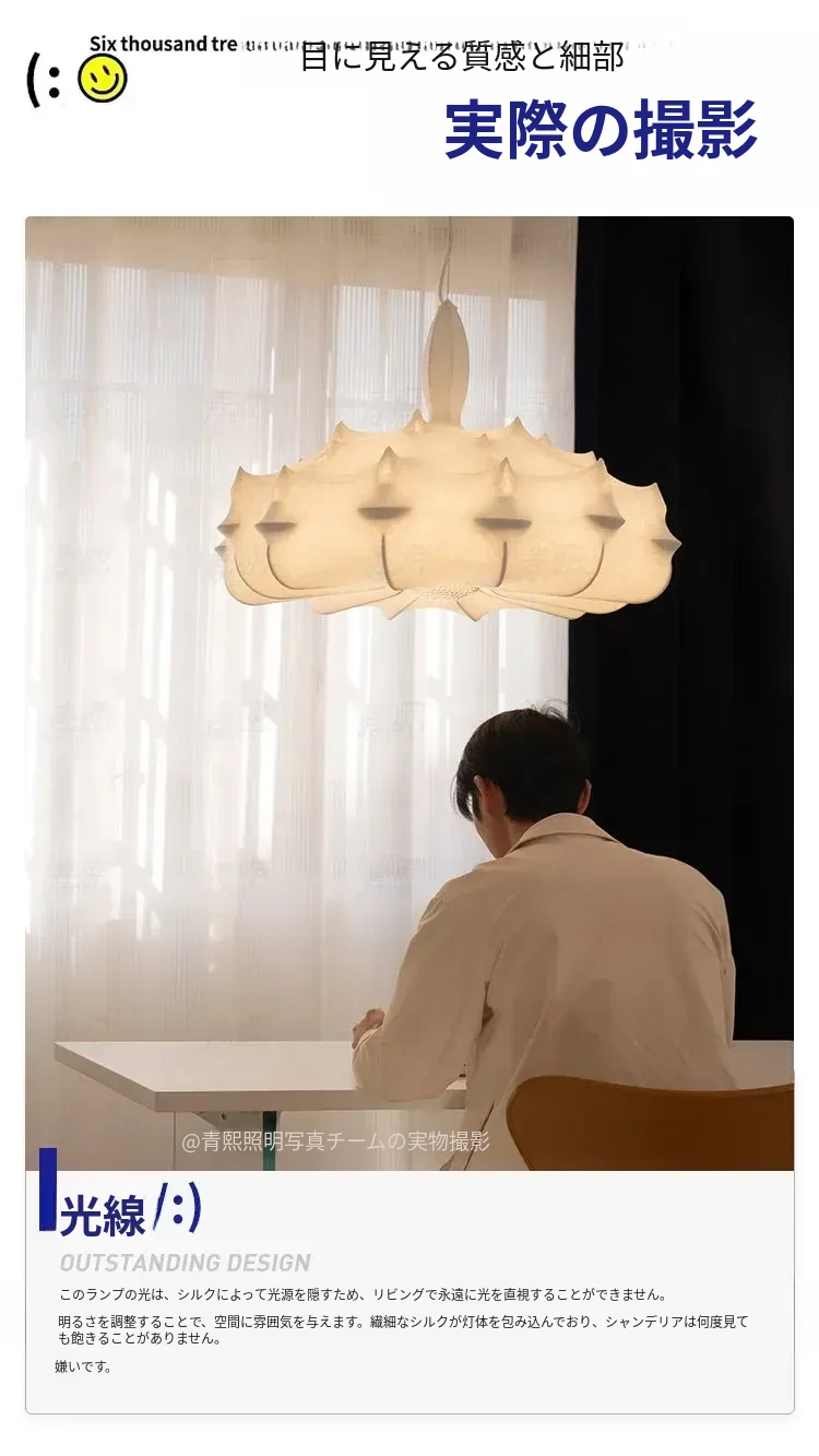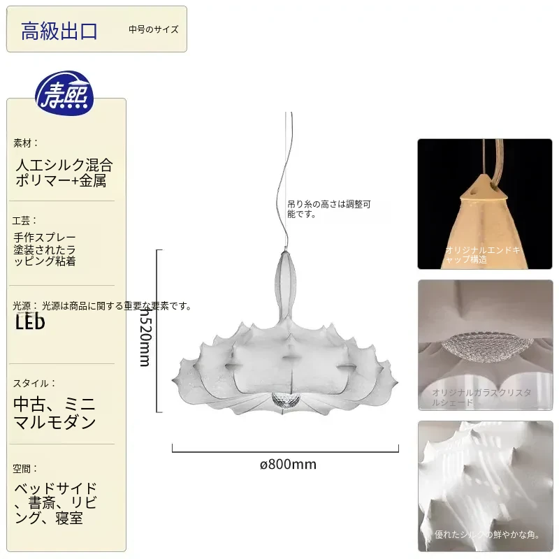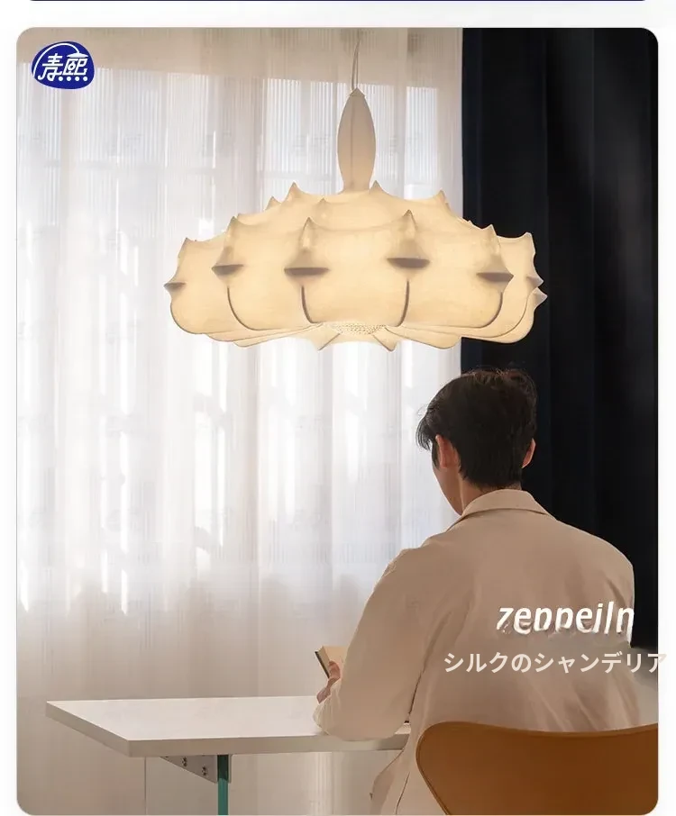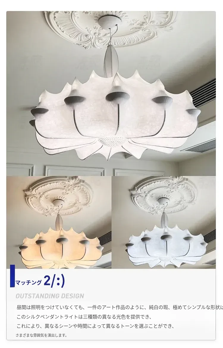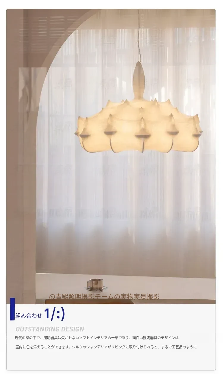 フランス製シルクのモダン吊り灯 - イタリアデザイナーの侘寂スタイル、クリーム風のヴィラ用寝室照明。優雅さと洗練を兼ね備えたインテリアを演出します!