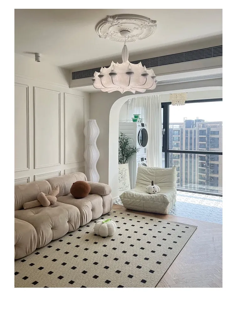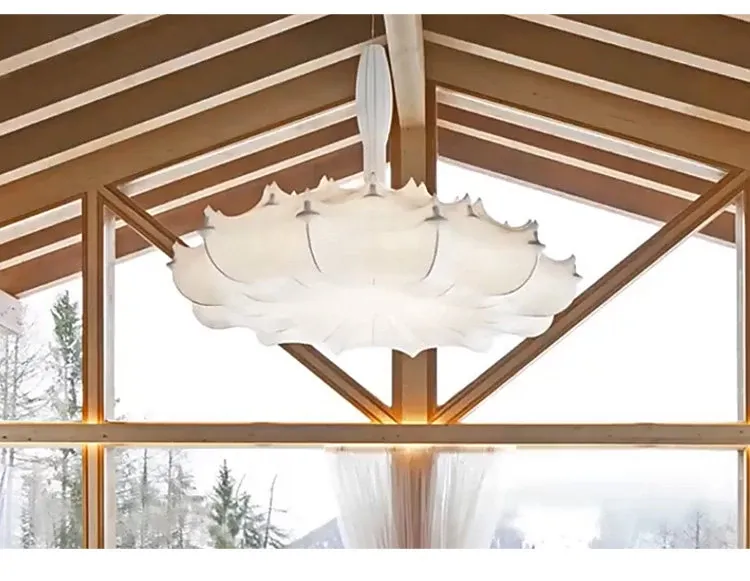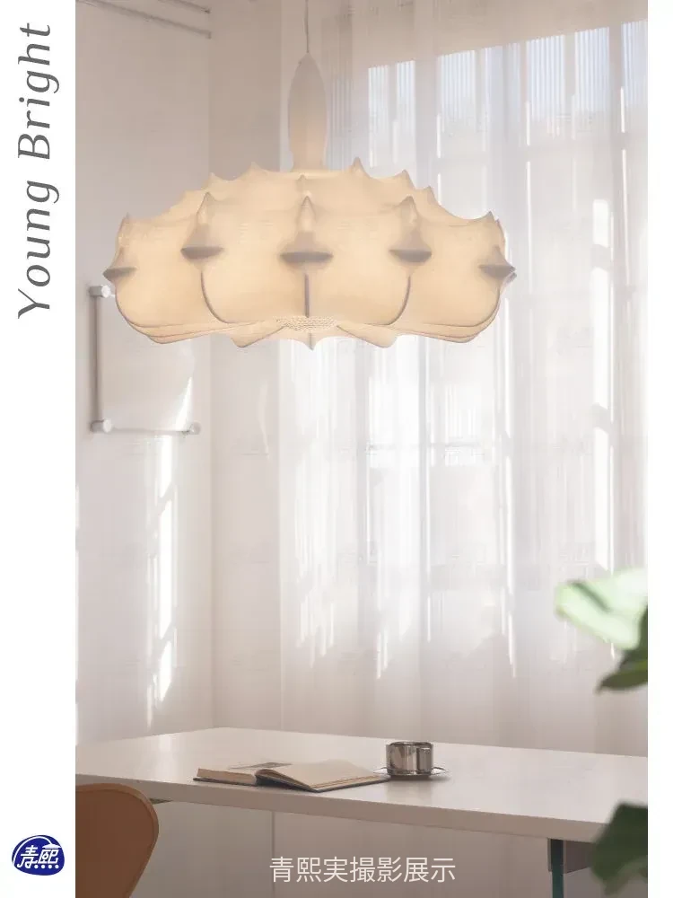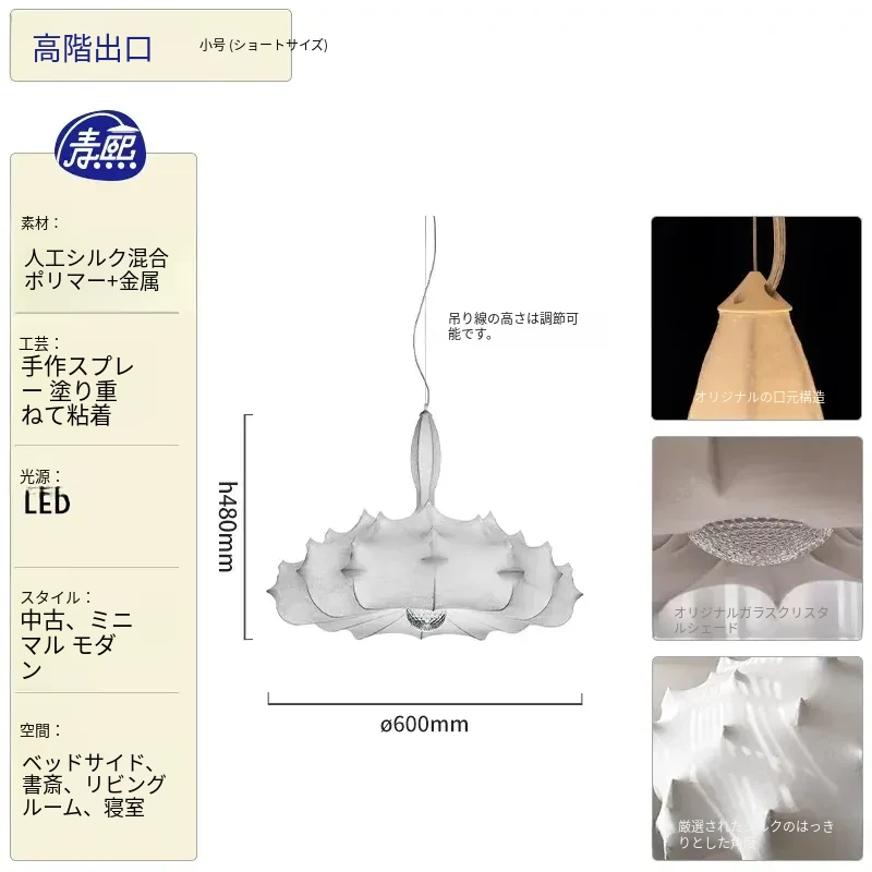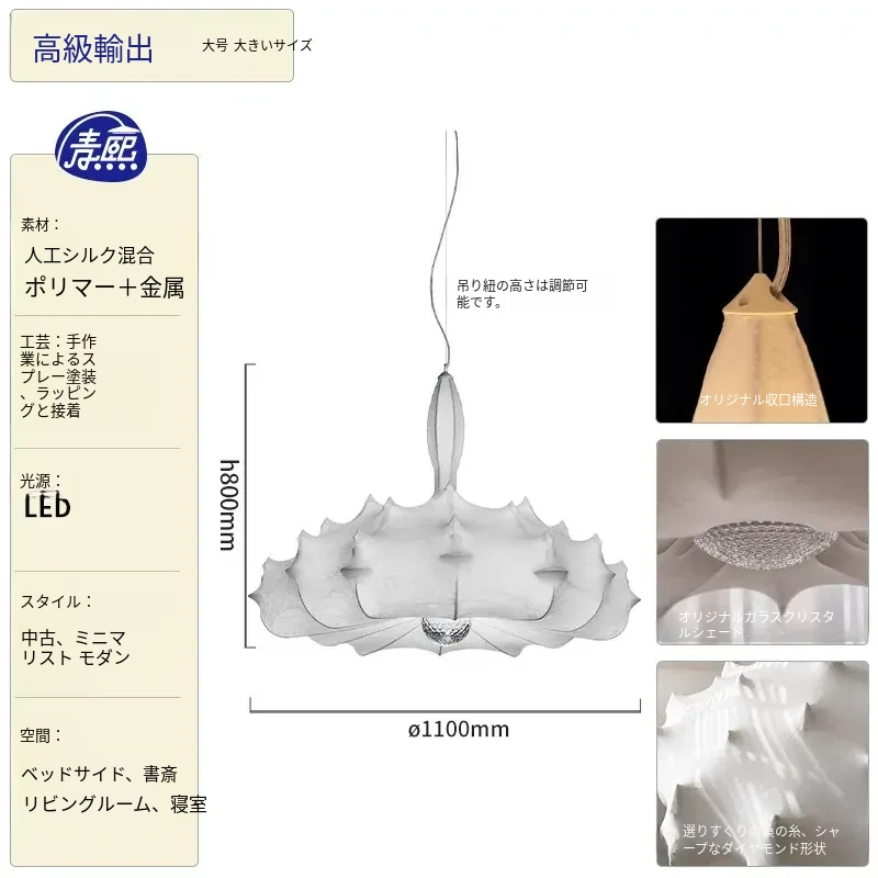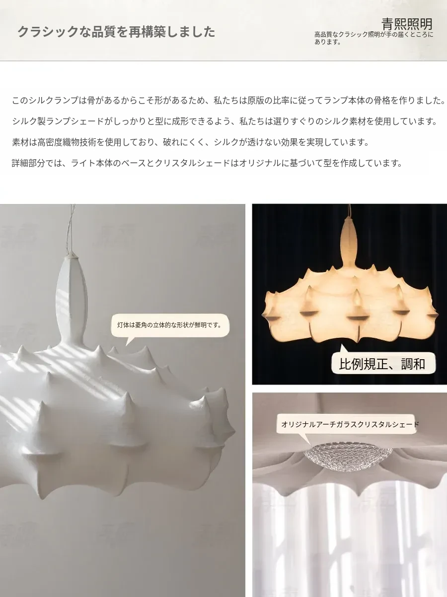 フランス製シルクのモダン吊り灯 - イタリアデザイナーの侘寂スタイル、クリーム風のヴィラ用寝室照明。優雅さと洗練を兼ね備えたインテリアを演出します!
