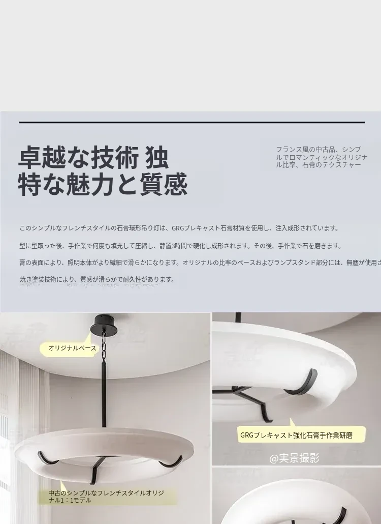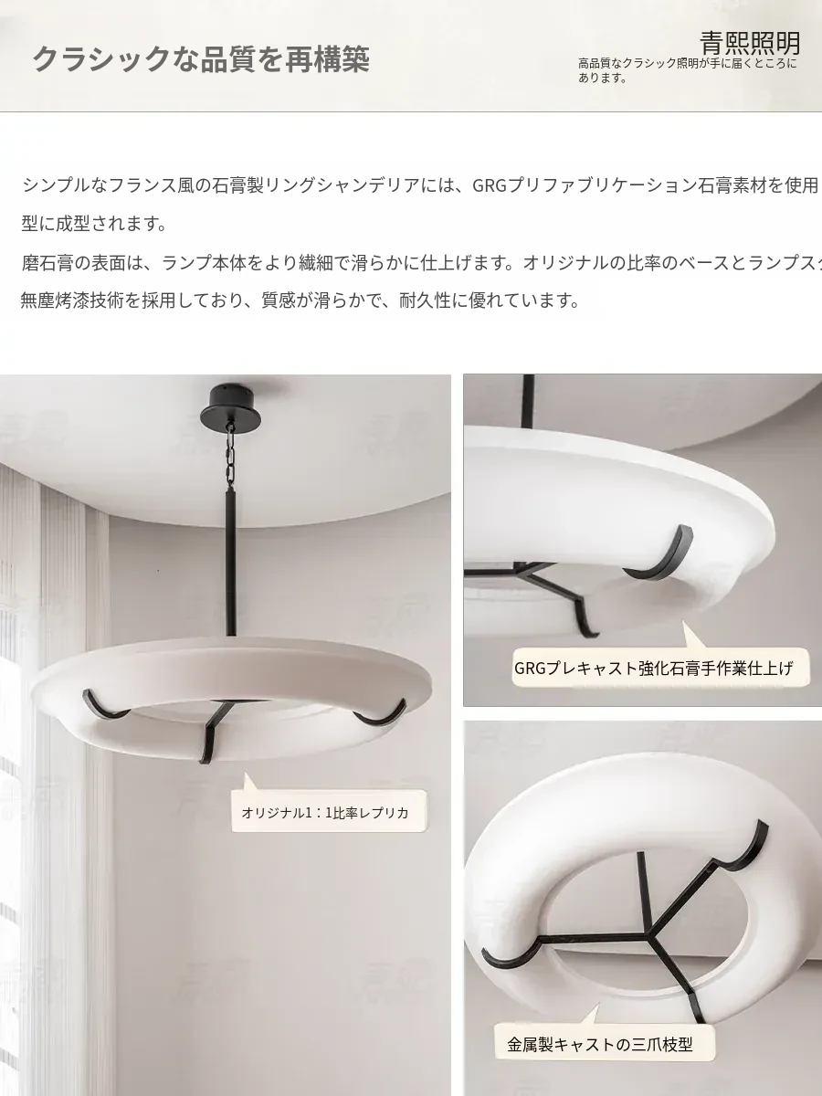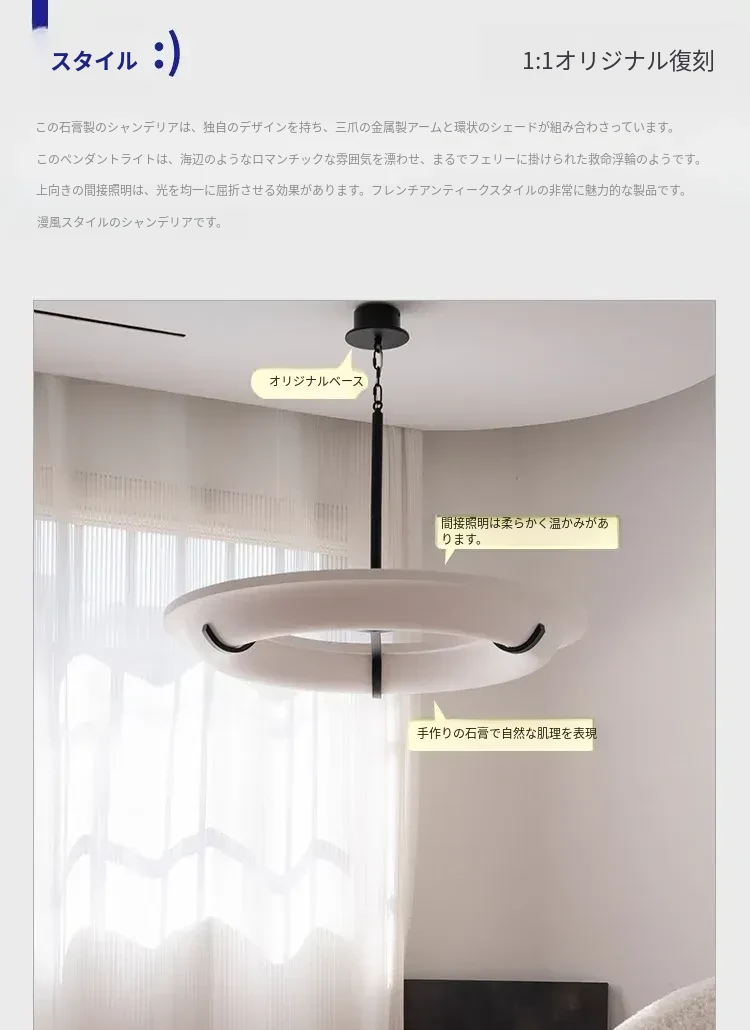 フレンチヴィンテージ・アテナ石膏シャンデリア|デザイナーの侘寂スタイルが光る、美しいアメリカンリビング・別荘の主照明やダイニングに最適なランプ!