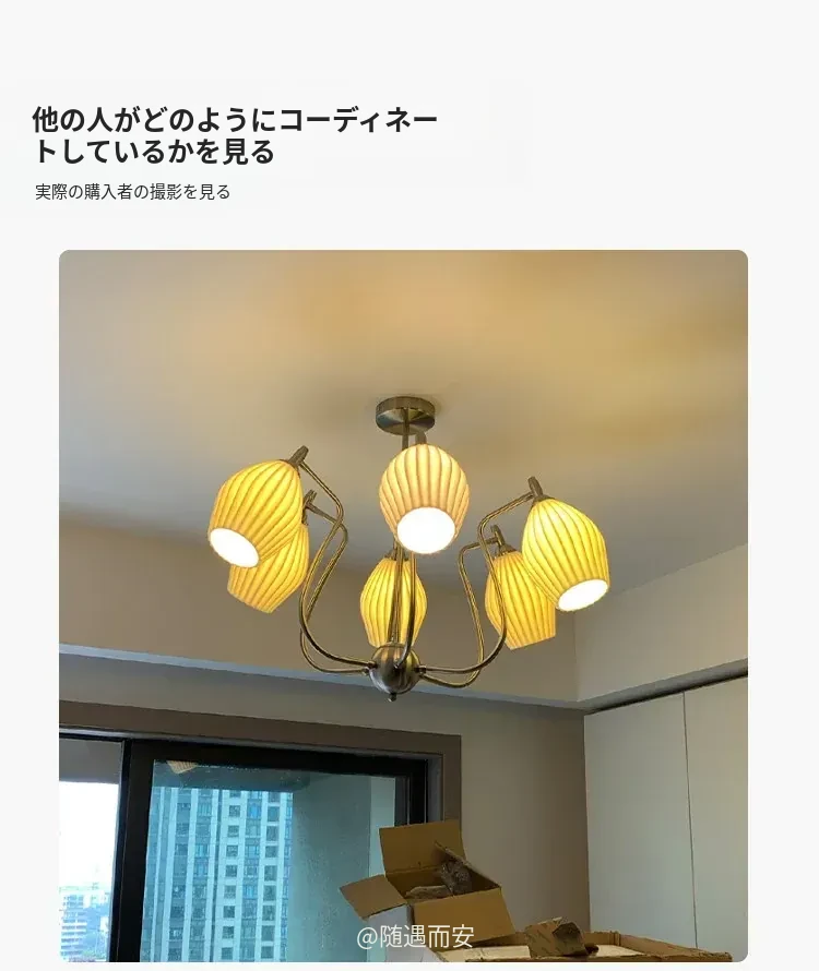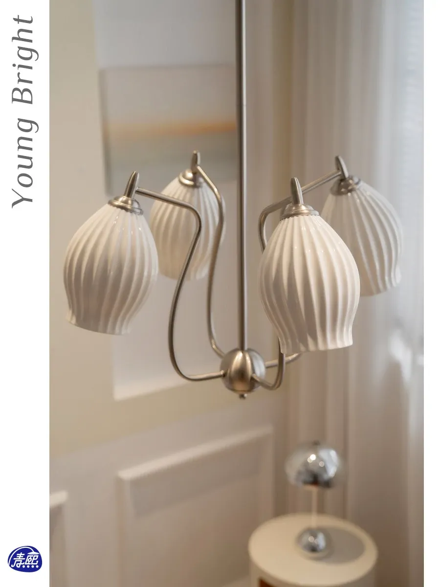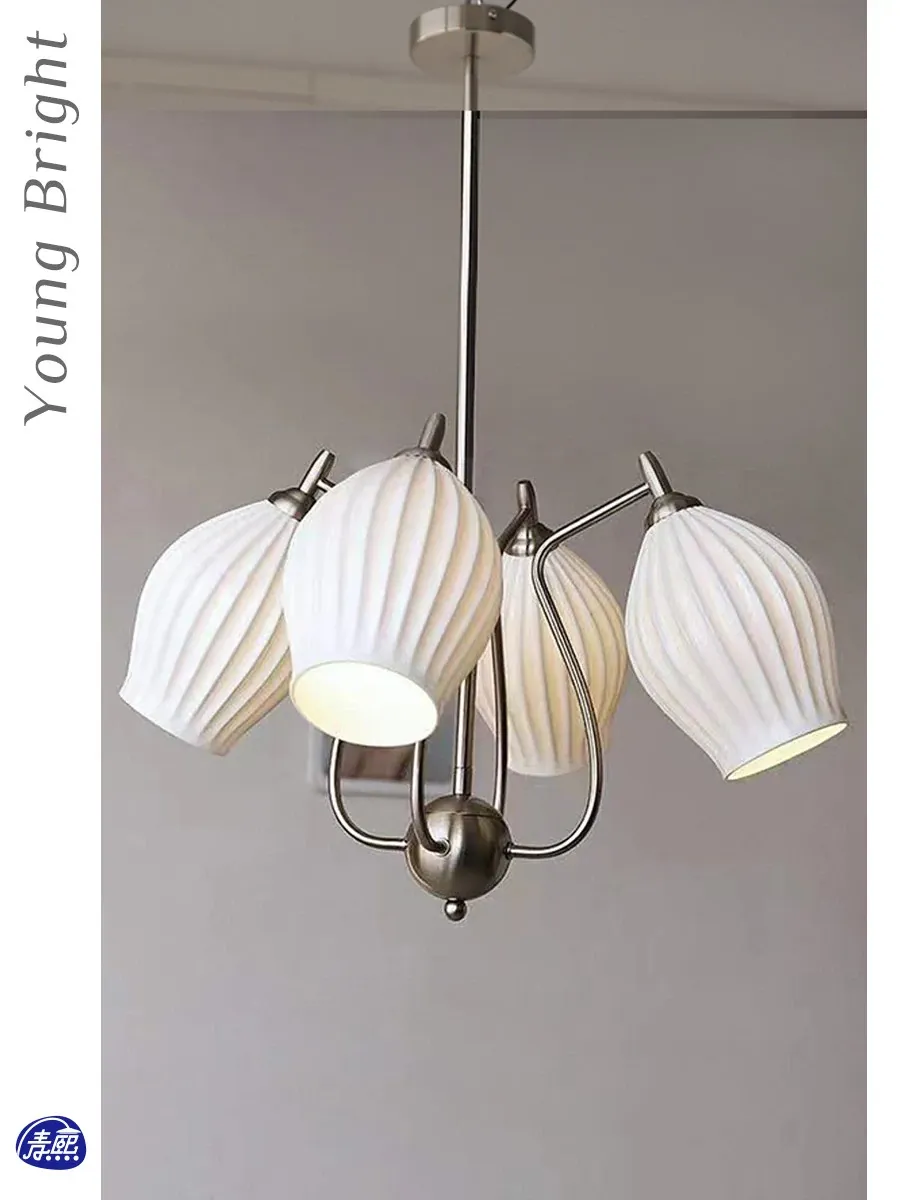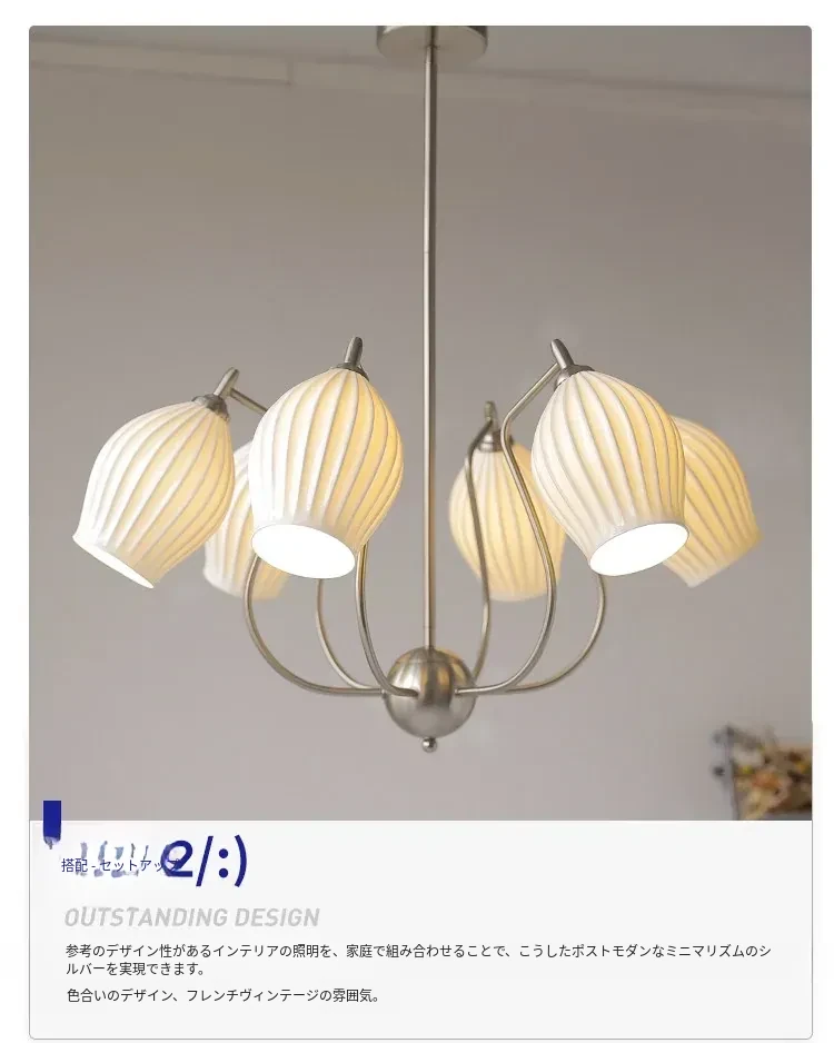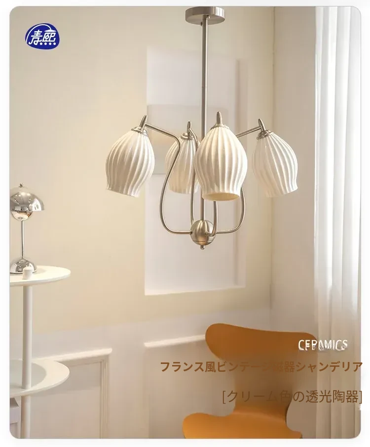 フランス風レトロバウハウスデザイン 陶器とボーンチャイナのシャンデリア 中古のリビング・ダイニング・主寝室にぴったりなガーリックアート照明!洗練された雰囲気を演出し、インテリアを格上げします。