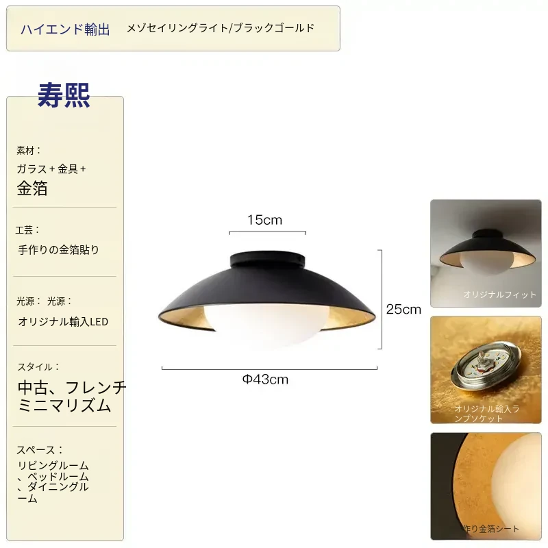 フレンチヴィンテージブラックゴールド箔のレトロな天井照明 - リビング、寝室、書斎、子供部屋にぴったりな魅力的なデザイン!