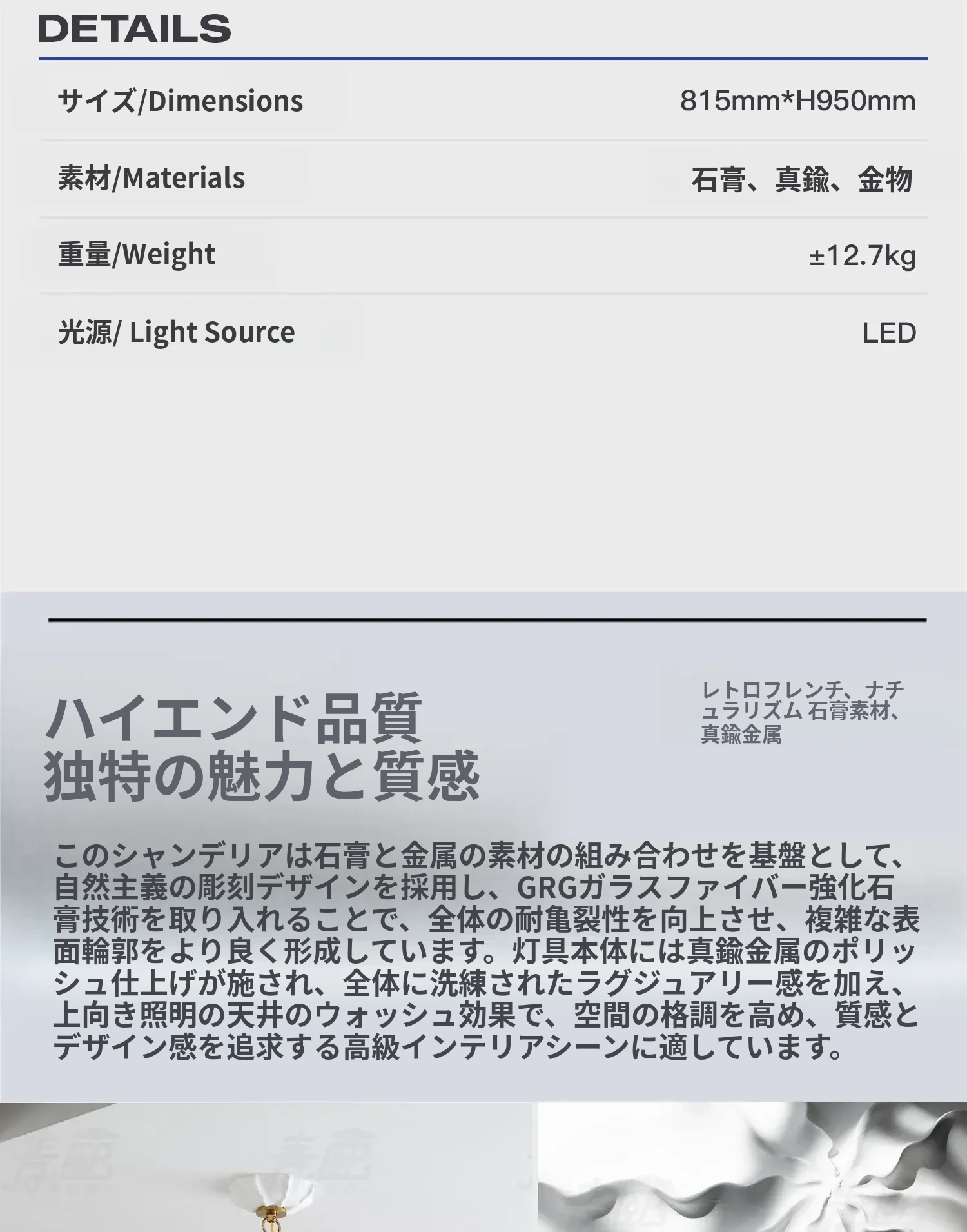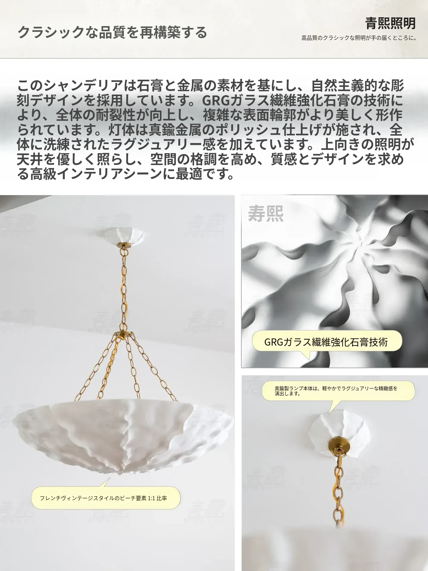 フランス風レトロな侘び寂びデザイン、ヴィンテージ風の石膏シャンデリア。寝室やアメリカンスタイルのリビング、ダイニングにぴったり。別荘に最適なクラシックな雰囲気を演出します。高級感あふれる老舗のスタイルで、上質な空間を作り出します。