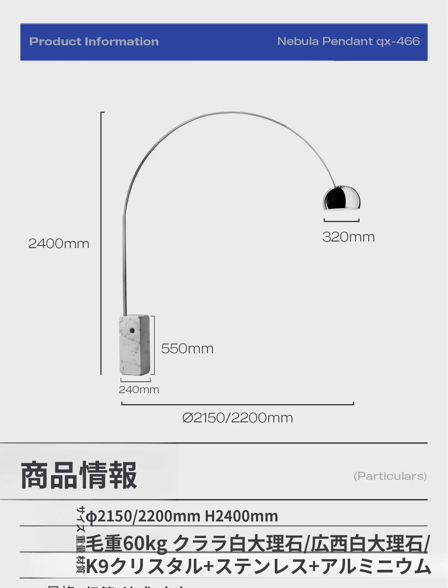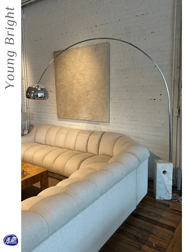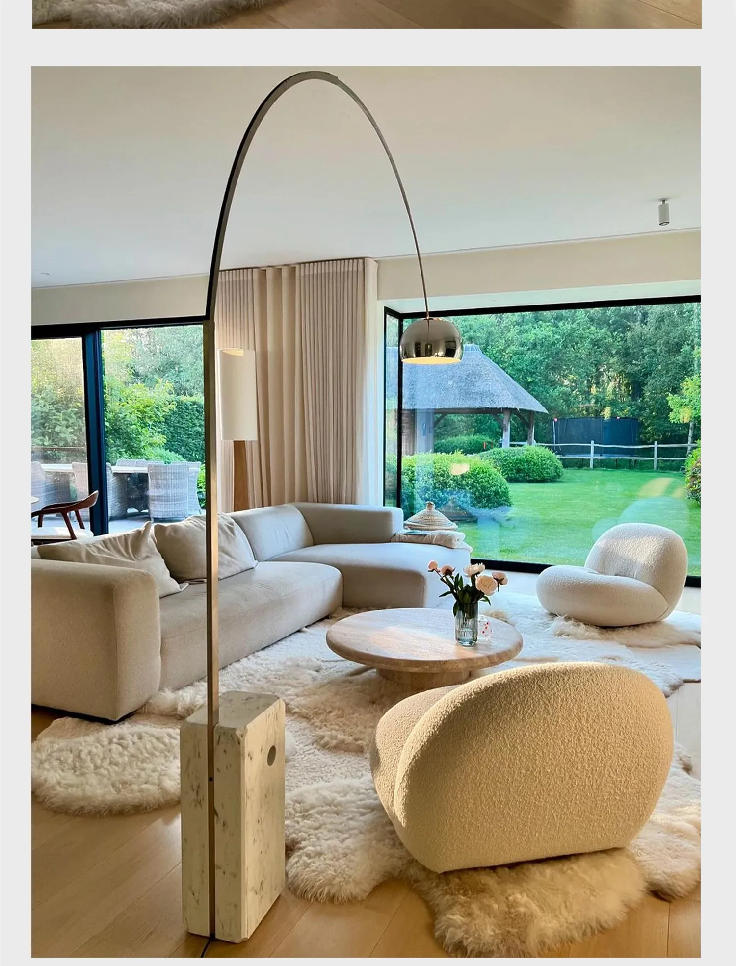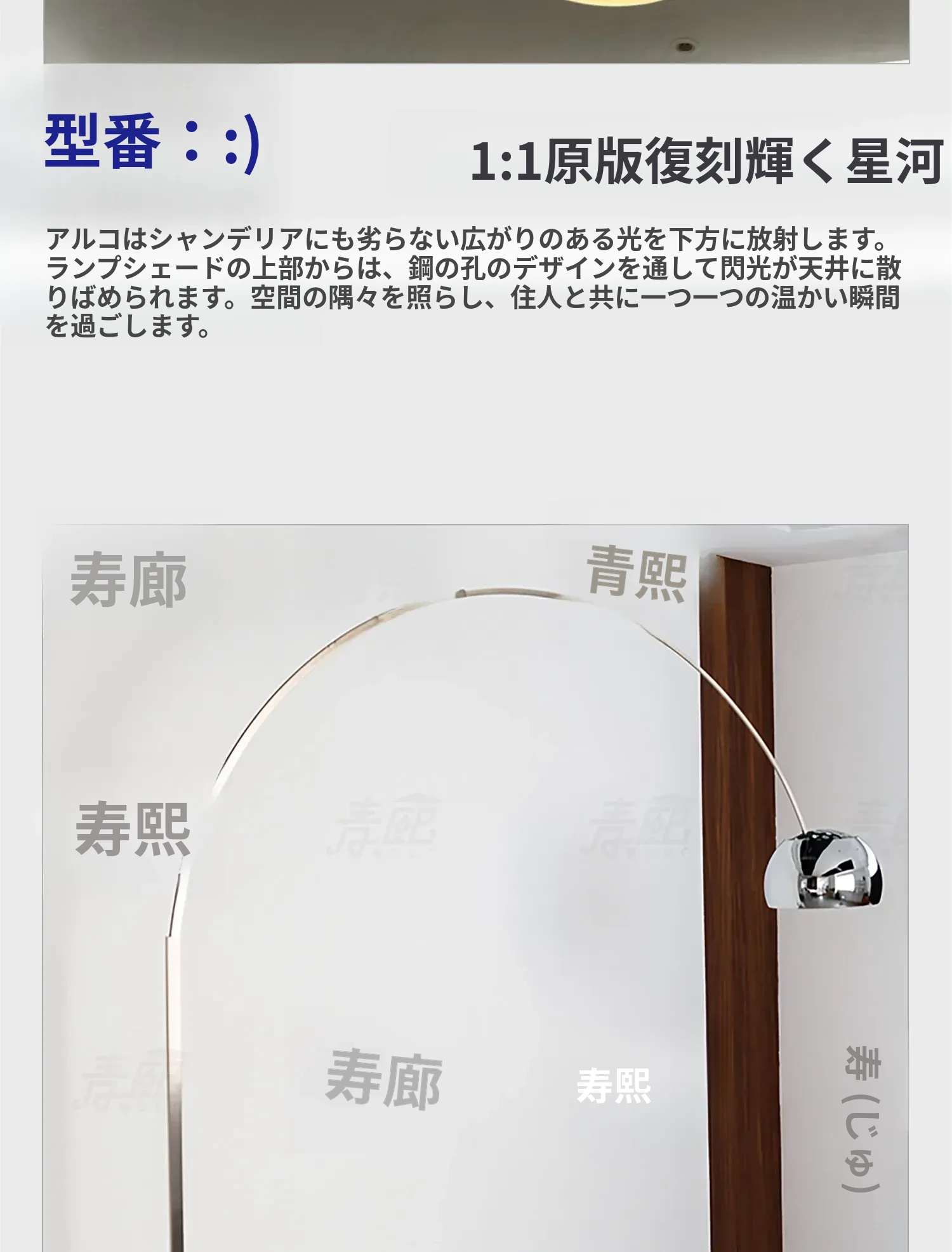 イタリア製アーコフロアランプ - 大理石製フィッシングランプ、軽やかなフレンチデザインで別荘にもぴったり!シンプルでスタイリッシュなリビングのソファ横に最適な照明です。