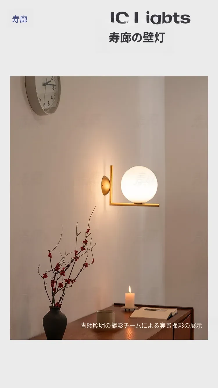 イタリアンデザインのIC全銅ガラス壁灯 - 寝室やベッドサイド、玄関、廊下にぴったりのエレガントな照明器具。洗練されたスタイルで、あなたの空間を一層引き立てます!