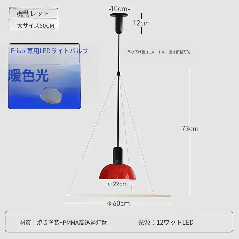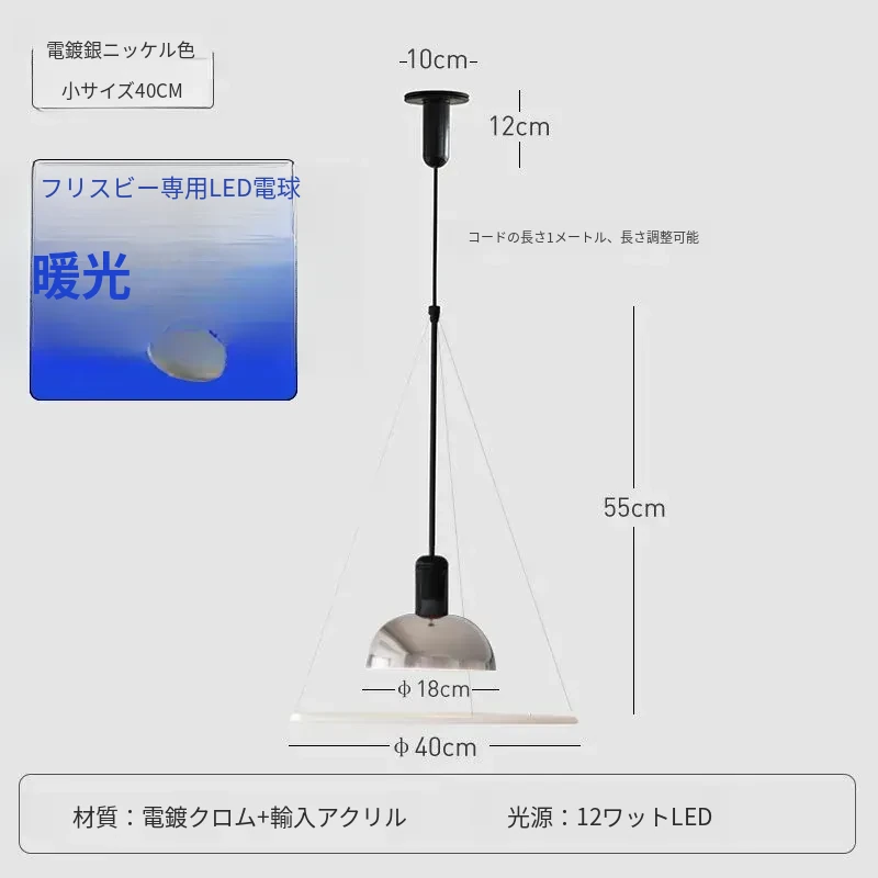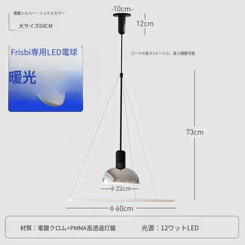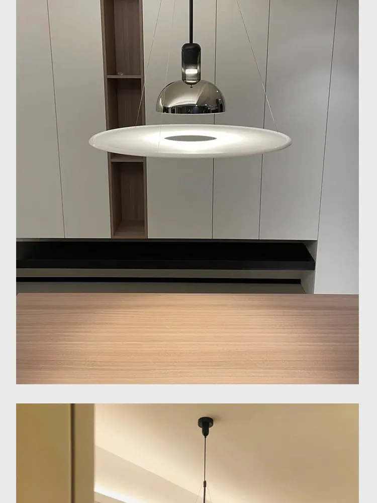 イタリア製フリスビー型レストラン用吊り下げランプ - シンプルでモダンなデザイン、書斎やダイニングテーブルに最適なミニマリストデザイナーライト!おしゃれで機能的な空間を演出します。