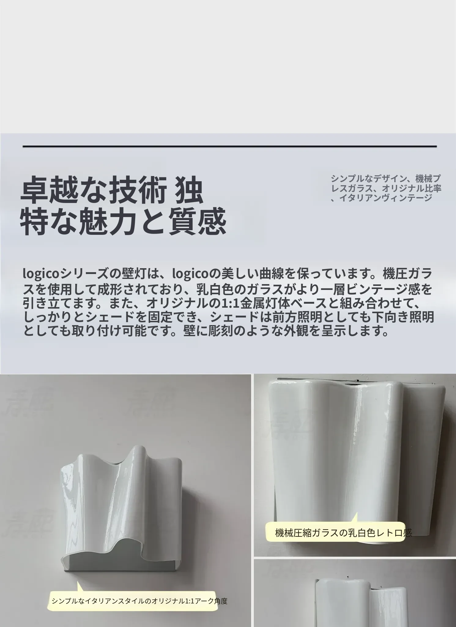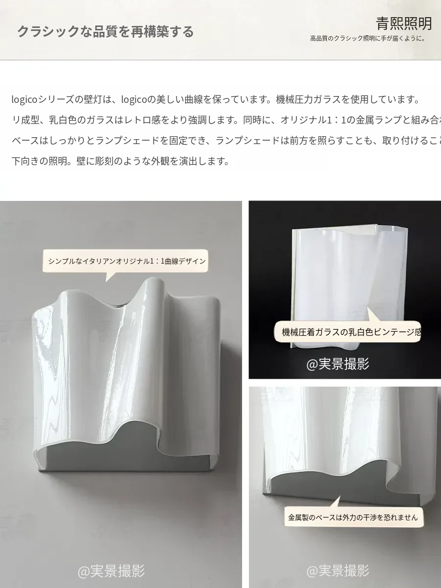 イタリア製Logico中古雲ガラス壁灯 - ヴィンテージデザインで寝室やリビングのアクセントに最適!背景壁を華やかに彩ります。おしゃれな空間作りにぴったりなアイテムです!