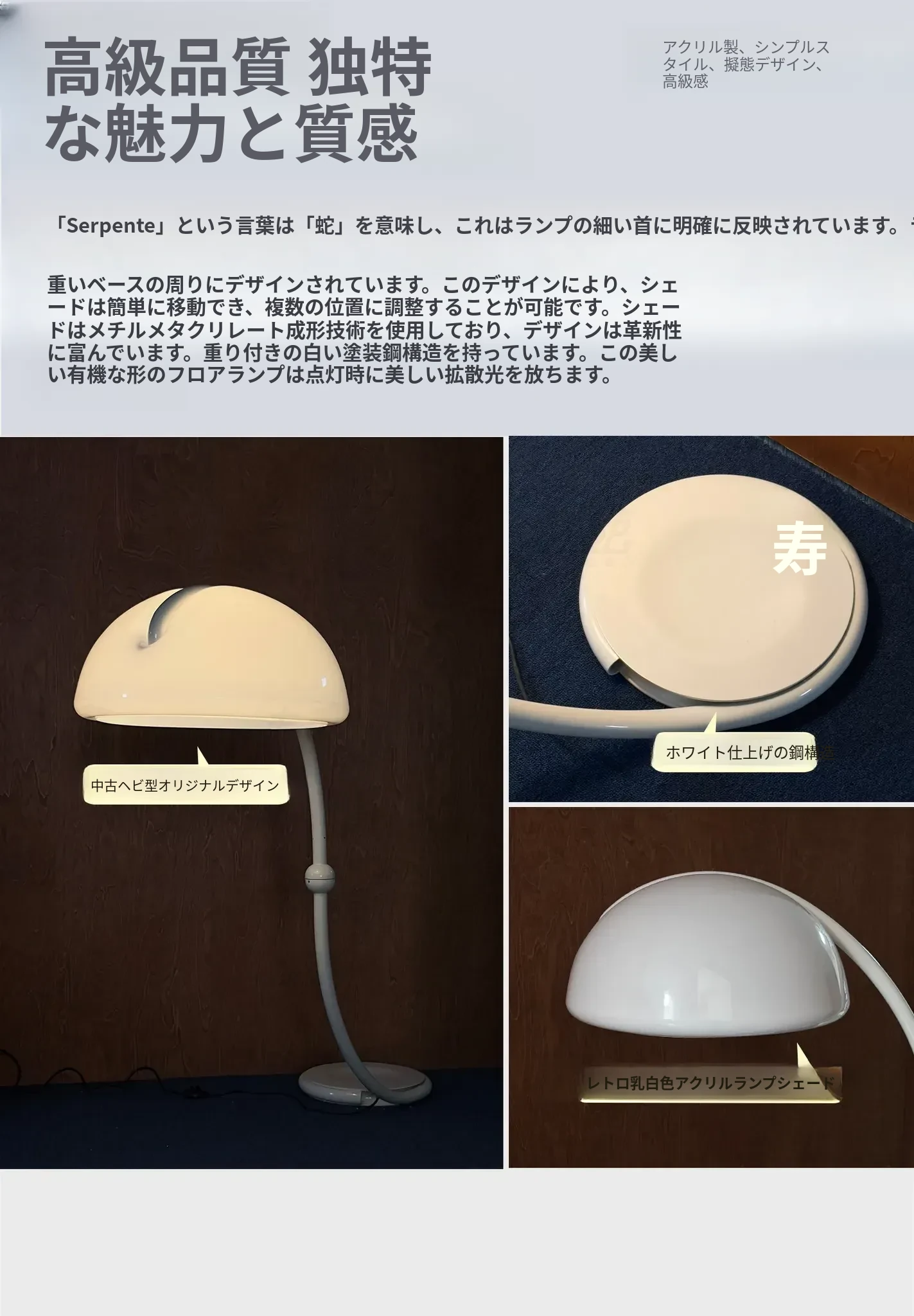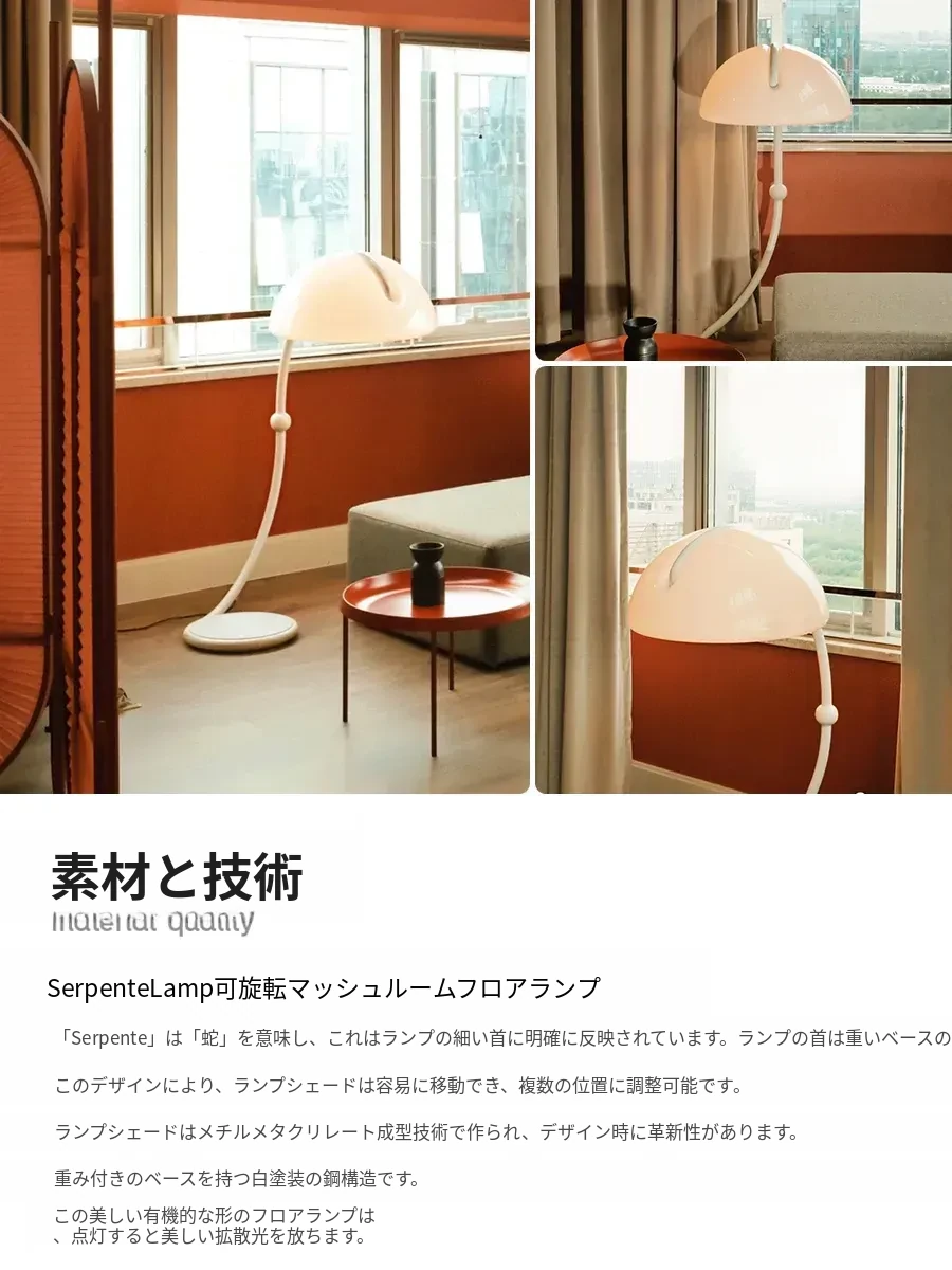 イタリアのマルティネッリ・ルーチェ Serpente 中古 蛇形デザインのデザイナーリビングソファ用フロアランプ - 洗練されたスタイルで空間を演出する、魅力的なインテリアアイテム!