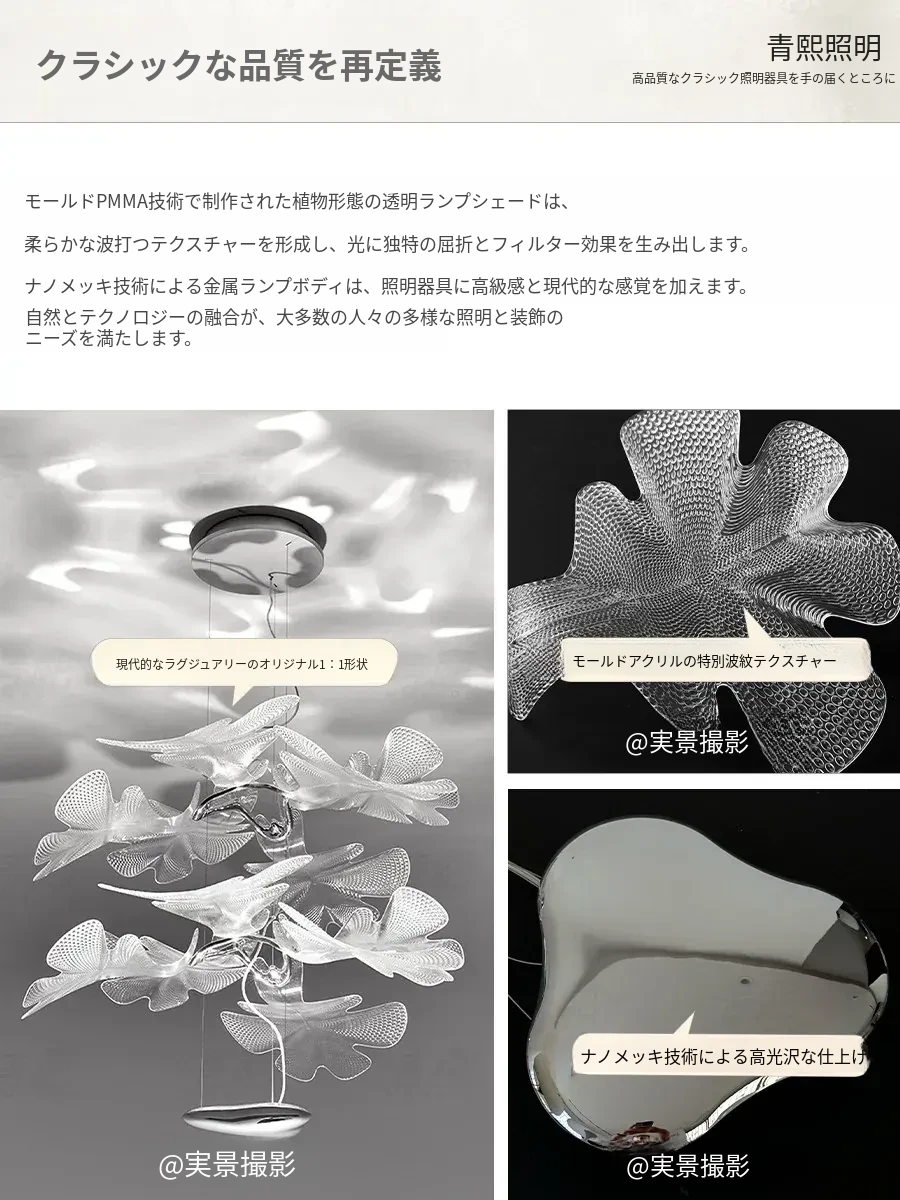 イタリアンモダンミニマリスト フレンチスタイルのリビング用浮遊花びらシャンデリア ダイニング・ベッドルーム・書斎に最適なデザイナー照明器具
