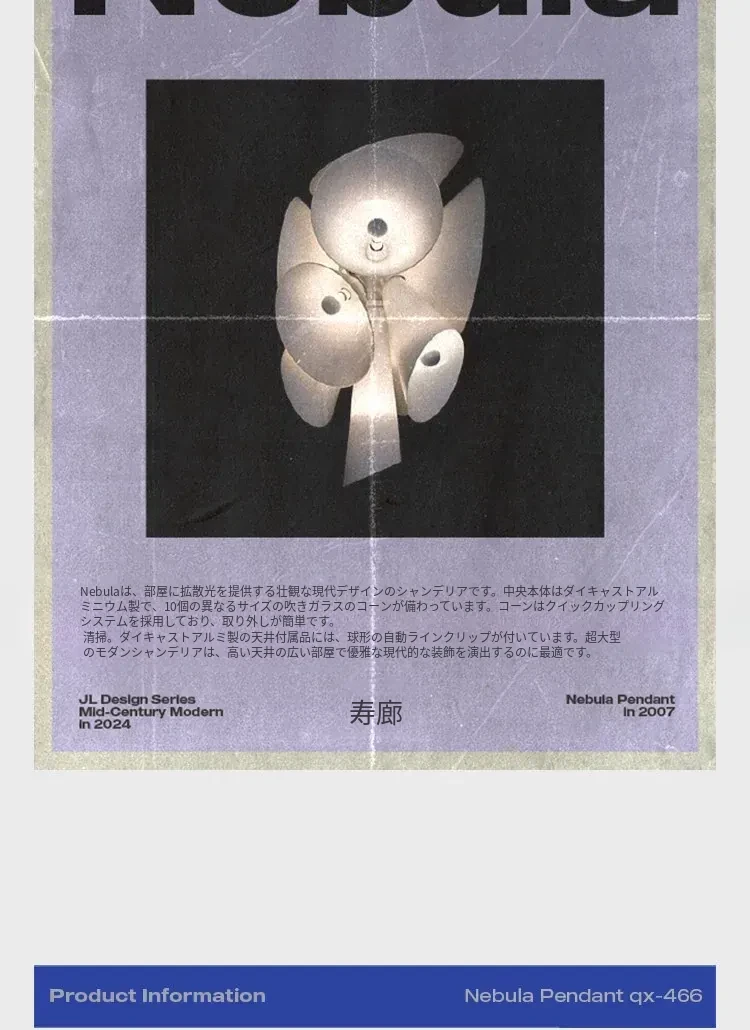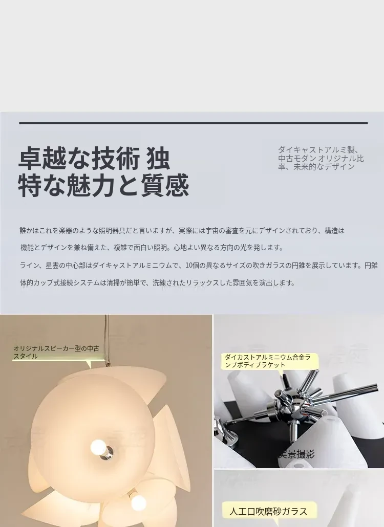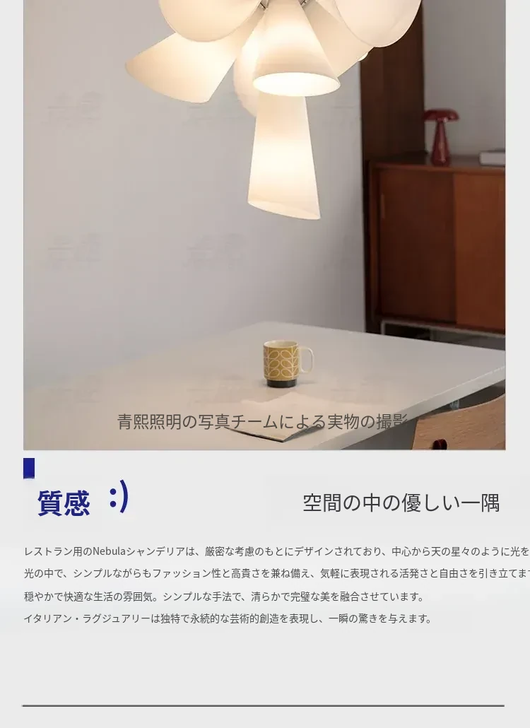 イタリア製ネビュラシャンデリア - フランス・北欧デザインの洗練された空間演出、リビング・ダイニング・階段に最適なヴィンテージスタイルの主照明器具。おしゃれで温かみのある雰囲気をお楽しみください!
