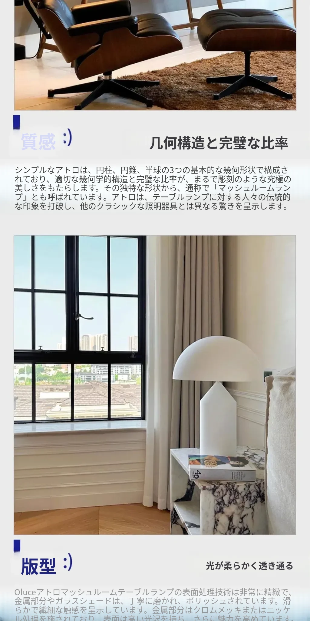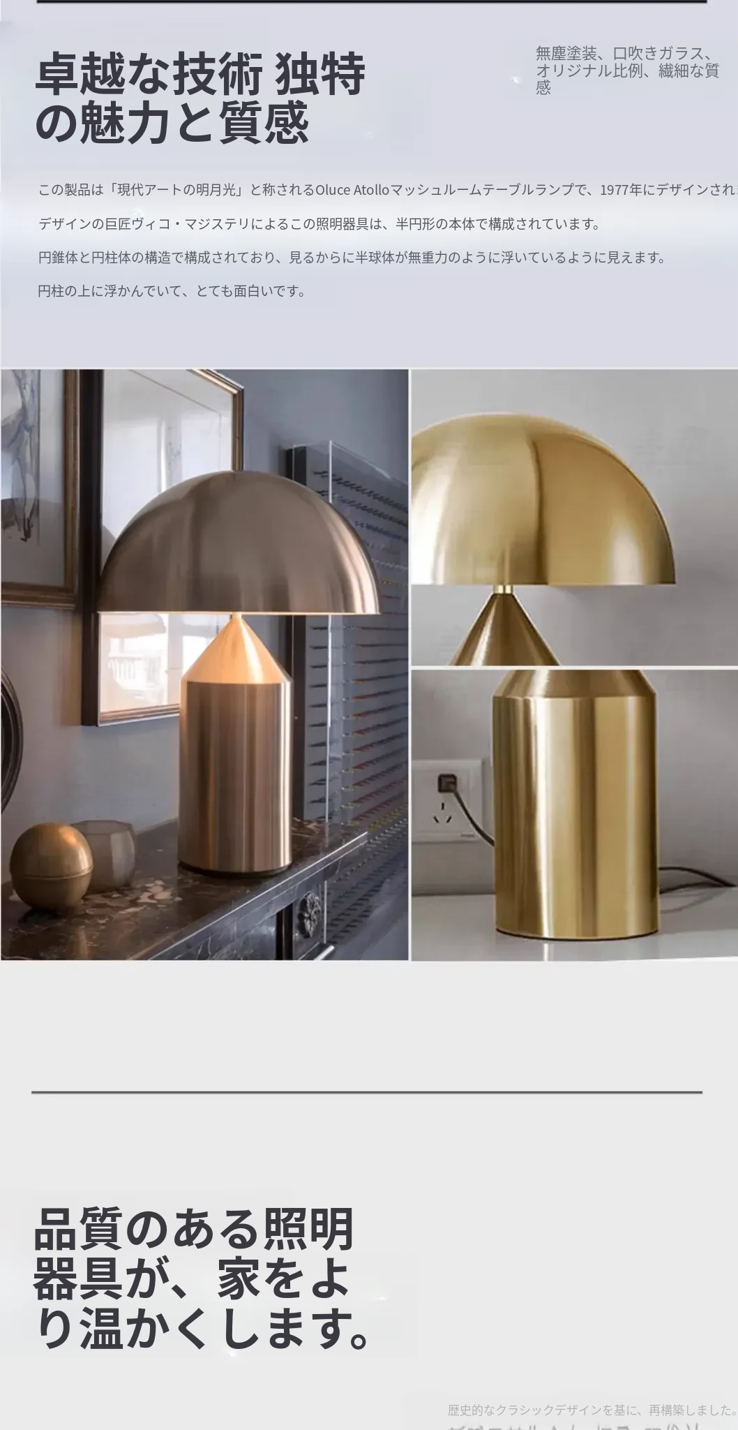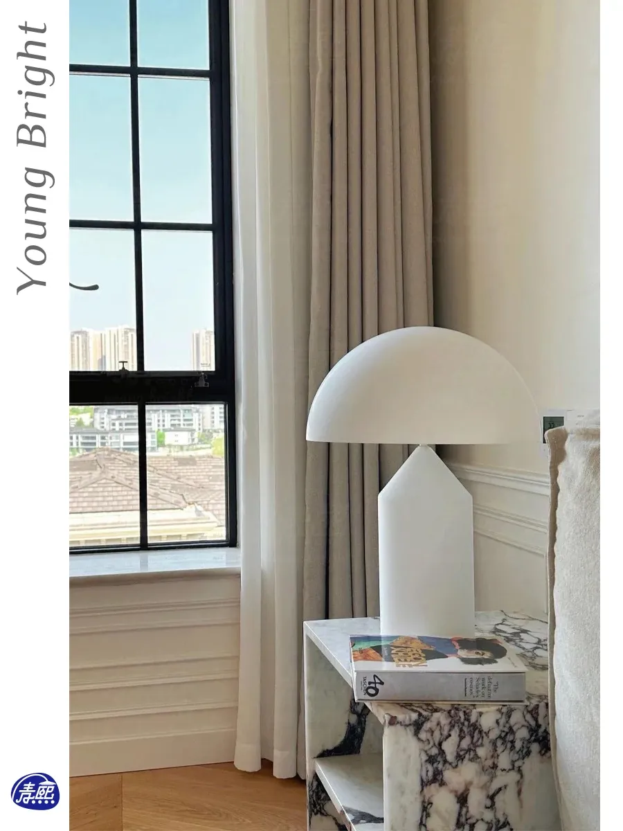 イタリアのOLUCE ATOLLOマッシュルームテーブルランプ - デザイナーズスタイルで、リビングルームやベッドルームにぴったりの洗練された雰囲気を演出します。おしゃれなサンプルルームにも最適な照明です。