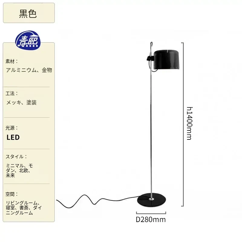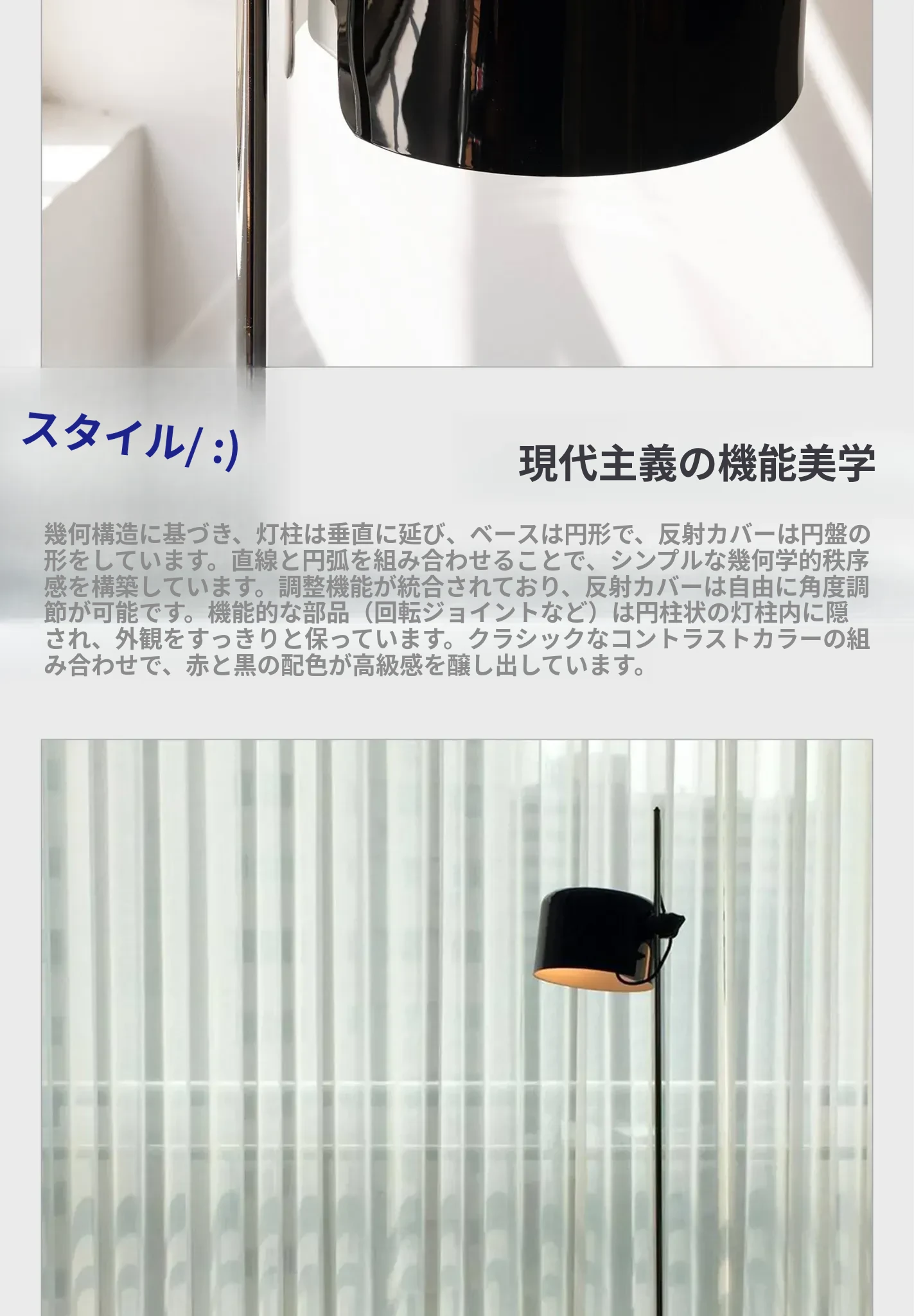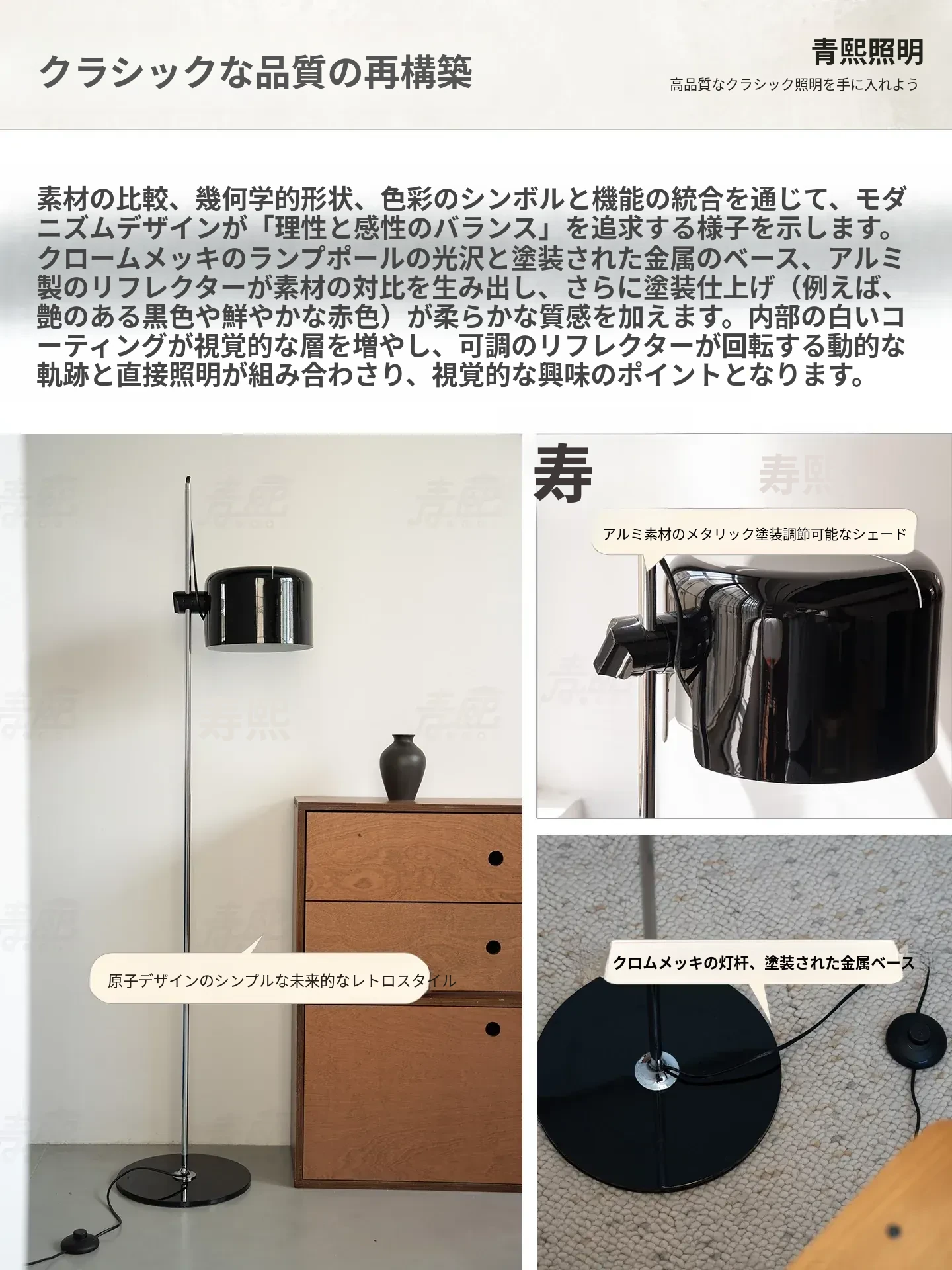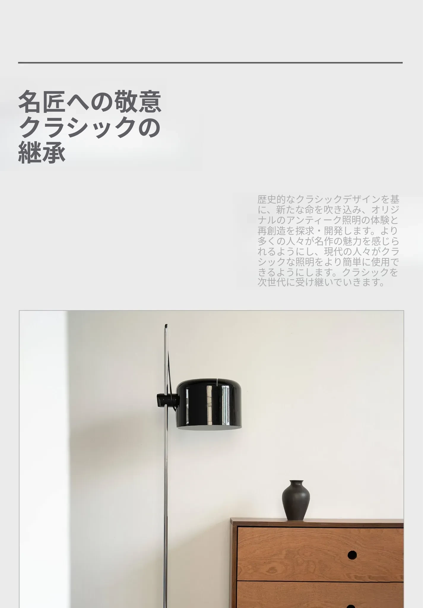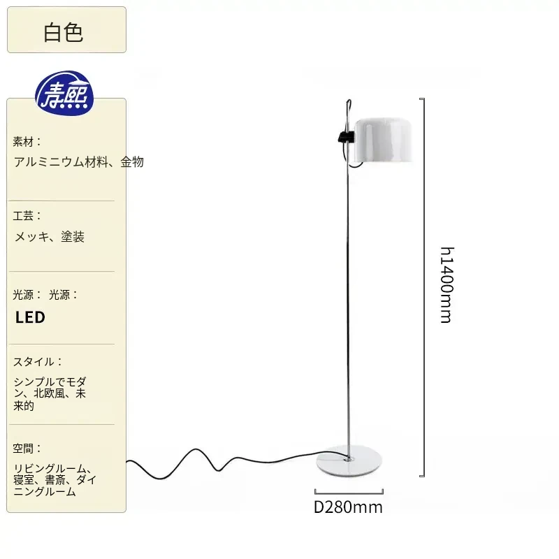 イタリア製オルーチェ クーペフロアランプ - シンプルでモダンなデザイン、ミッドセンチュリー風のリビング、寝室、書斎に最適な読書灯。洗練された雰囲気を演出し、心地よい空間を提供します。
