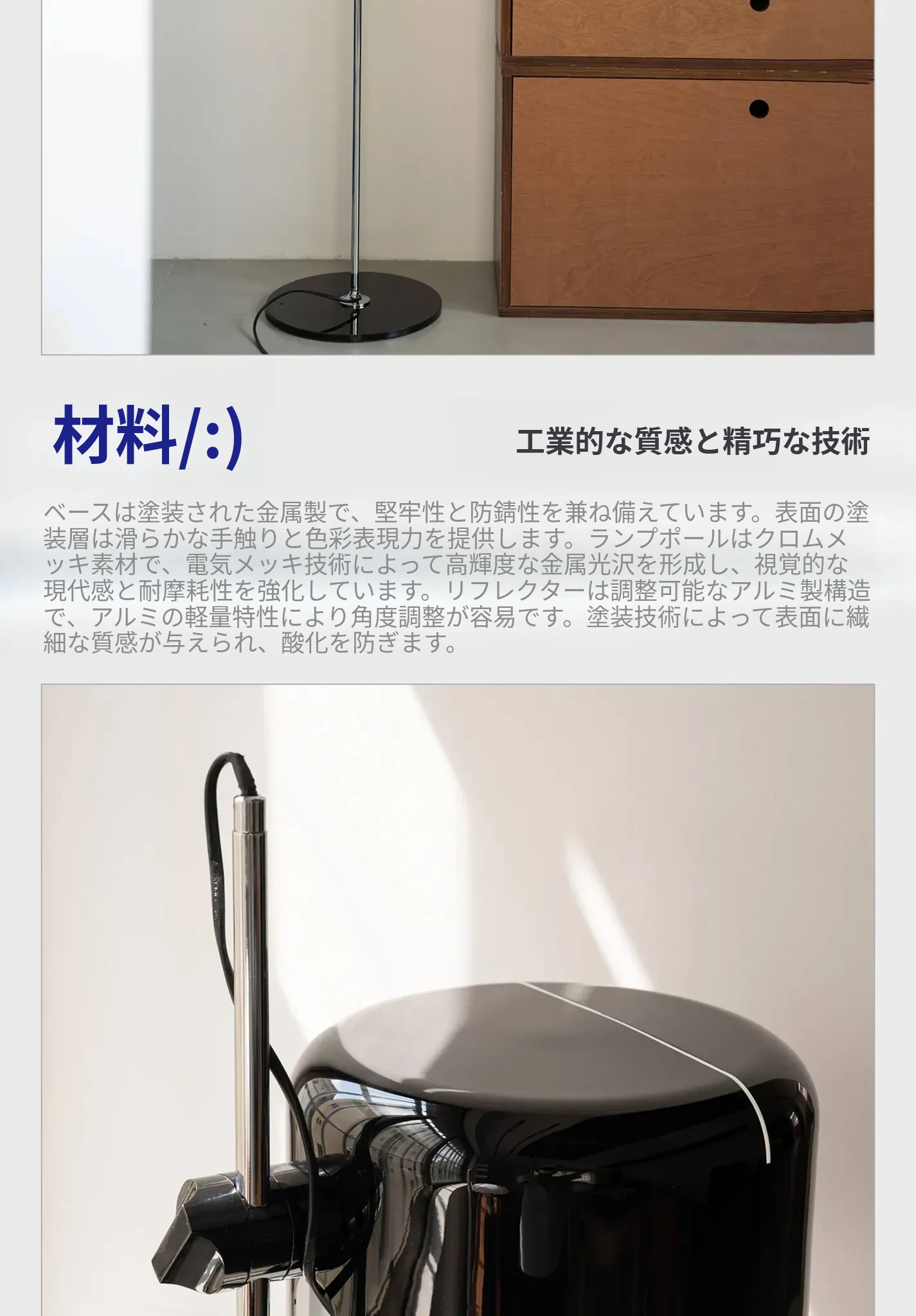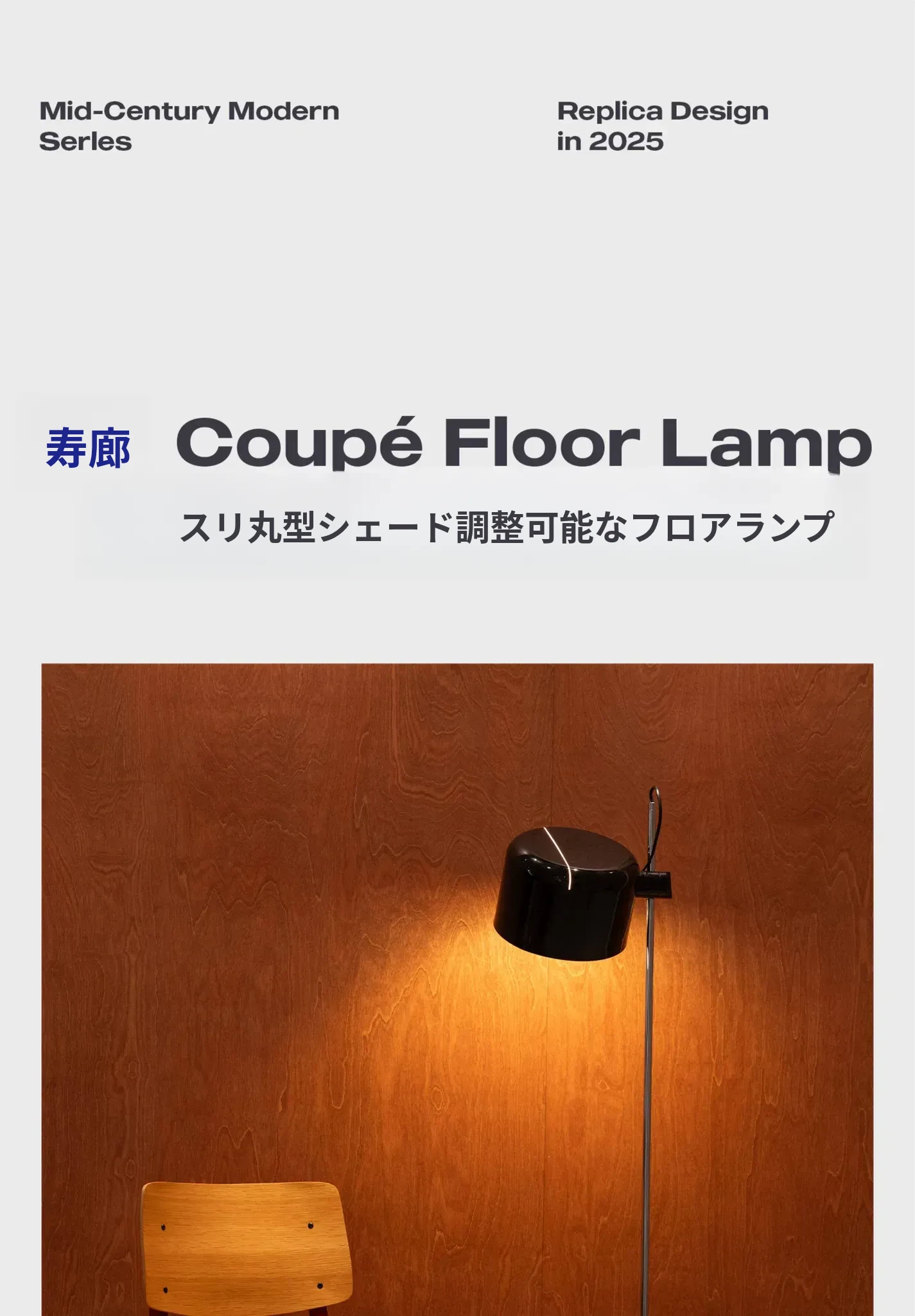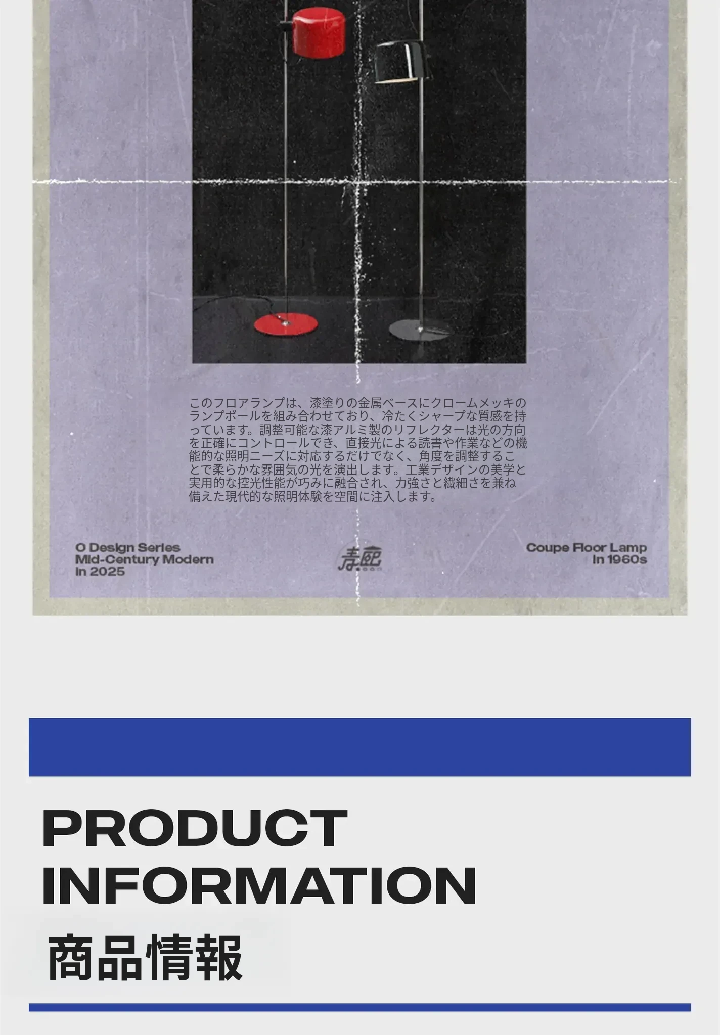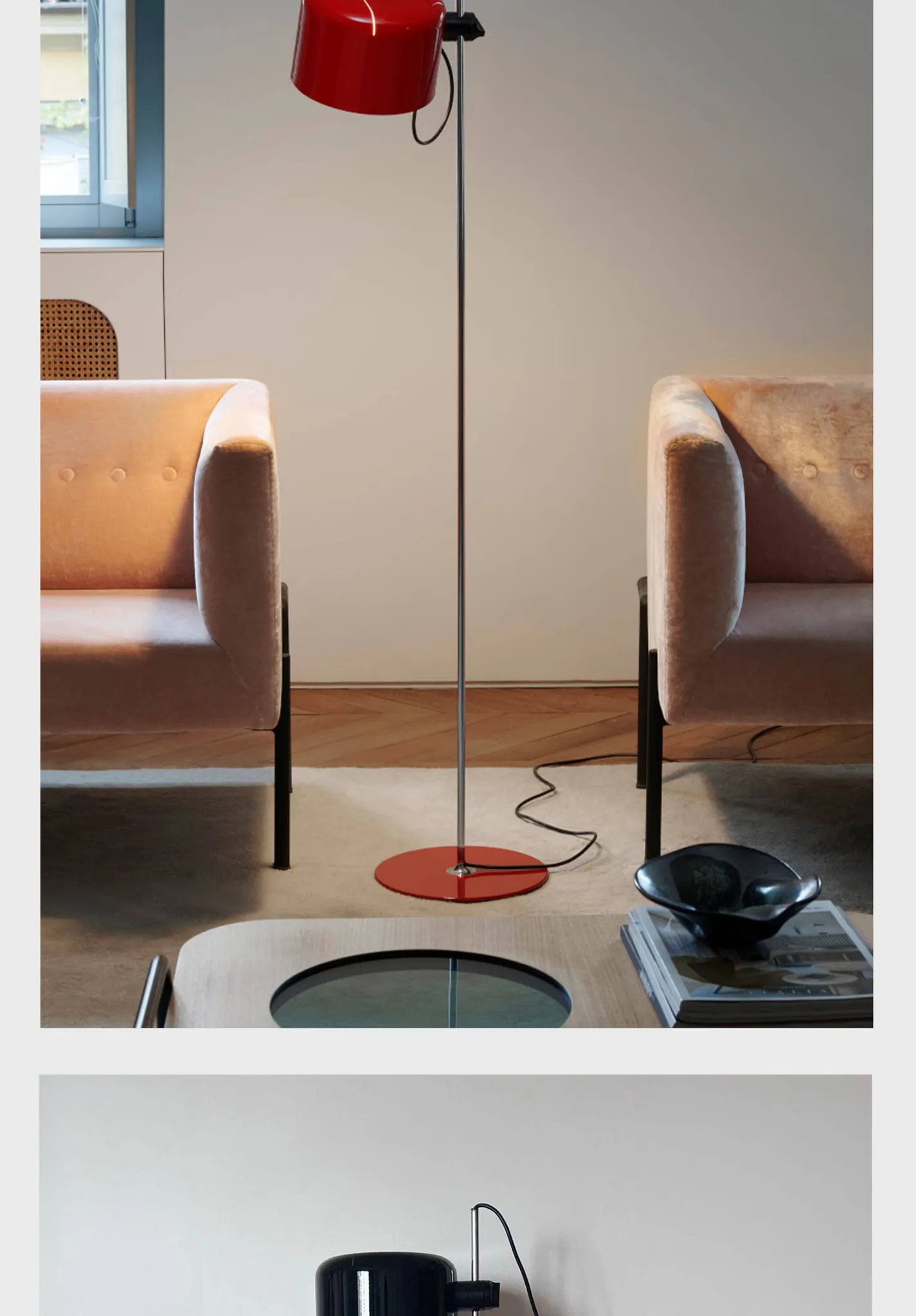 イタリア製オルーチェ クーペフロアランプ - シンプルでモダンなデザイン、ミッドセンチュリー風のリビング、寝室、書斎に最適な読書灯。洗練された雰囲気を演出し、心地よい空間を提供します。