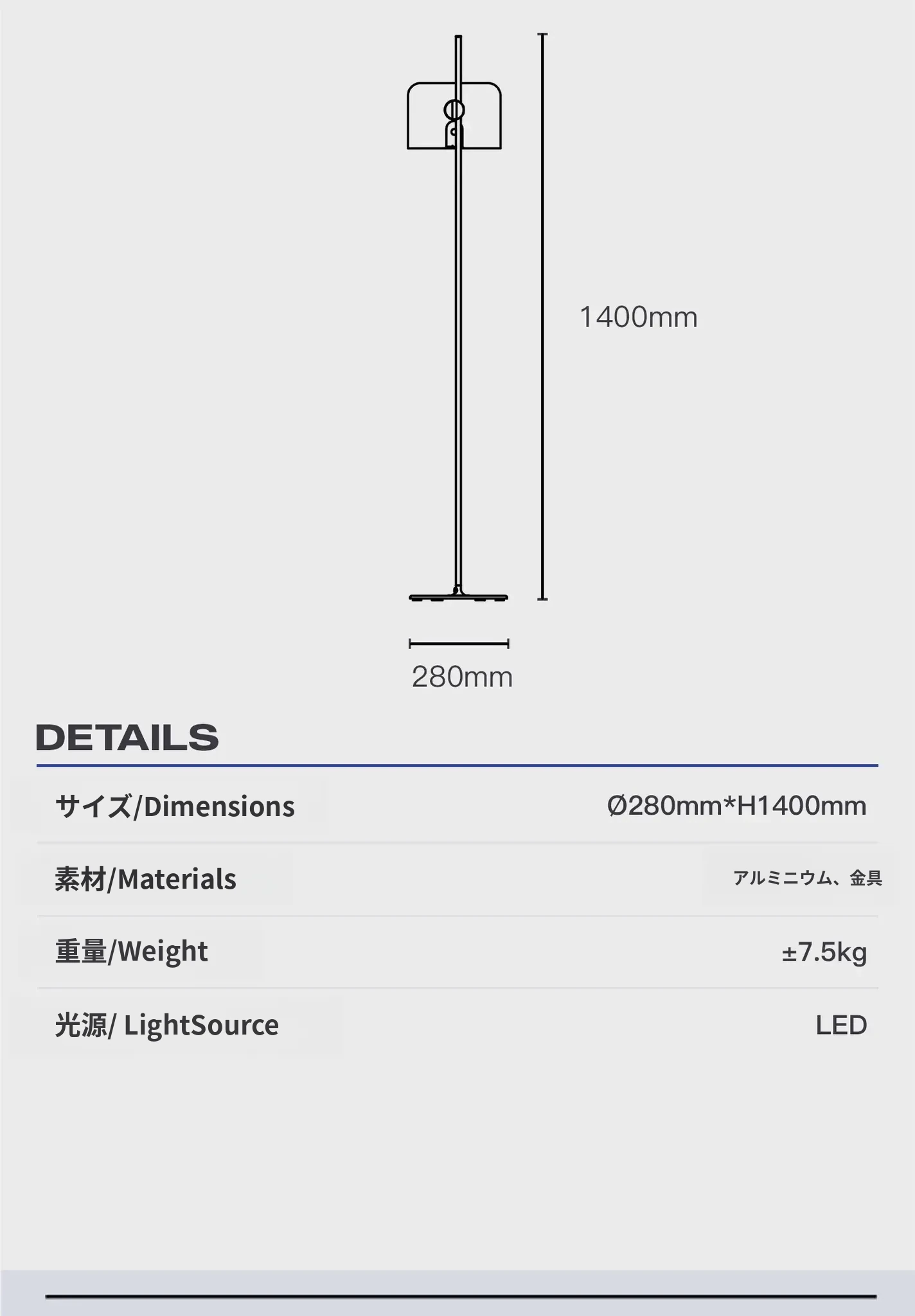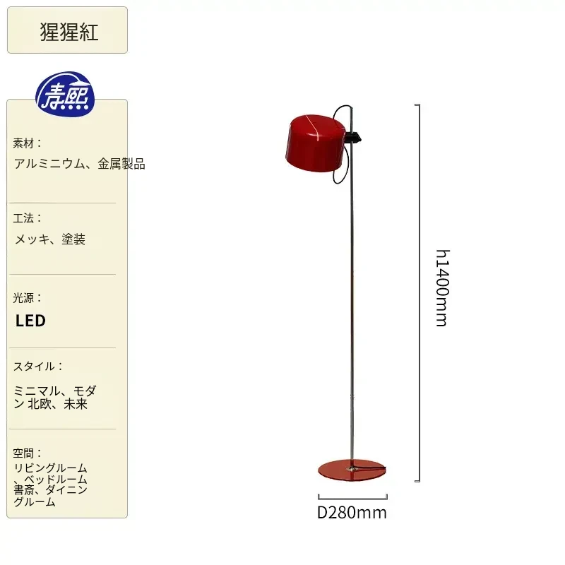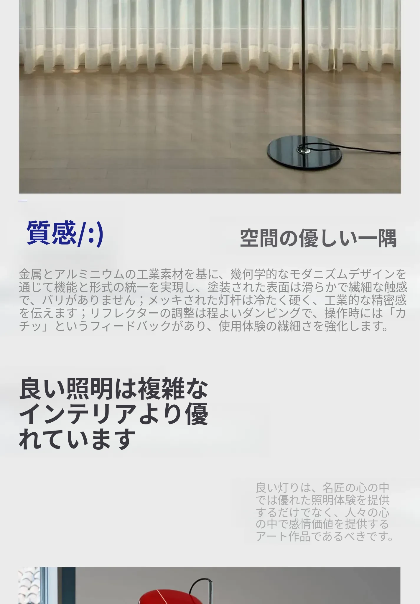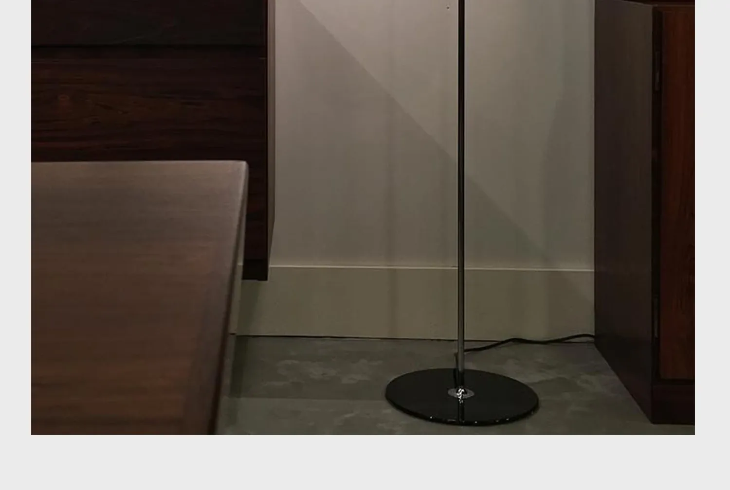 イタリア製オルーチェ クーペフロアランプ - シンプルでモダンなデザイン、ミッドセンチュリー風のリビング、寝室、書斎に最適な読書灯。洗練された雰囲気を演出し、心地よい空間を提供します。