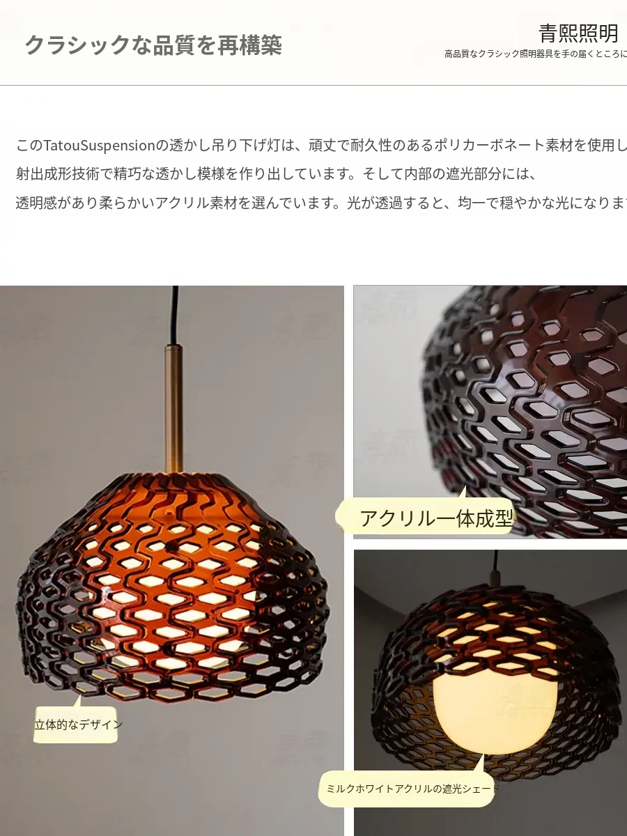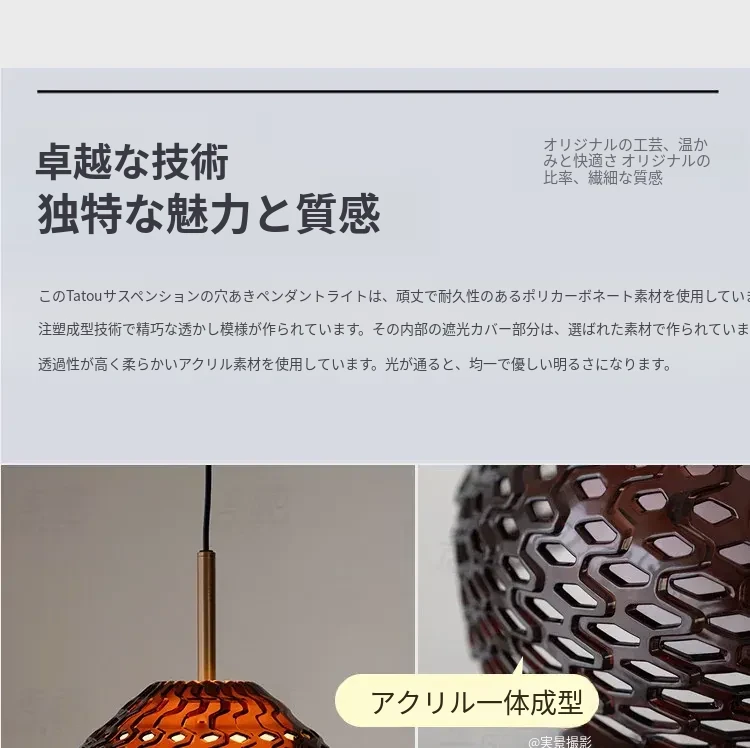 イタリア製Tatou S2レストラン用ペンダントライト - デザイナーズモダン、寝室や書斎、別荘のバーにも最適な美しいタワー型透かしデザイン!高級感あふれる空間を演出します。