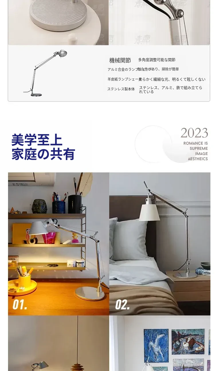 イタリア製トロメオアーム伸縮デザイン!おしゃれなリビングや書斎にぴったりなヴィンテージスタイルの雰囲気漂う読書用テーブルランプ。心地よい光で、素敵な時間を演出します。