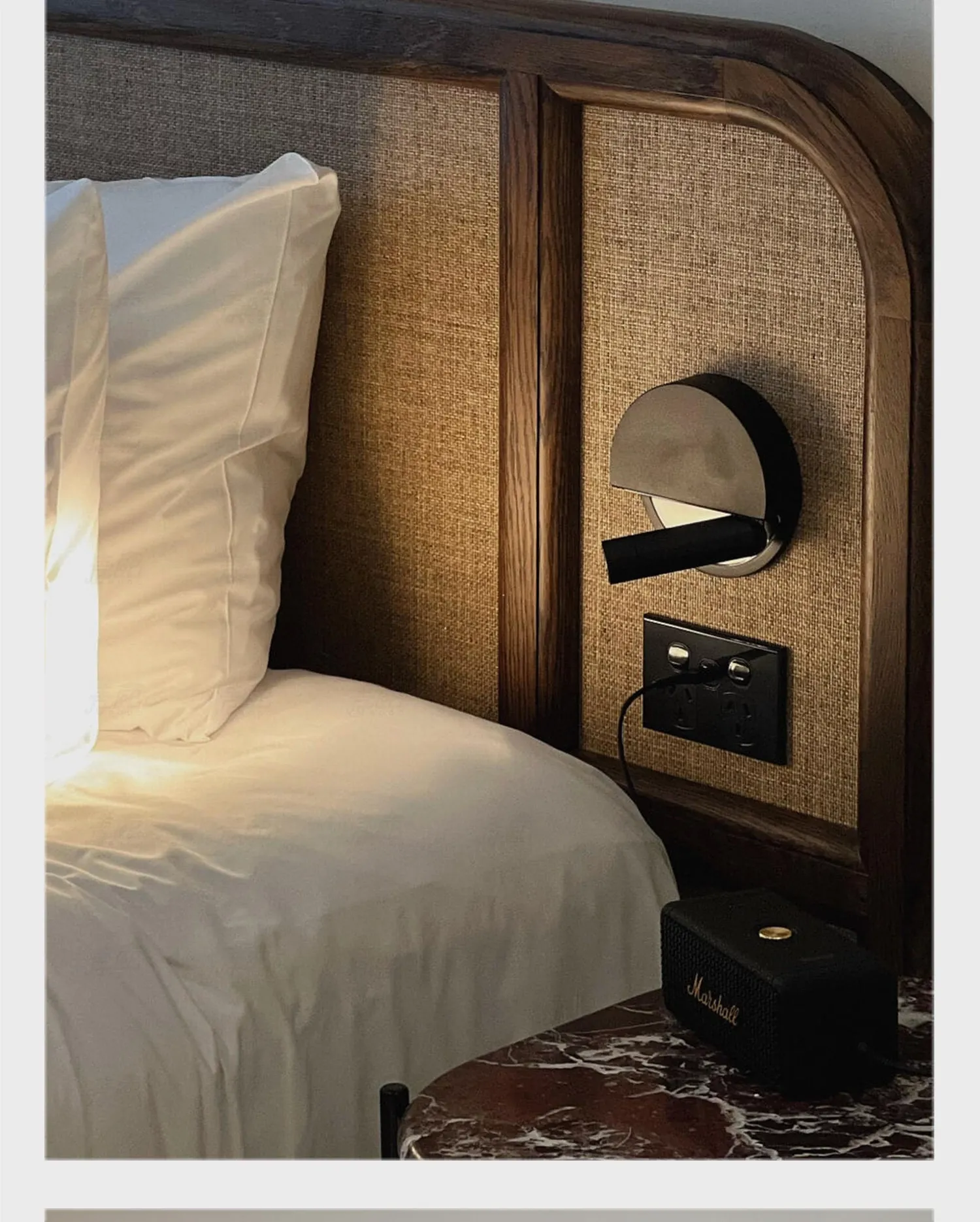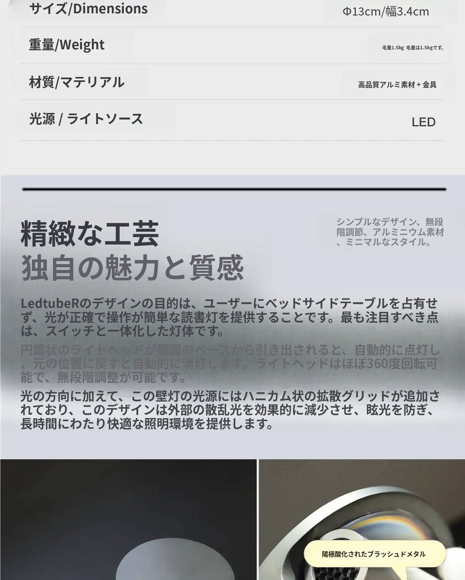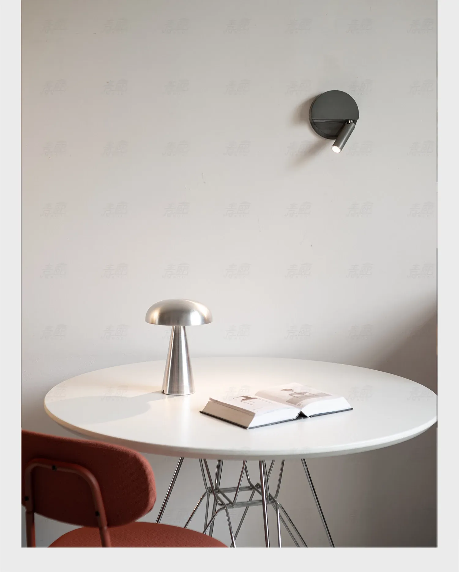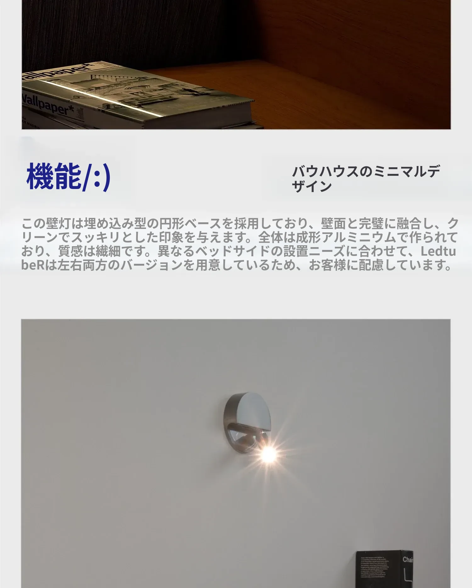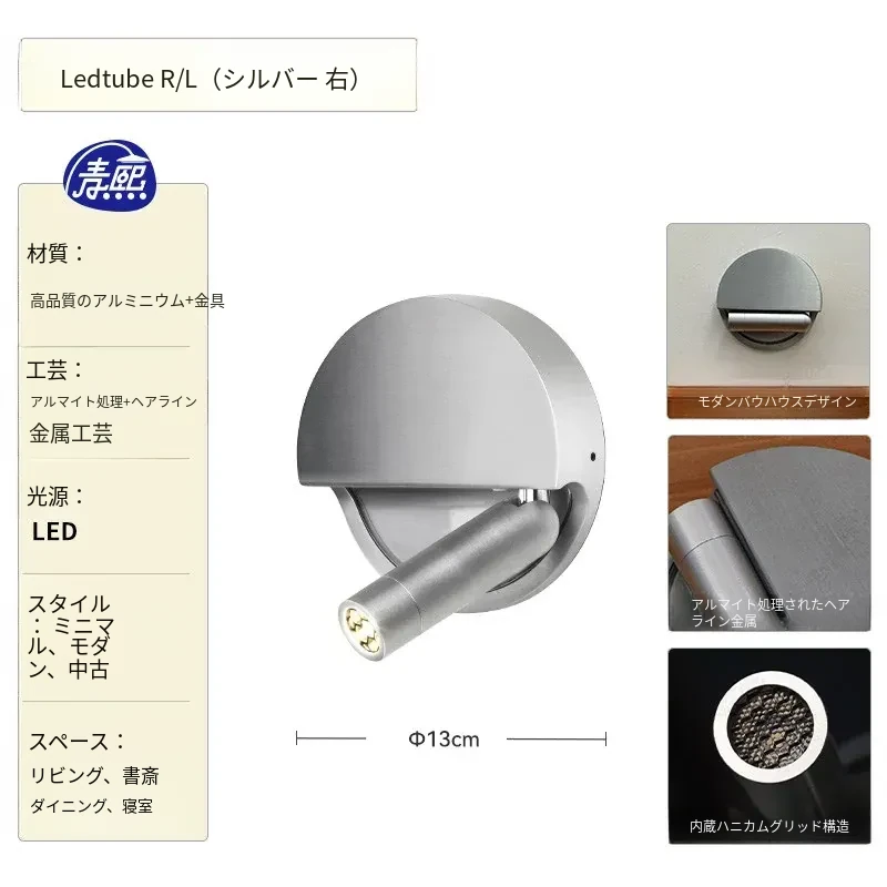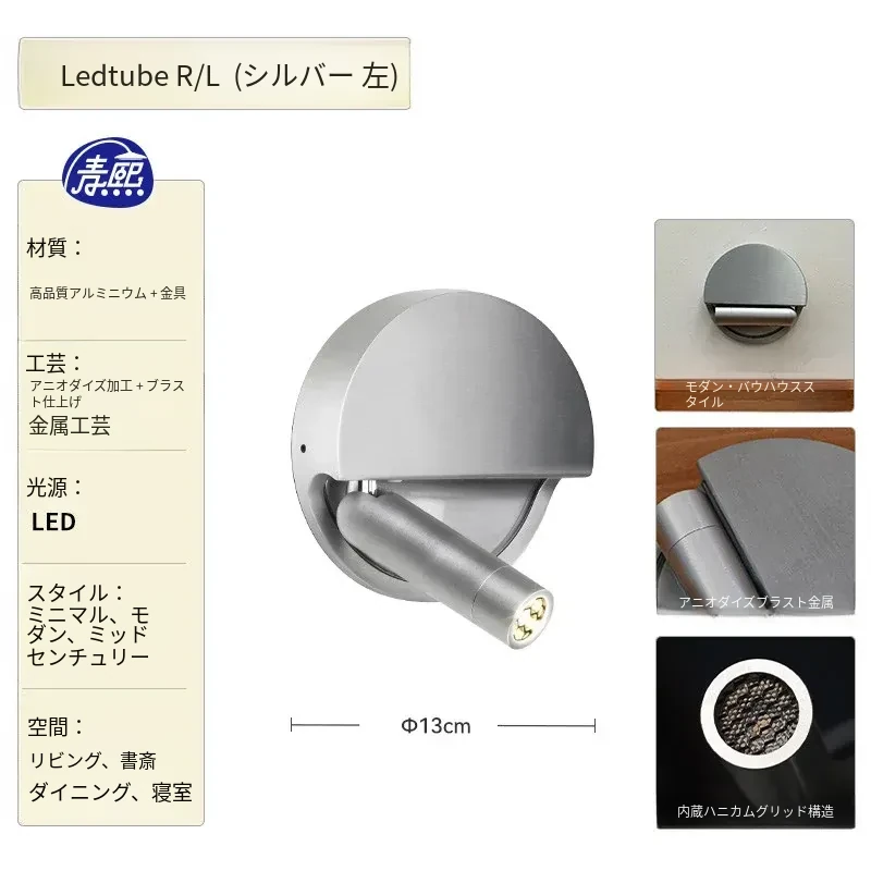 スペインMarsetのLedtube R壁灯 - シンプルでモダンなデザイン、リビングや寝室に最適な調節可能なベッドサイドランプ。心地よい光で読書を楽しむ空間を演出します。
