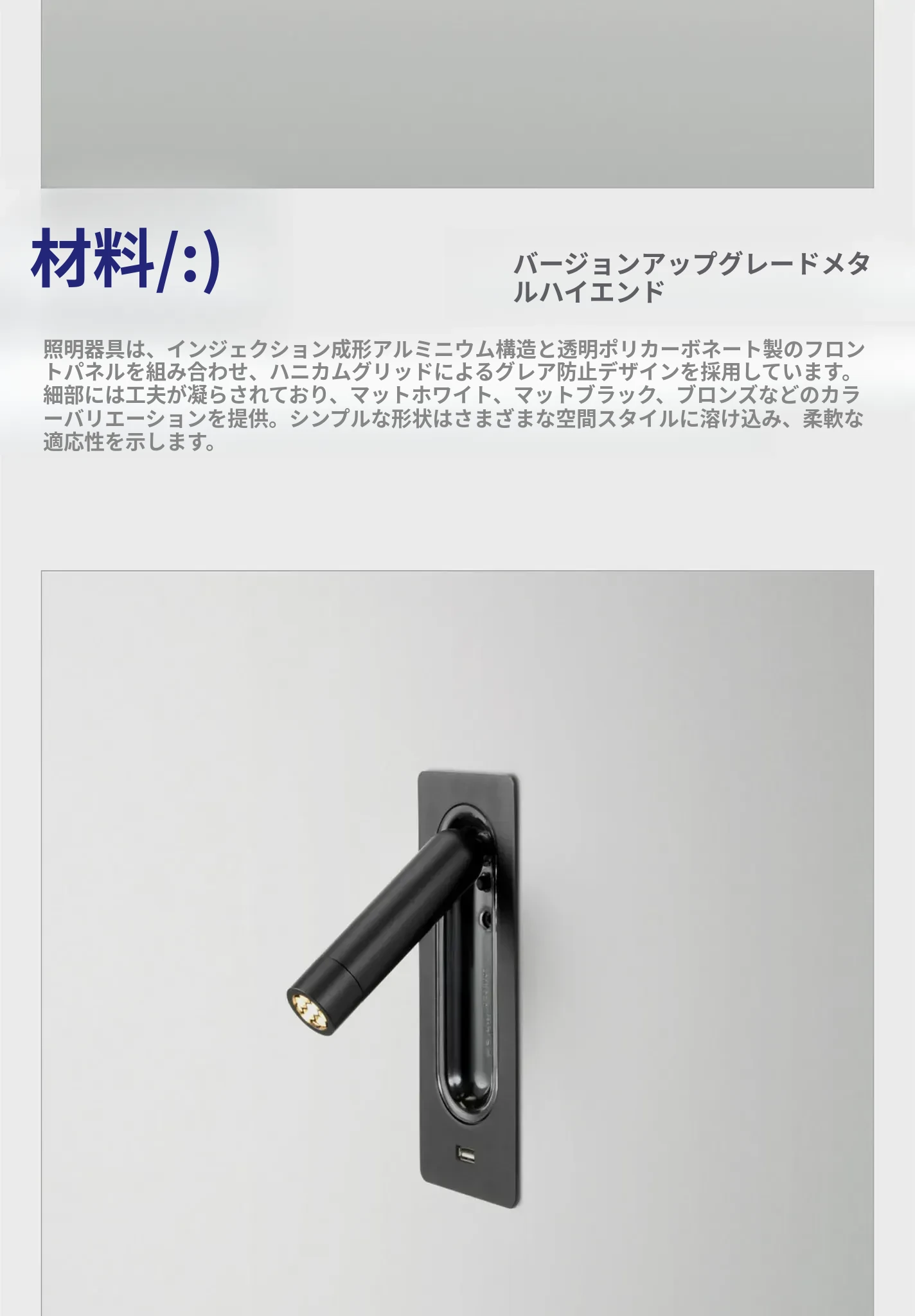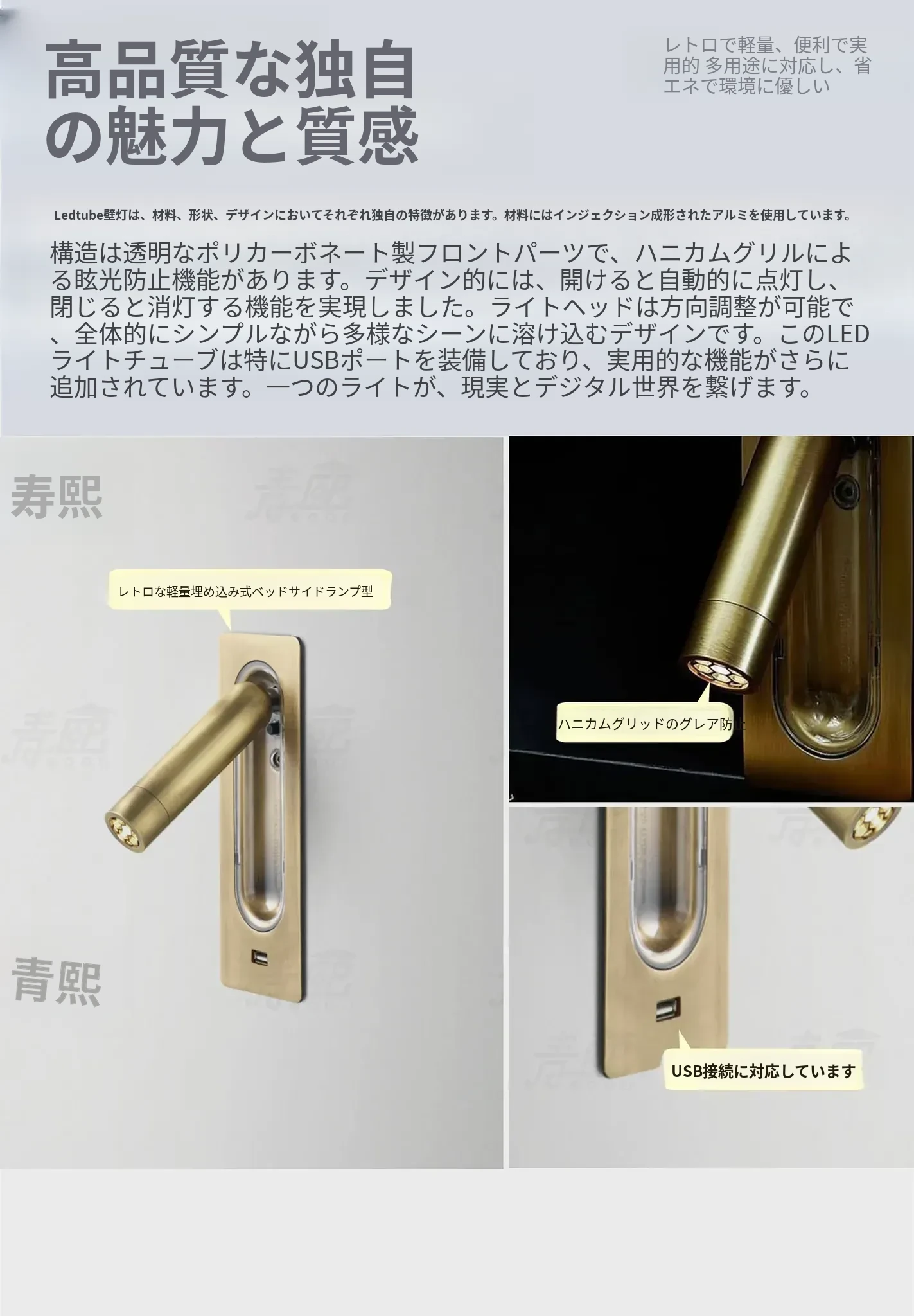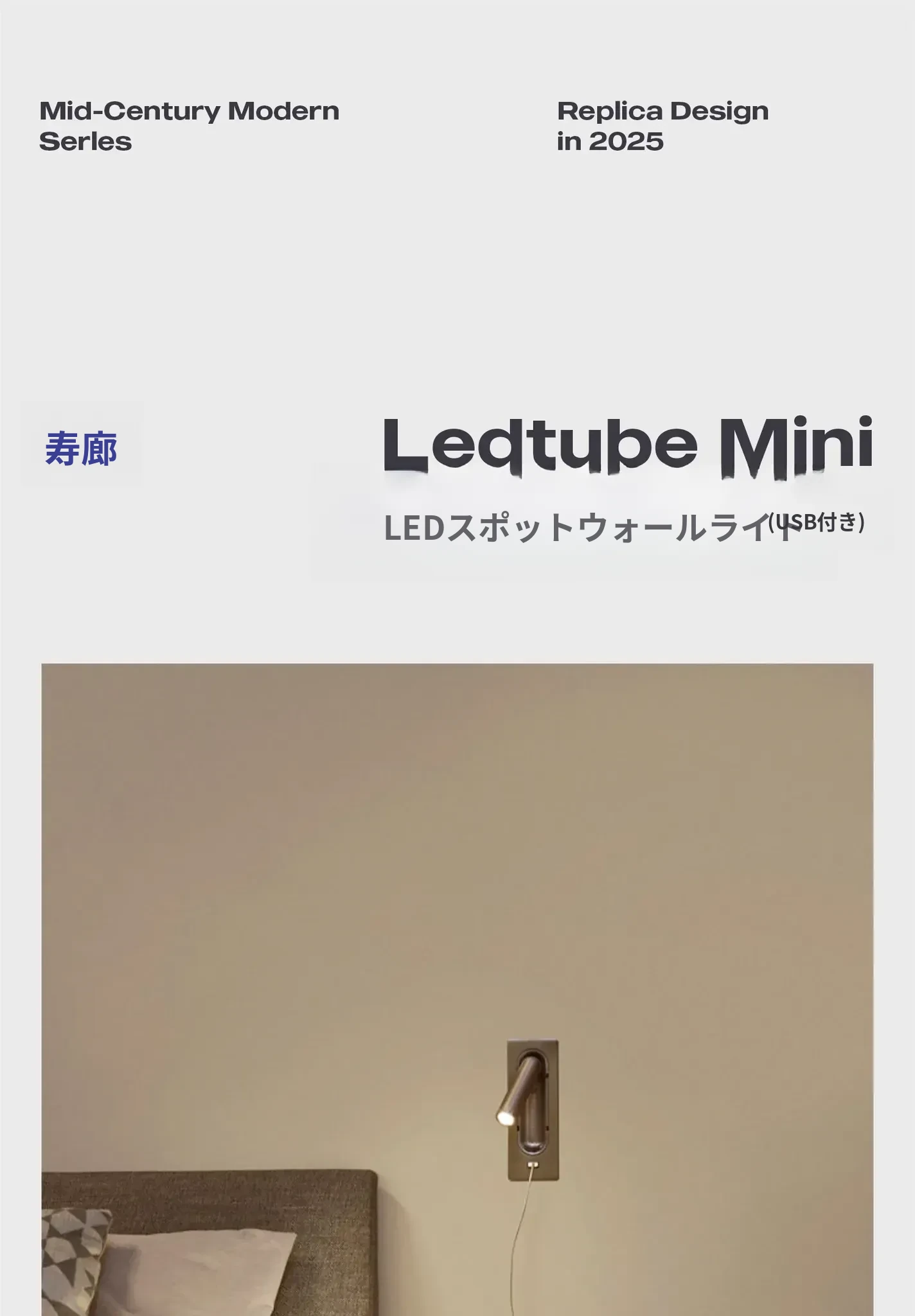 スペインのモダンデザイン「Marset Ledtube」デザイナーベッドサイドライト - 高級感あふれるシンプルで調整可能な埋め込み式ウォールランプで、あなたの寝室をスタイリッシュに演出します。
