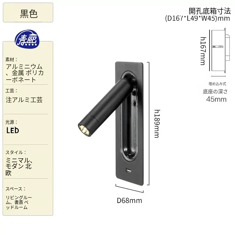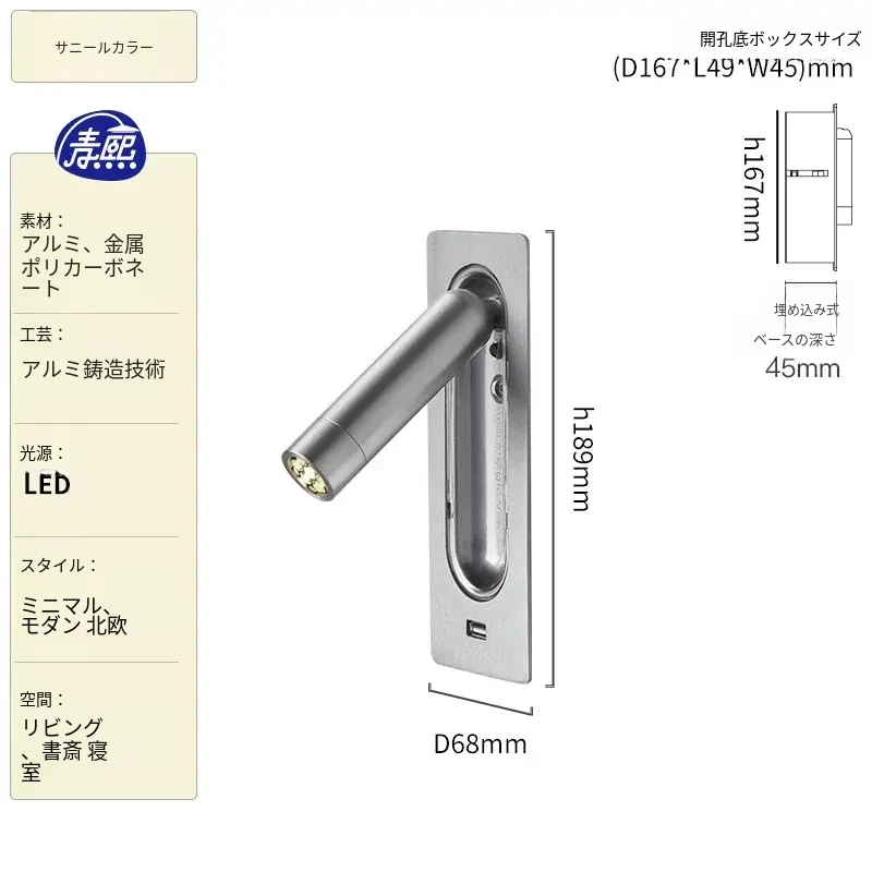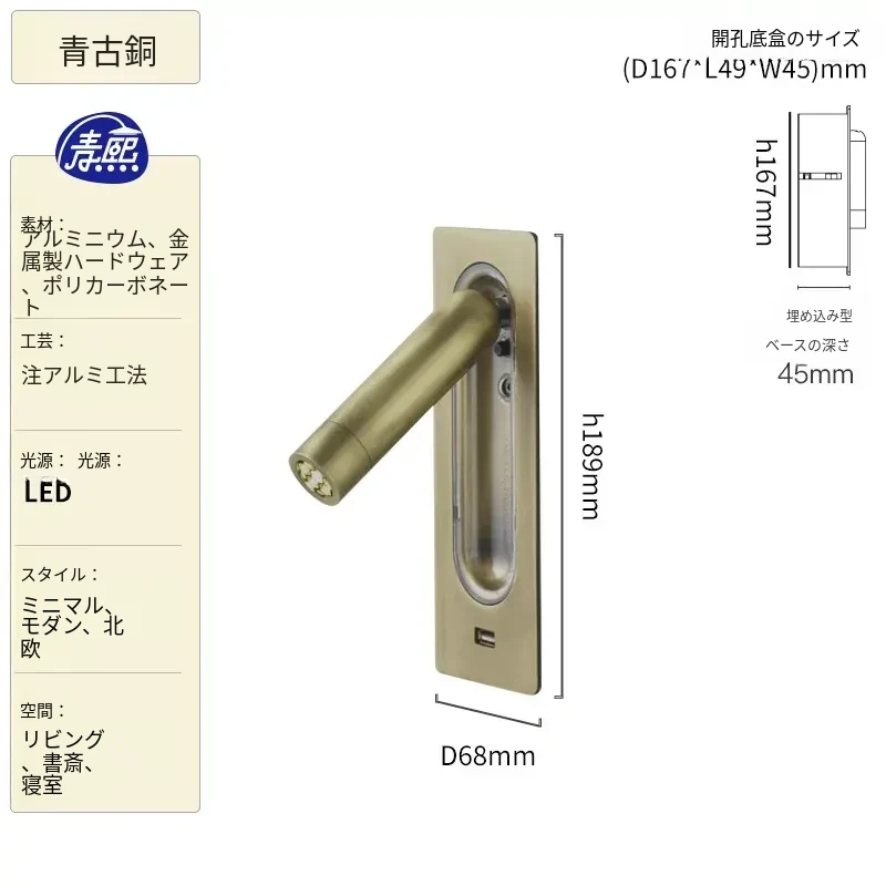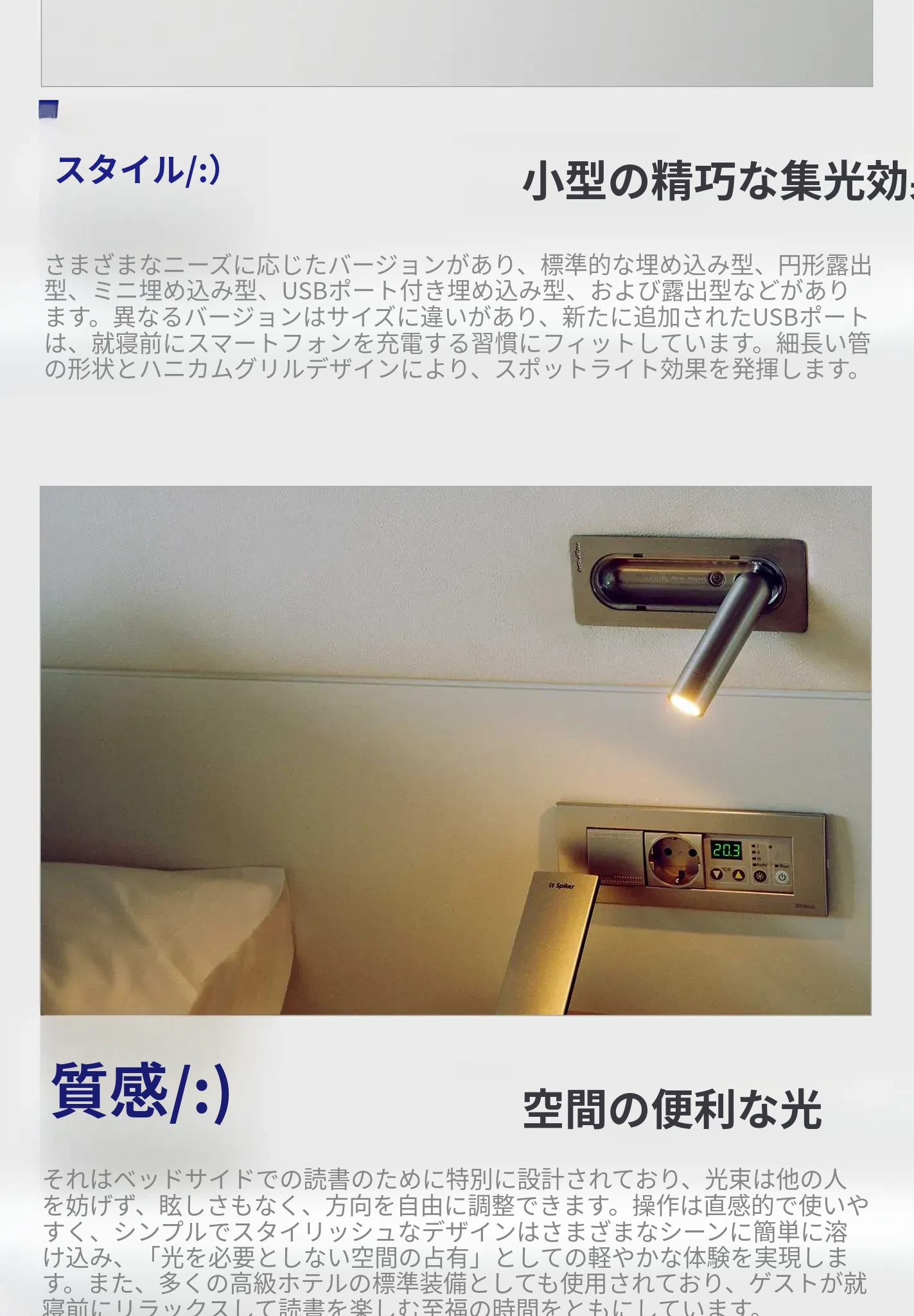 スペインのモダンデザイン「Marset Ledtube」デザイナーベッドサイドライト - 高級感あふれるシンプルで調整可能な埋め込み式ウォールランプで、あなたの寝室をスタイリッシュに演出します。