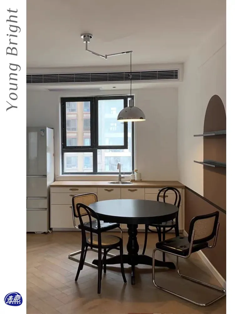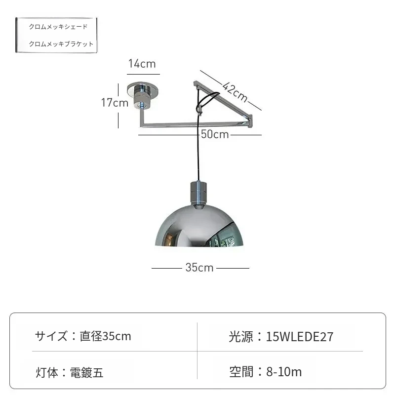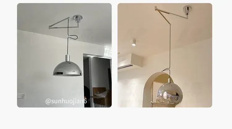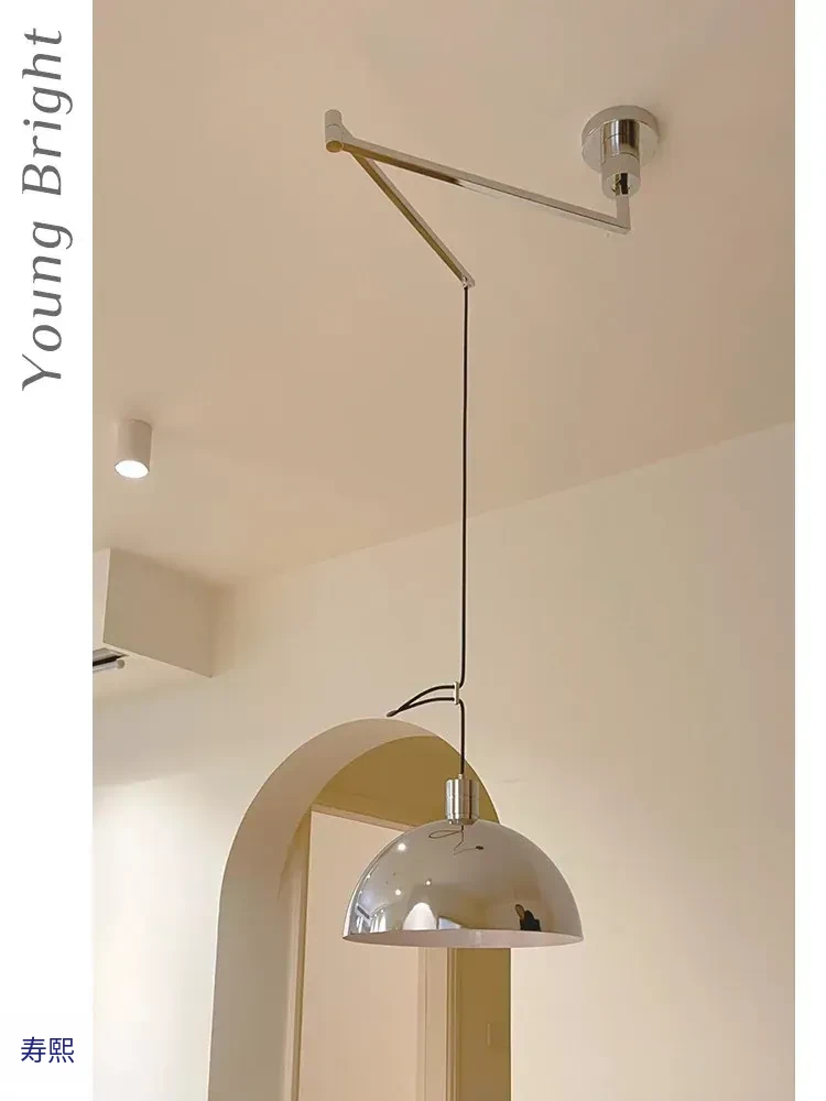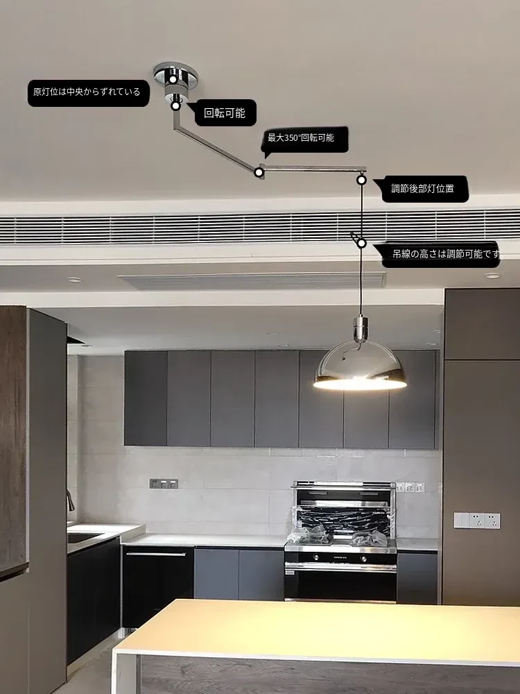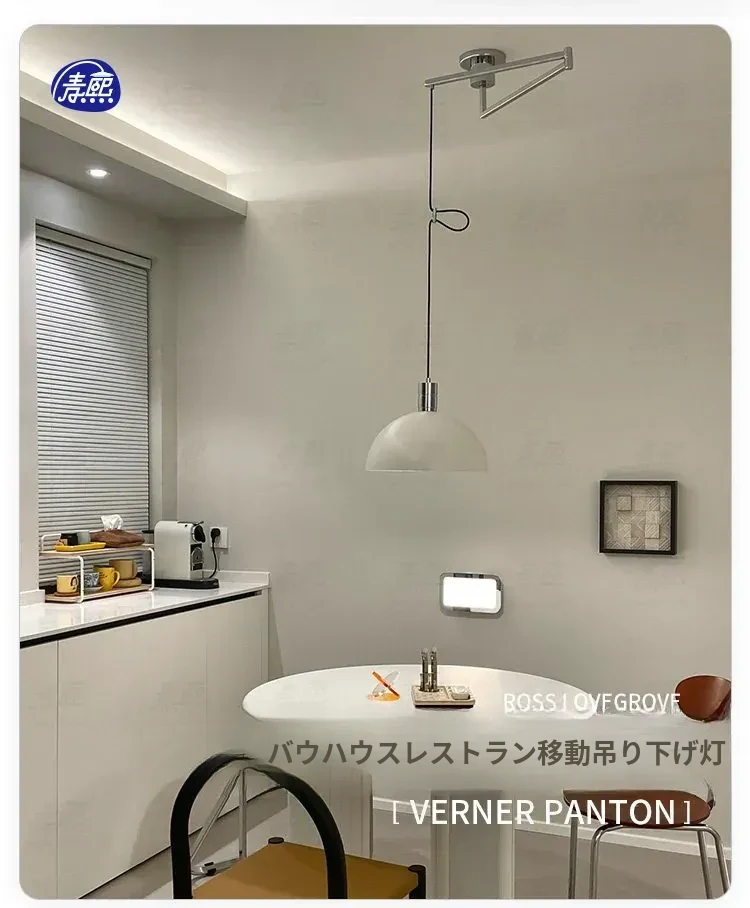 北欧デザインのバウハウス風レトロレストラン用ペンダントライト - 中古バー台やアイランドテーブルに最適!移動可能なシルバー吊り線ライトで、おしゃれな空間を演出。