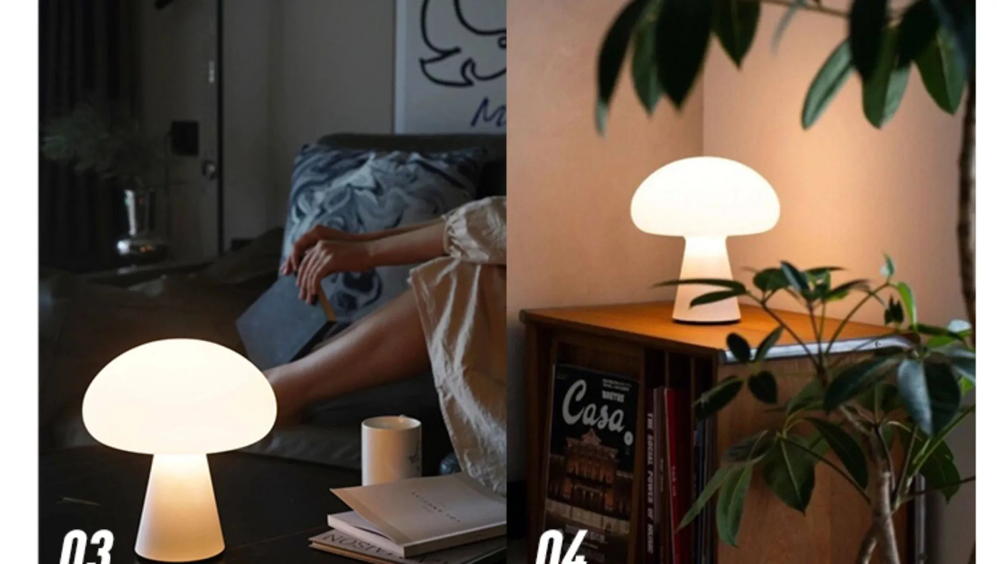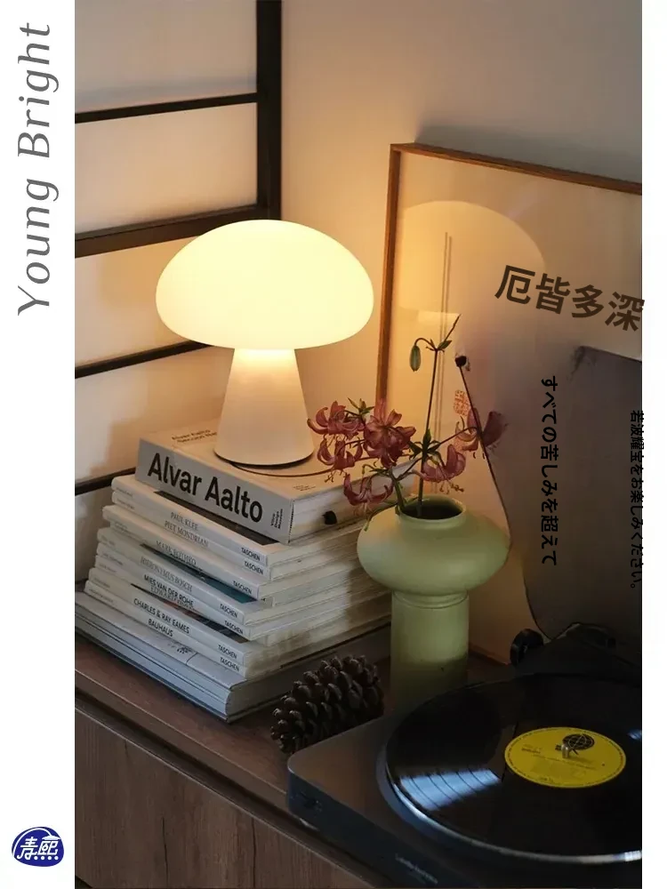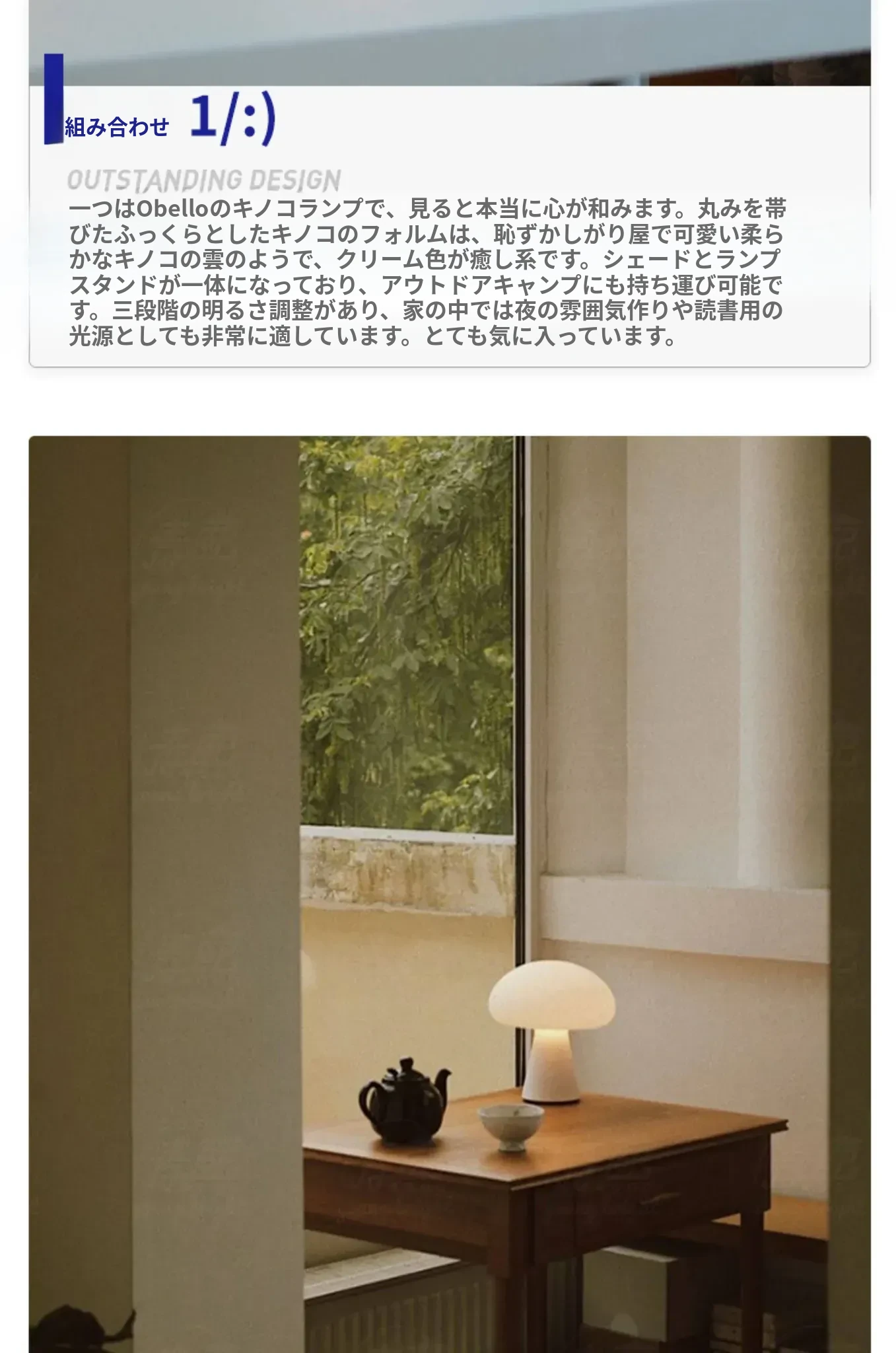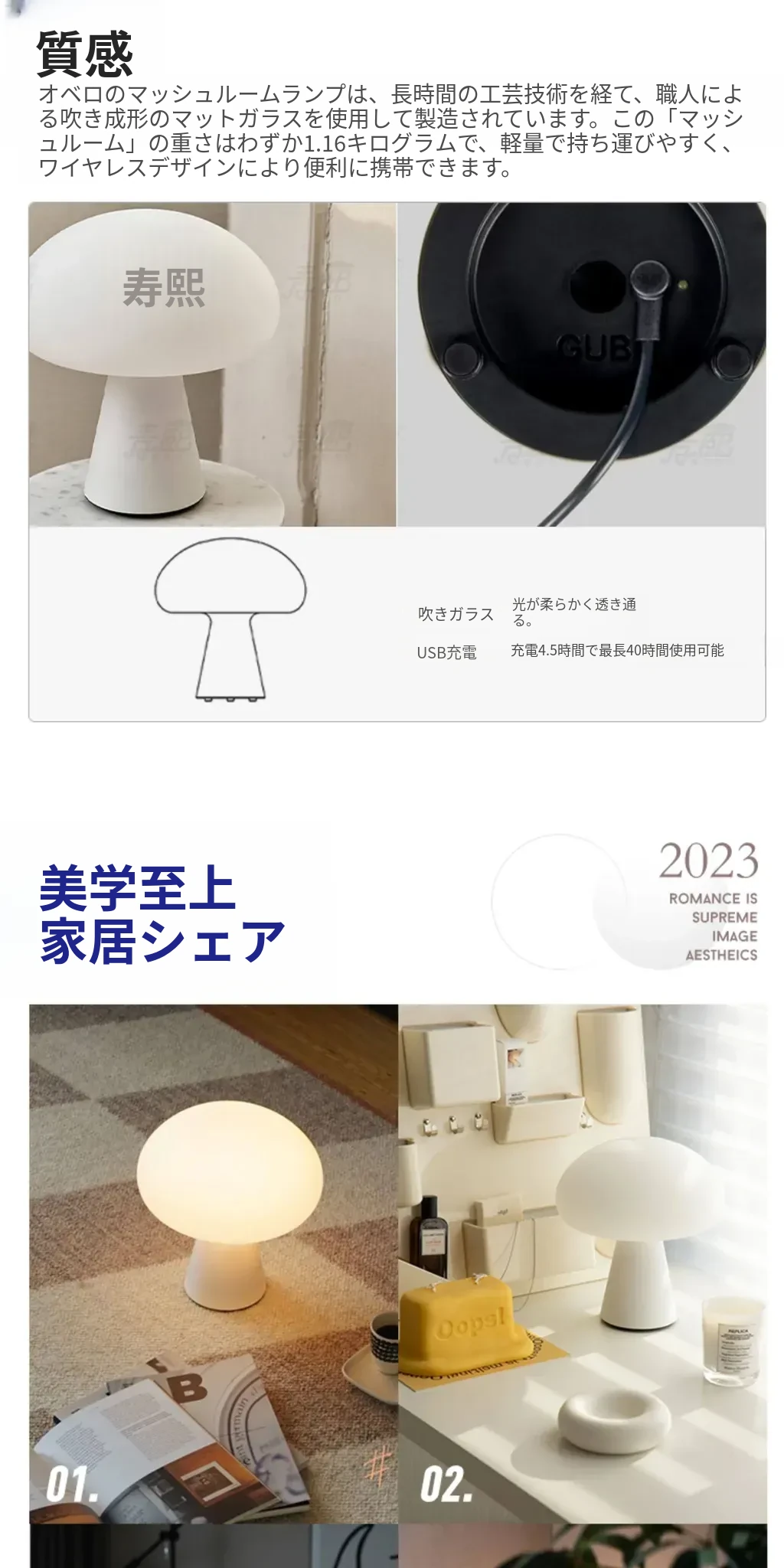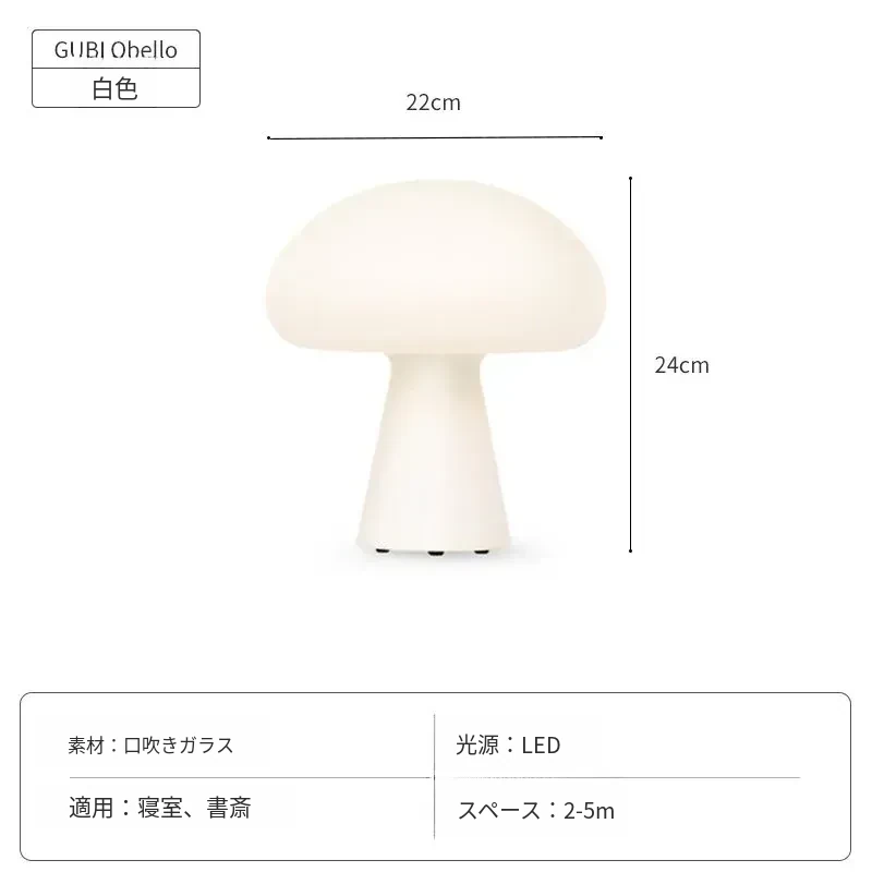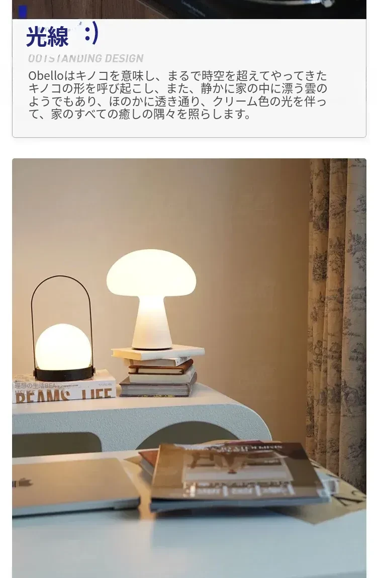 北欧デンマークObelloガラス充電式調光装飾きのこランプ - 書斎や寝室にぴったりのスタイリッシュなベッドサイドライト!