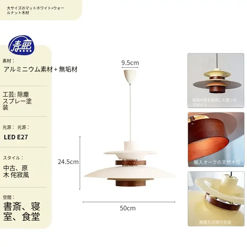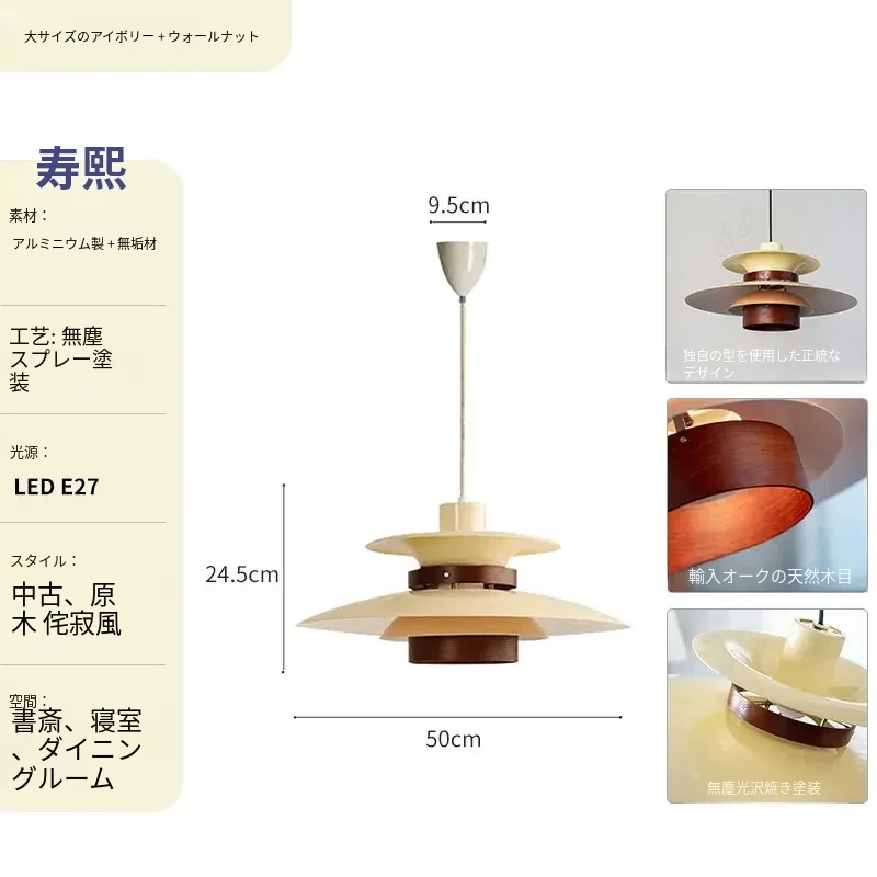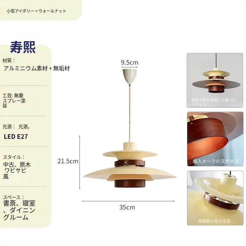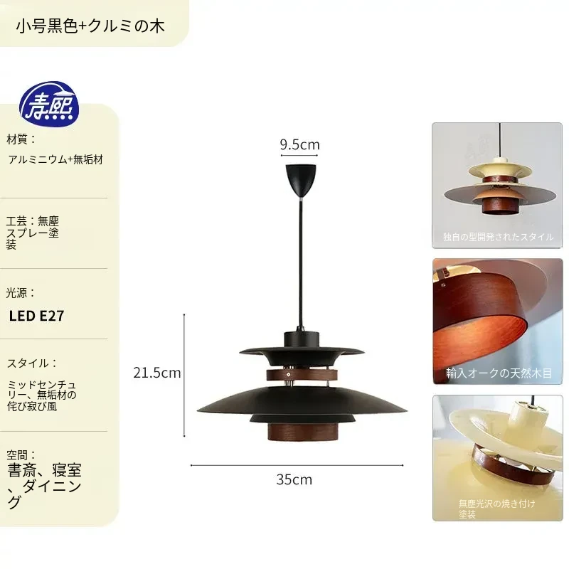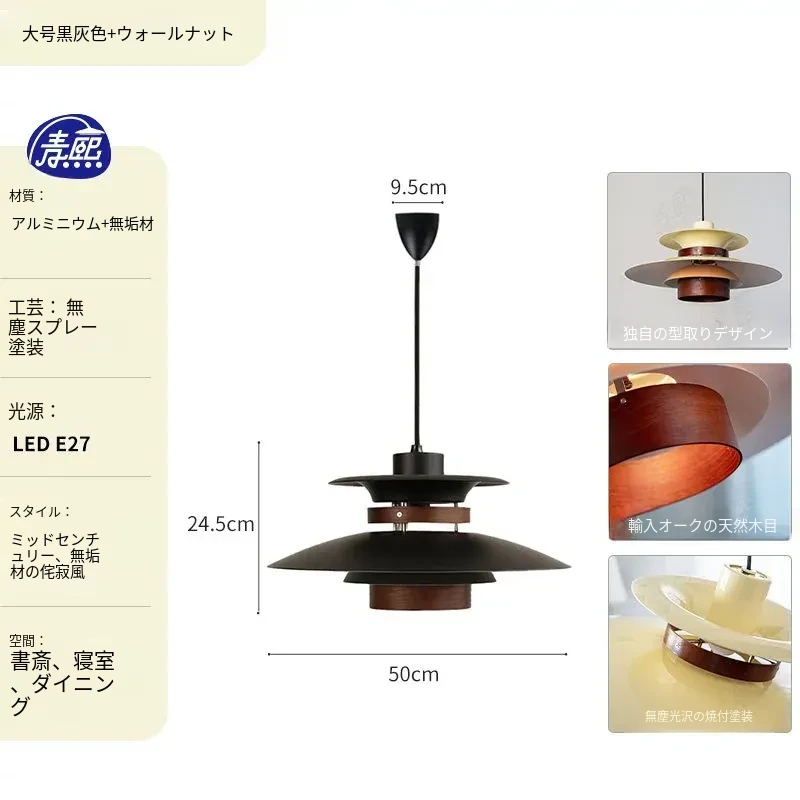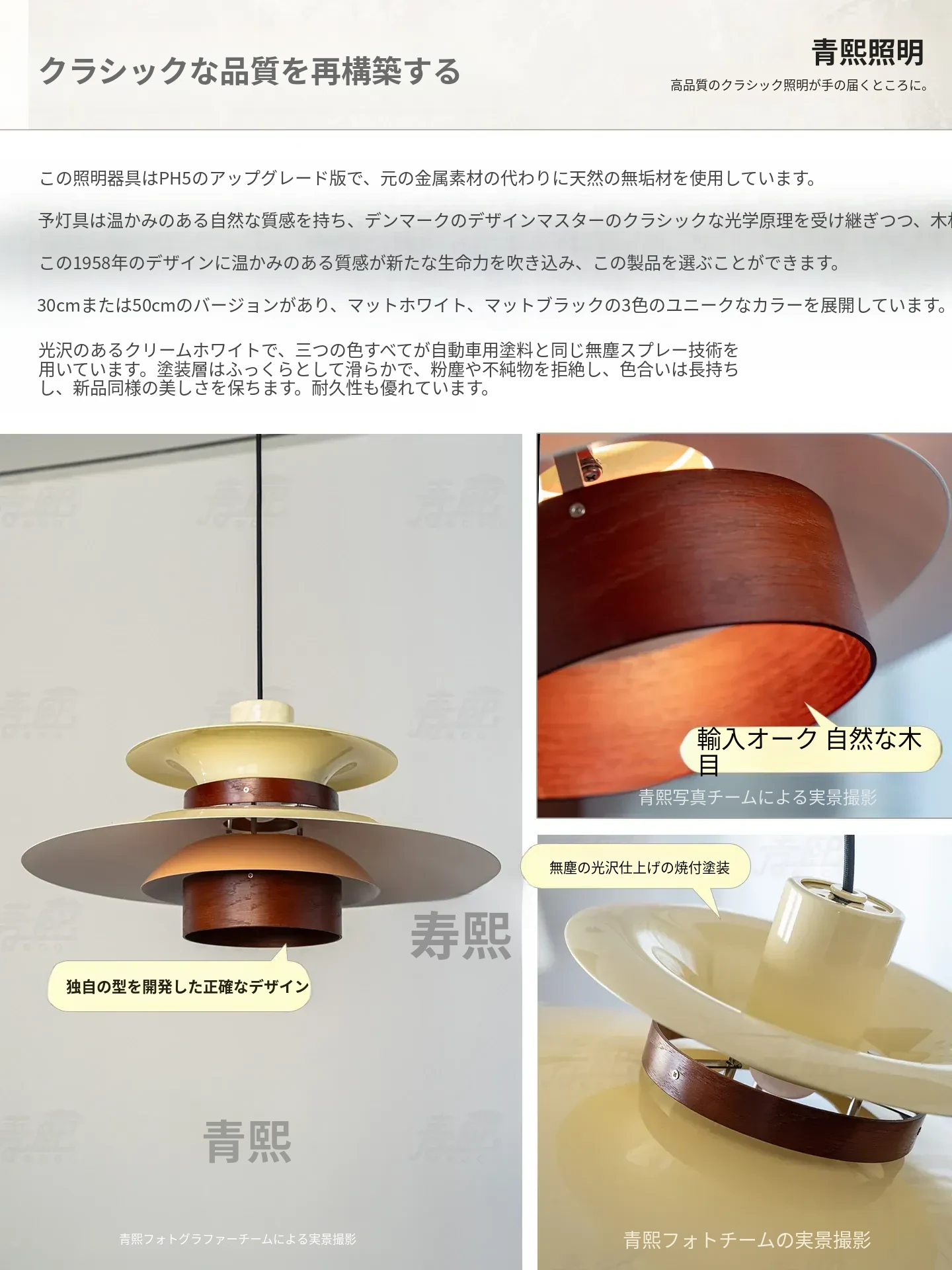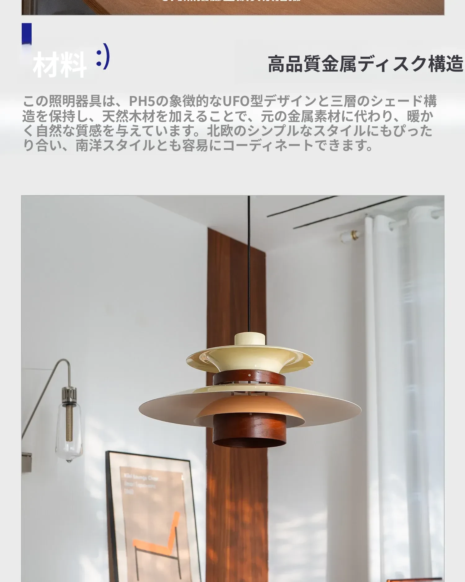 北欧デザインのダイニング用ペンダントライト「Mercero」胡桃のウッド仕上げで、クリエイティブなPH5スタイルのアイランドバー用シングルライト。おしゃれな空間作りに最適!