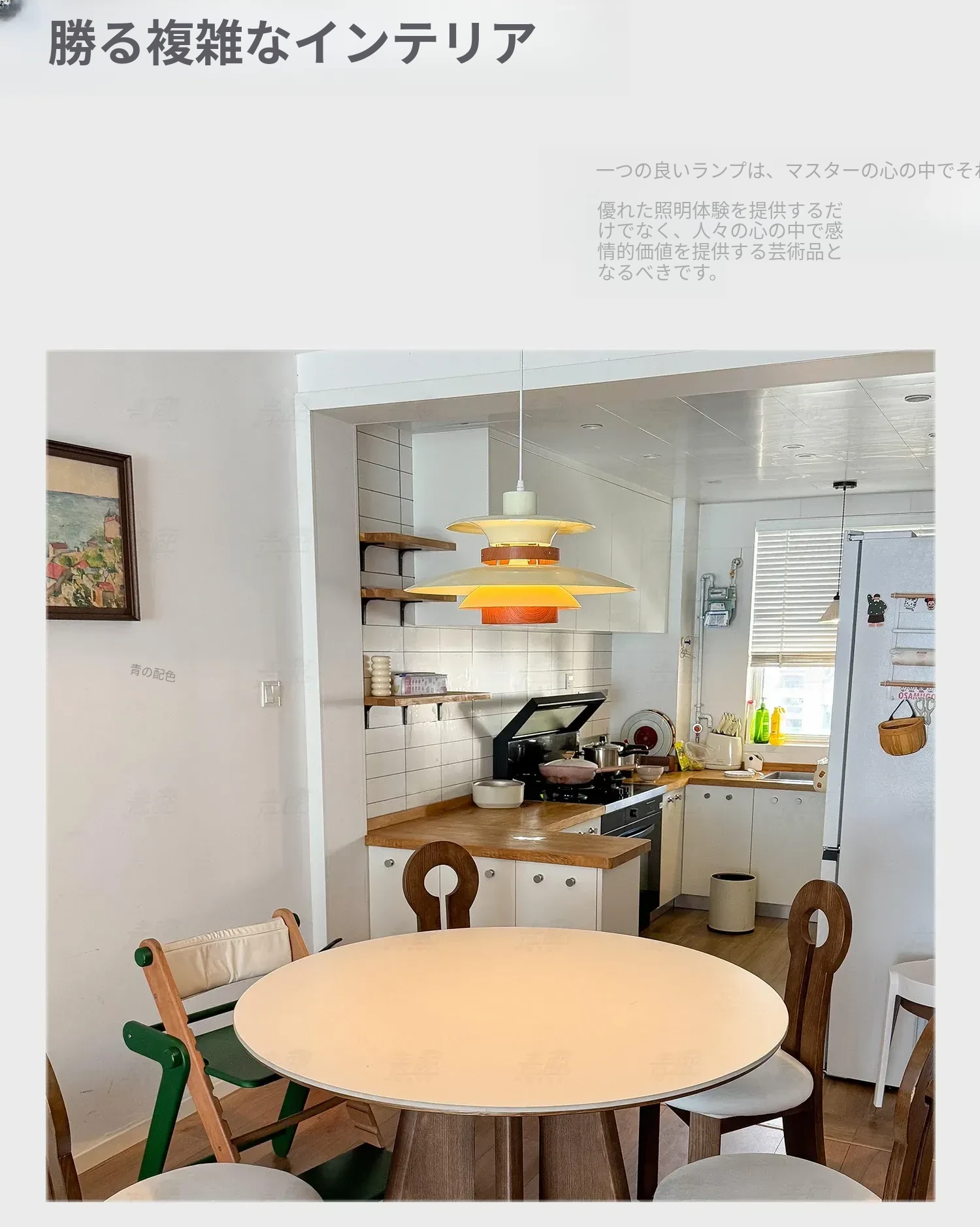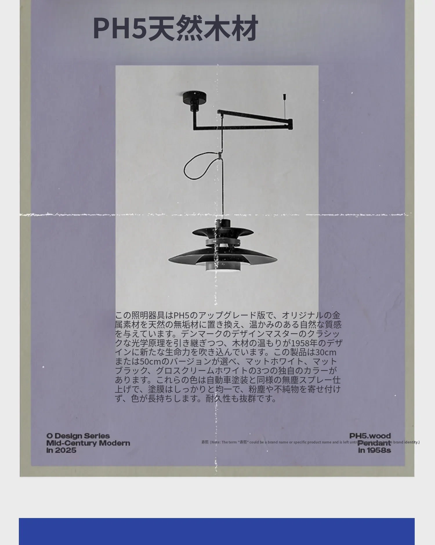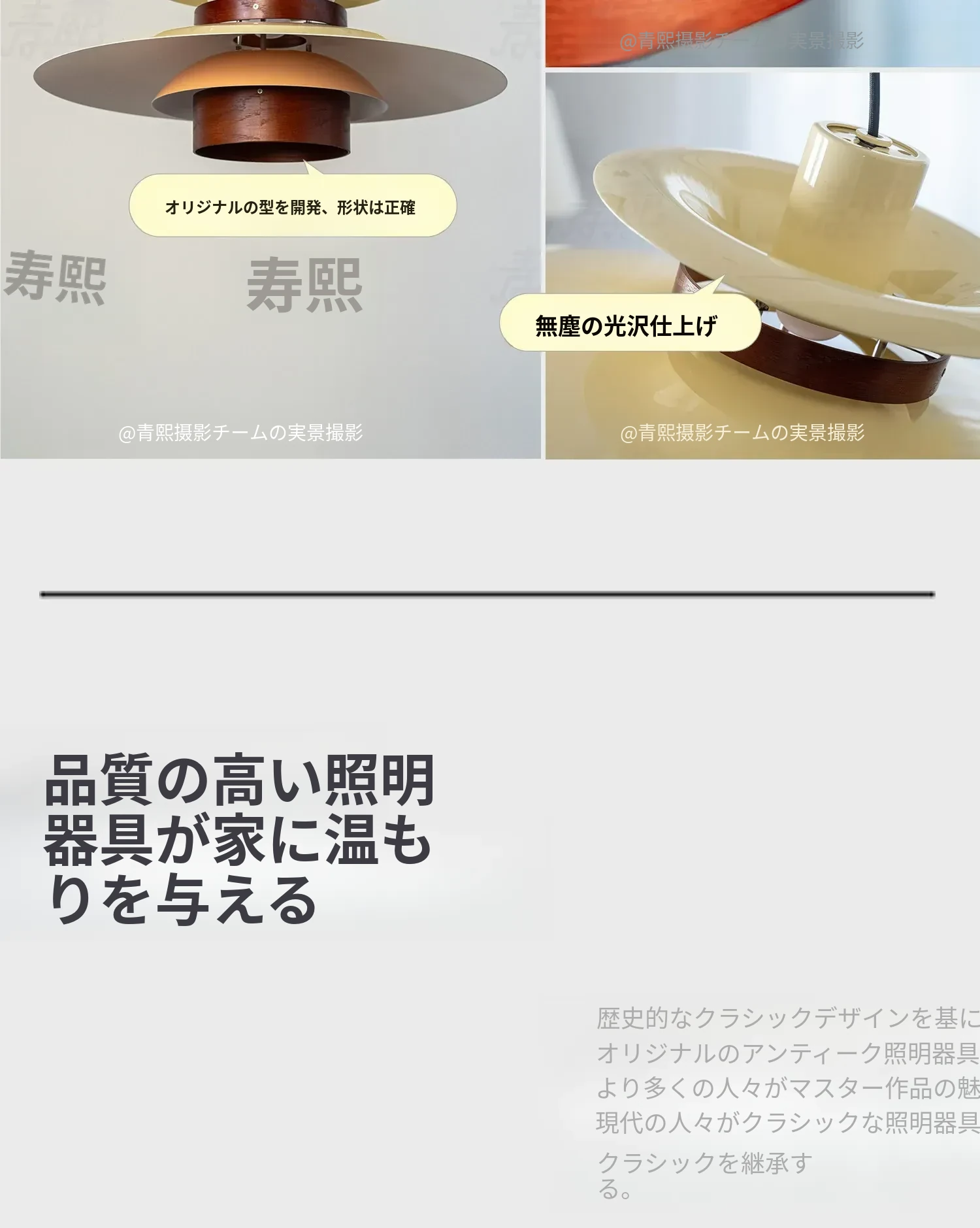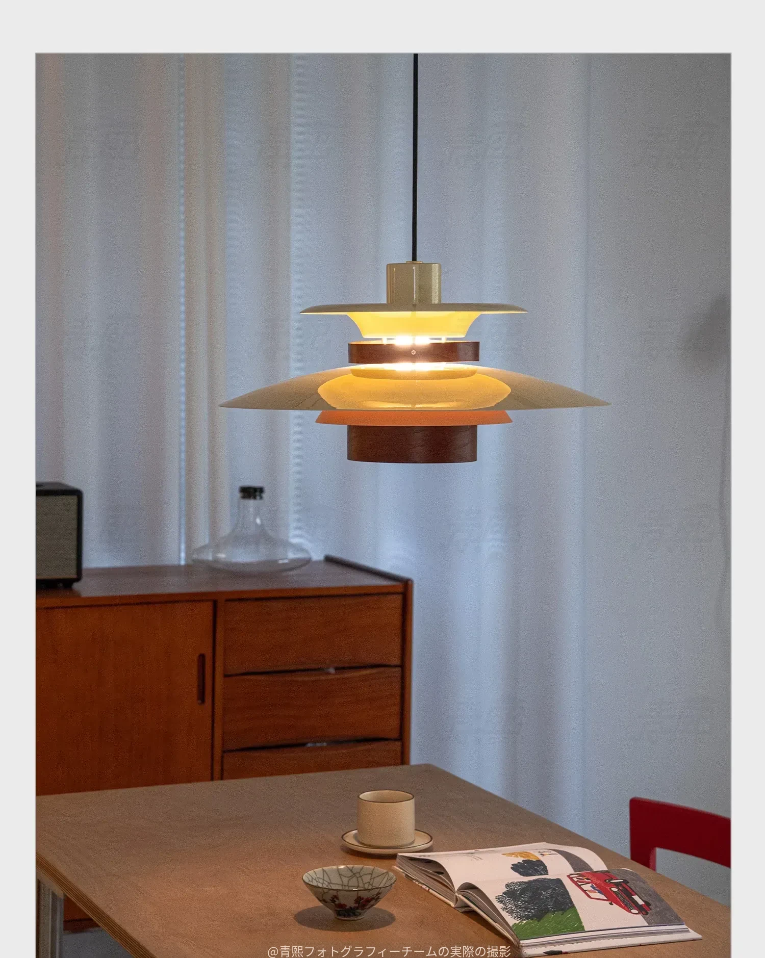 北欧デザインのダイニング用ペンダントライト「Mercero」胡桃のウッド仕上げで、クリエイティブなPH5スタイルのアイランドバー用シングルライト。おしゃれな空間作りに最適!