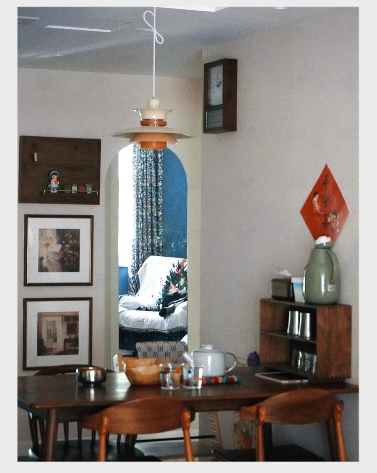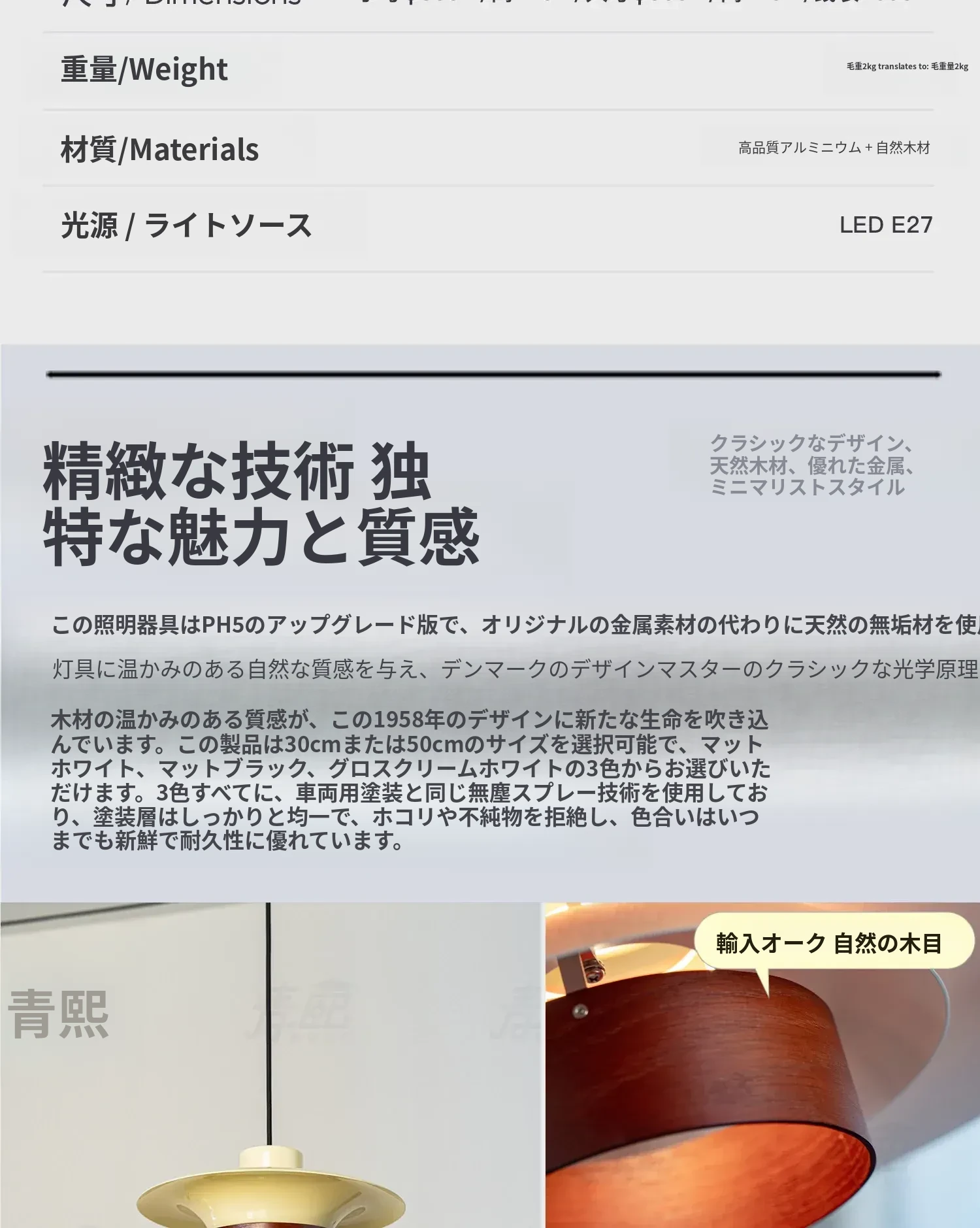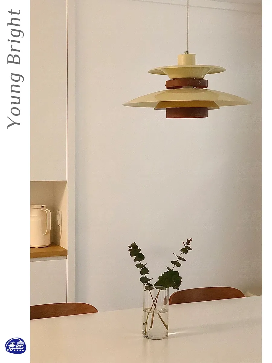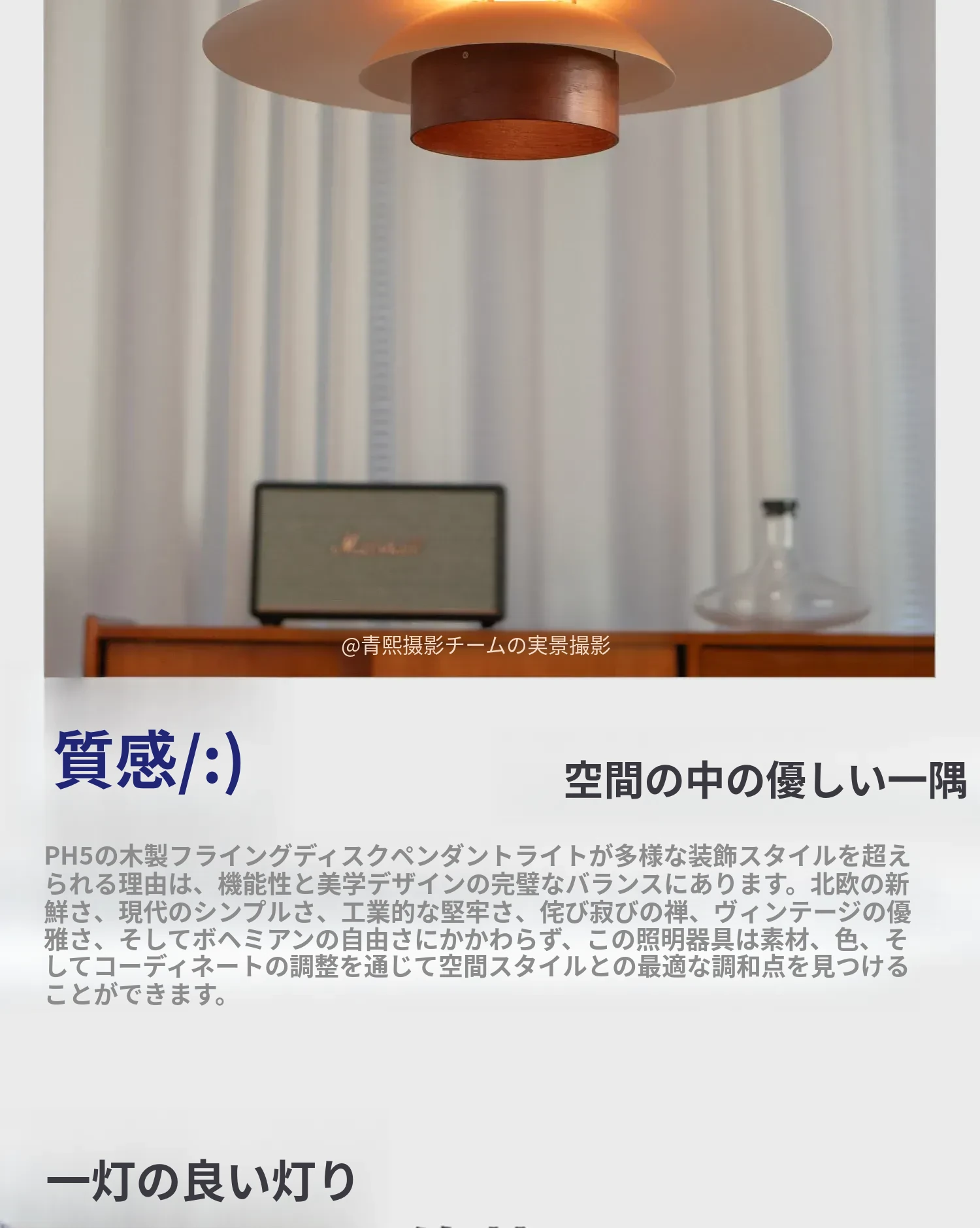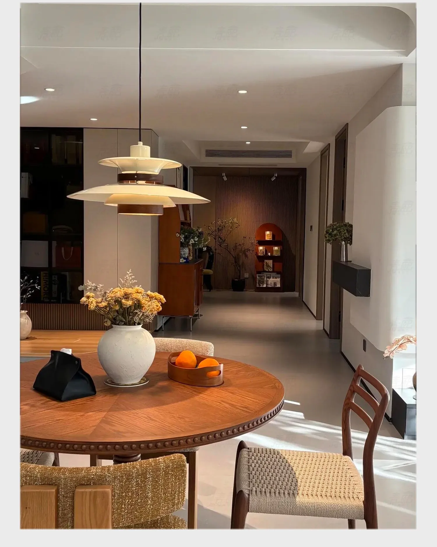 北欧デザインのダイニング用ペンダントライト「Mercero」胡桃のウッド仕上げで、クリエイティブなPH5スタイルのアイランドバー用シングルライト。おしゃれな空間作りに最適!